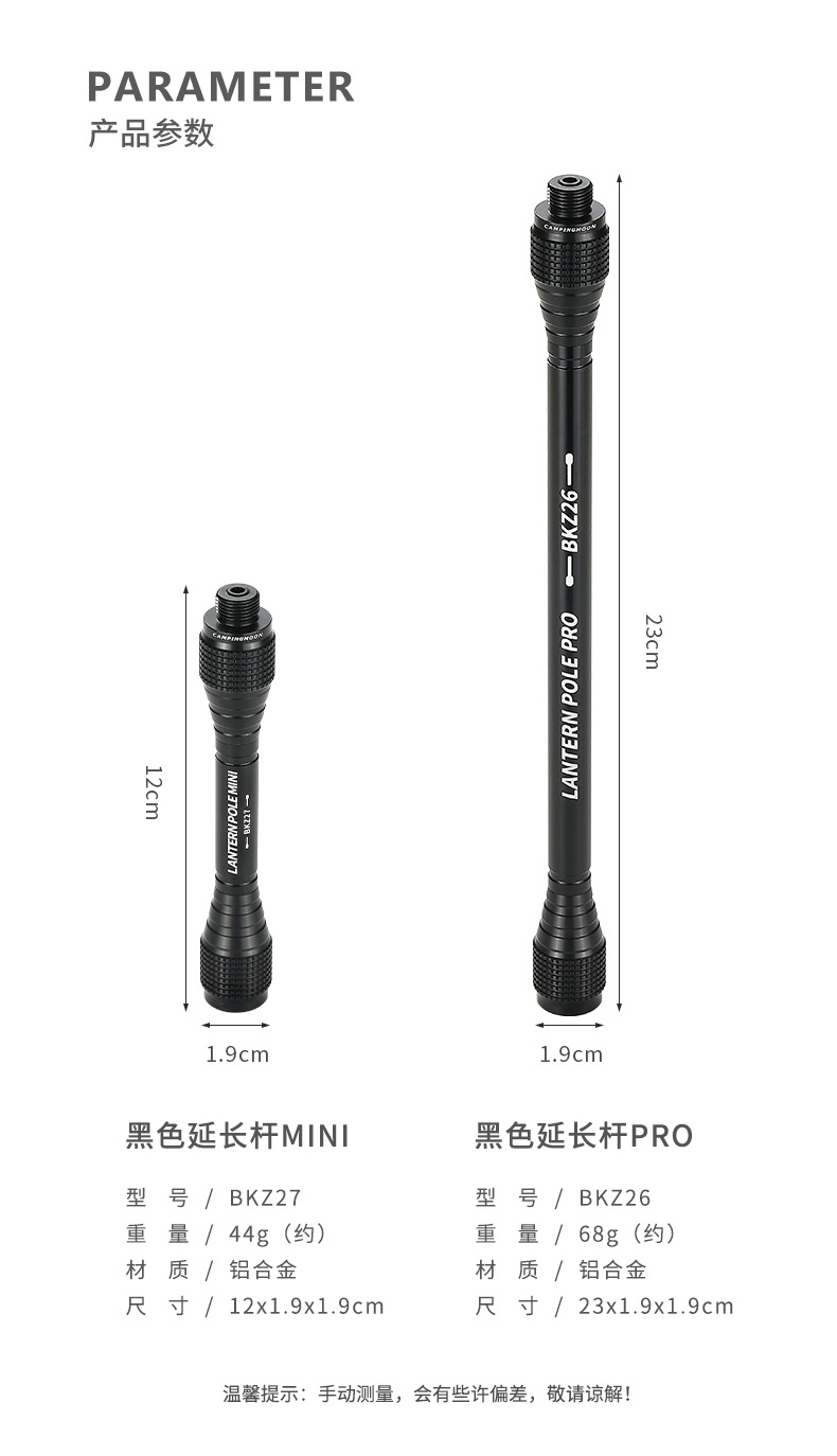 Coleman BKZ26 검게 긴 알루미늄 합금 가스 램프 높이로드 야외 캠핑 액세서리 분위기 램프 연장로드