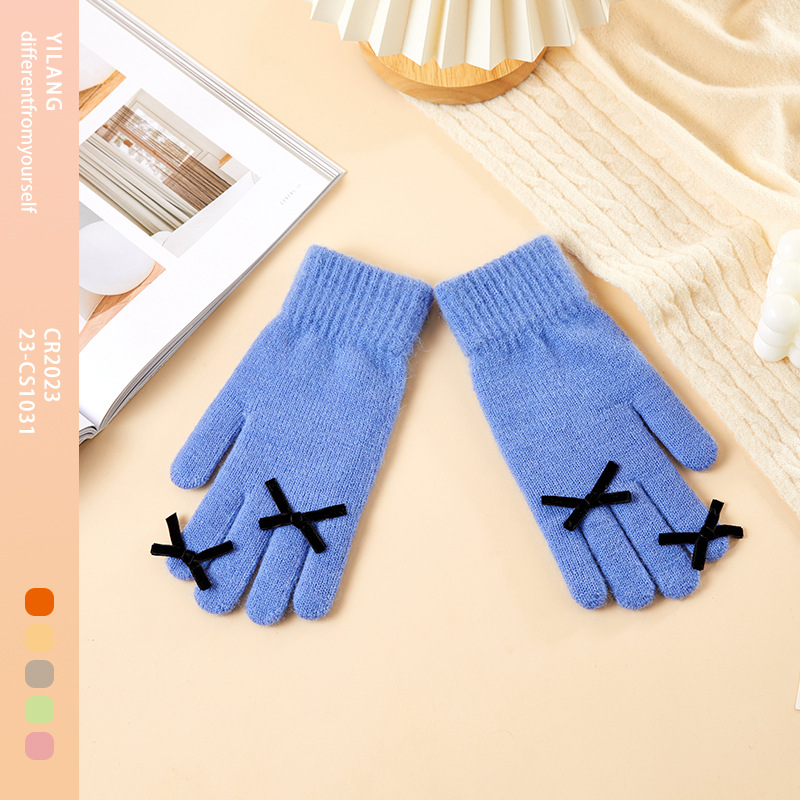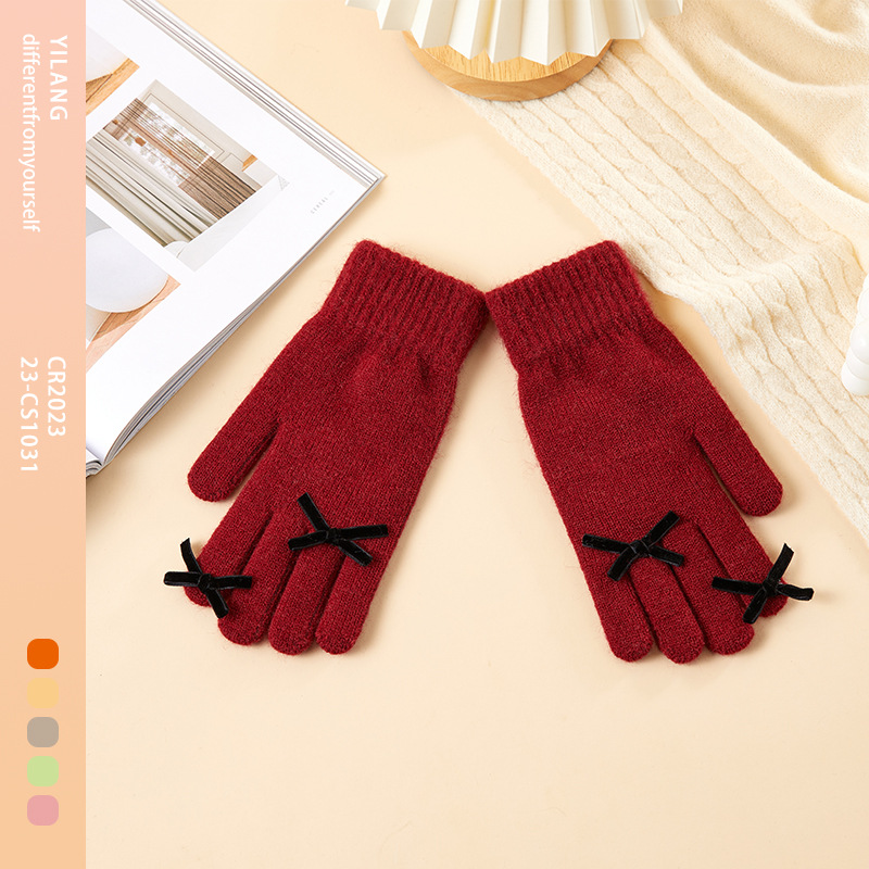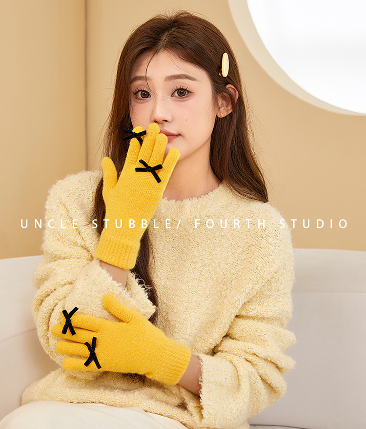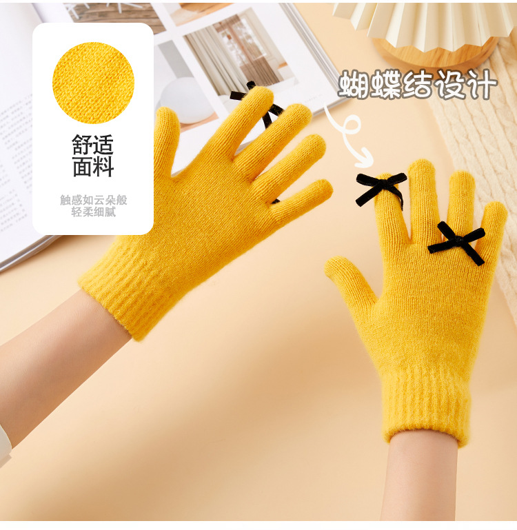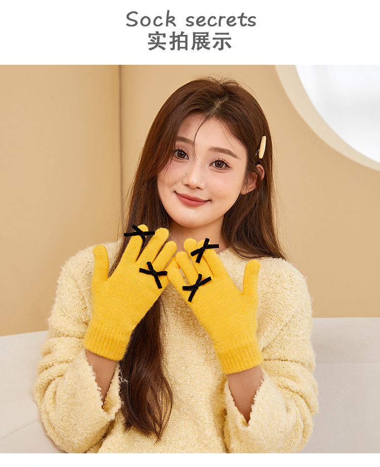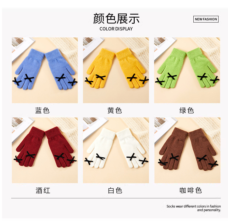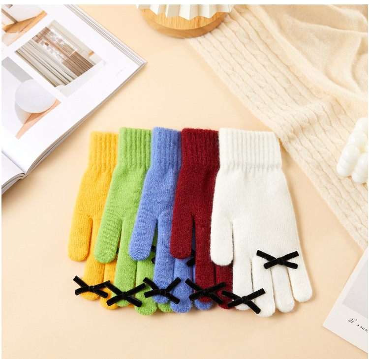 2025 겨울 신제품 다섯 손가락 단색 따뜻한 니트 장갑 여성 활 학생 방한 양모 장갑스토어 가기