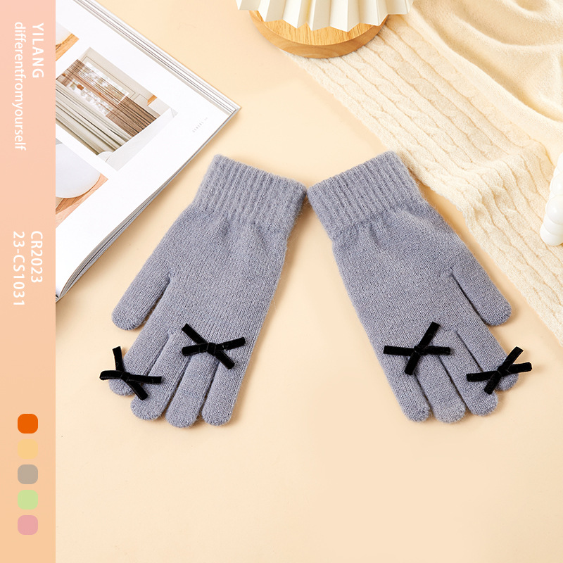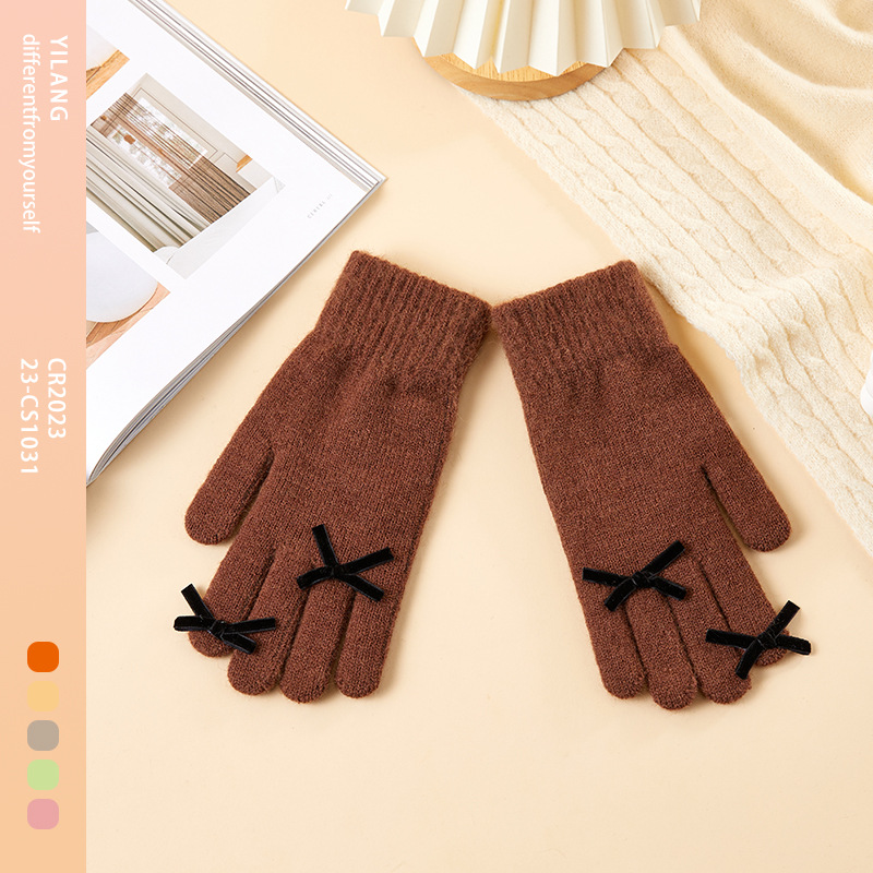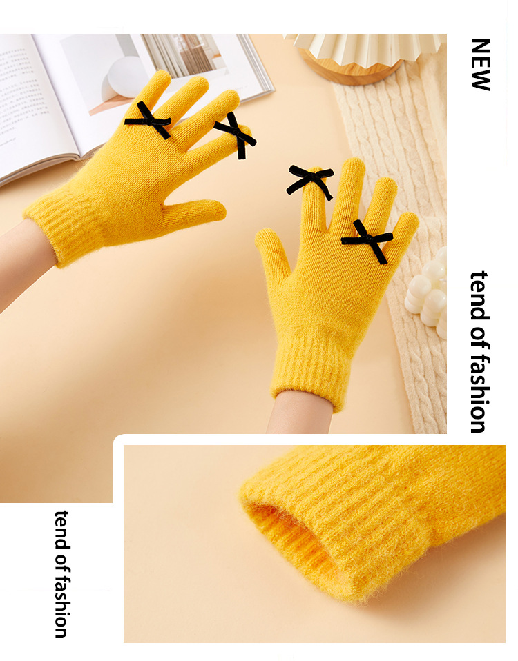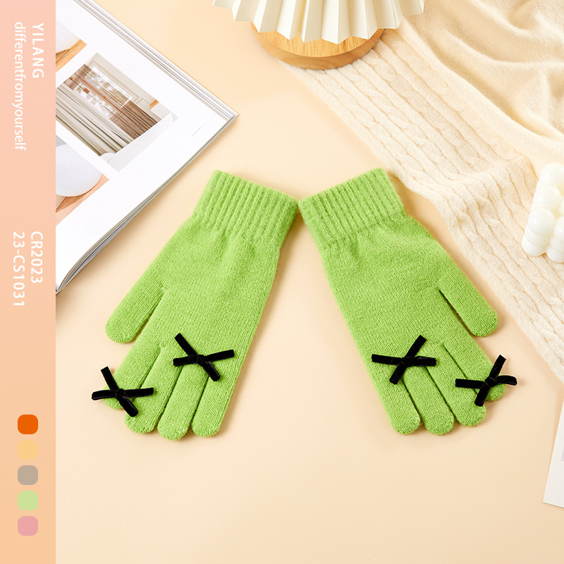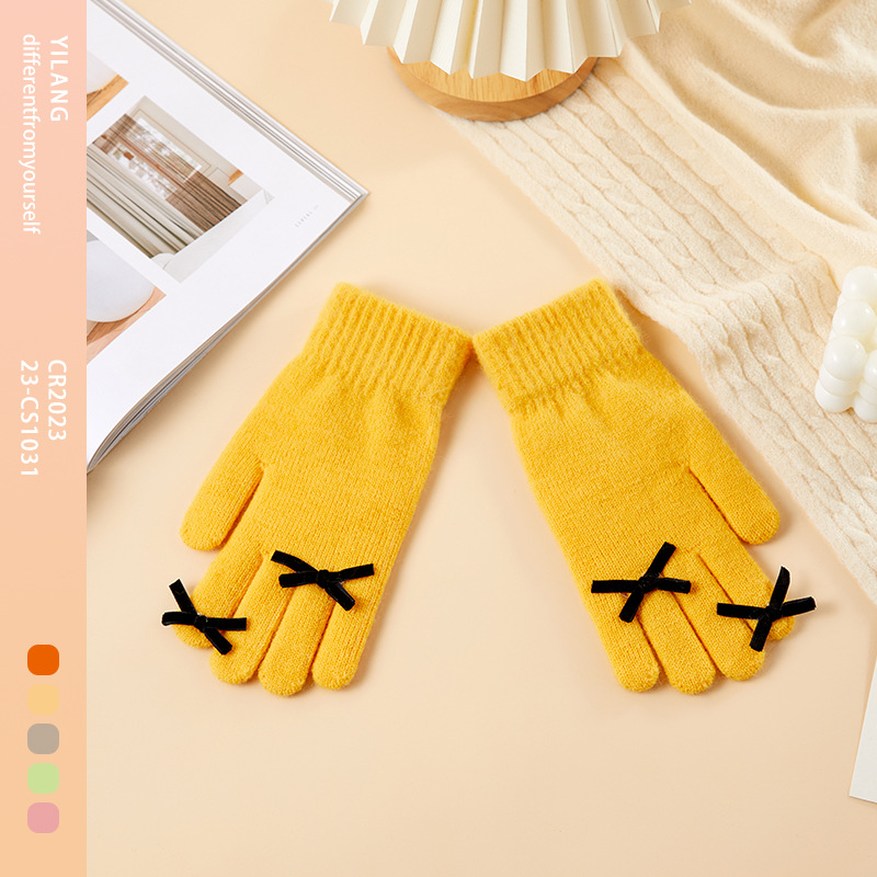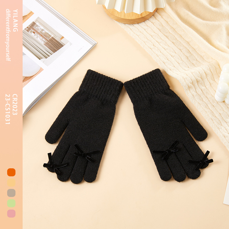 2025 겨울 신제품 다섯 손가락 단색 따뜻한 니트 장갑 여성 활 학생 방한 양모 장갑스토어 가기