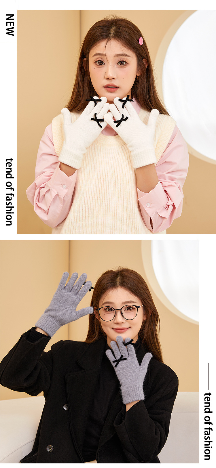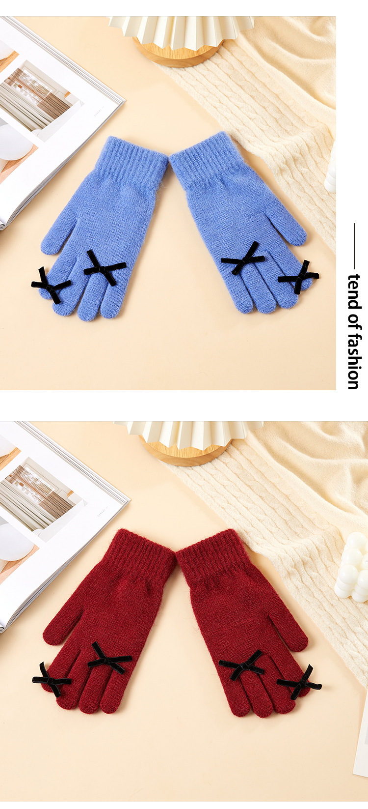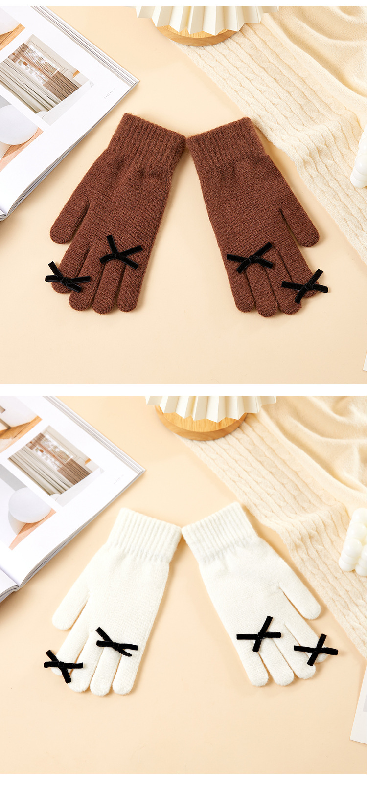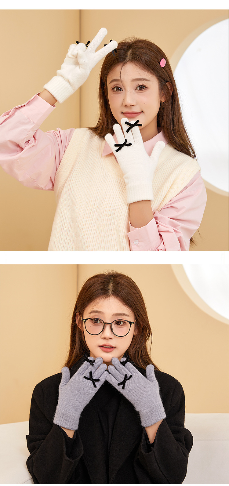 2025 겨울 신제품 다섯 손가락 단색 따뜻한 니트 장갑 여성 활 학생 방한 양모 장갑스토어 가기