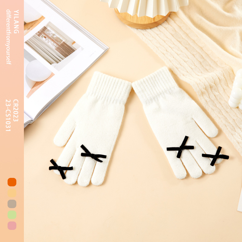 2025 겨울 신제품 다섯 손가락 단색 따뜻한 니트 장갑 여성 활 학생 방한 양모 장갑