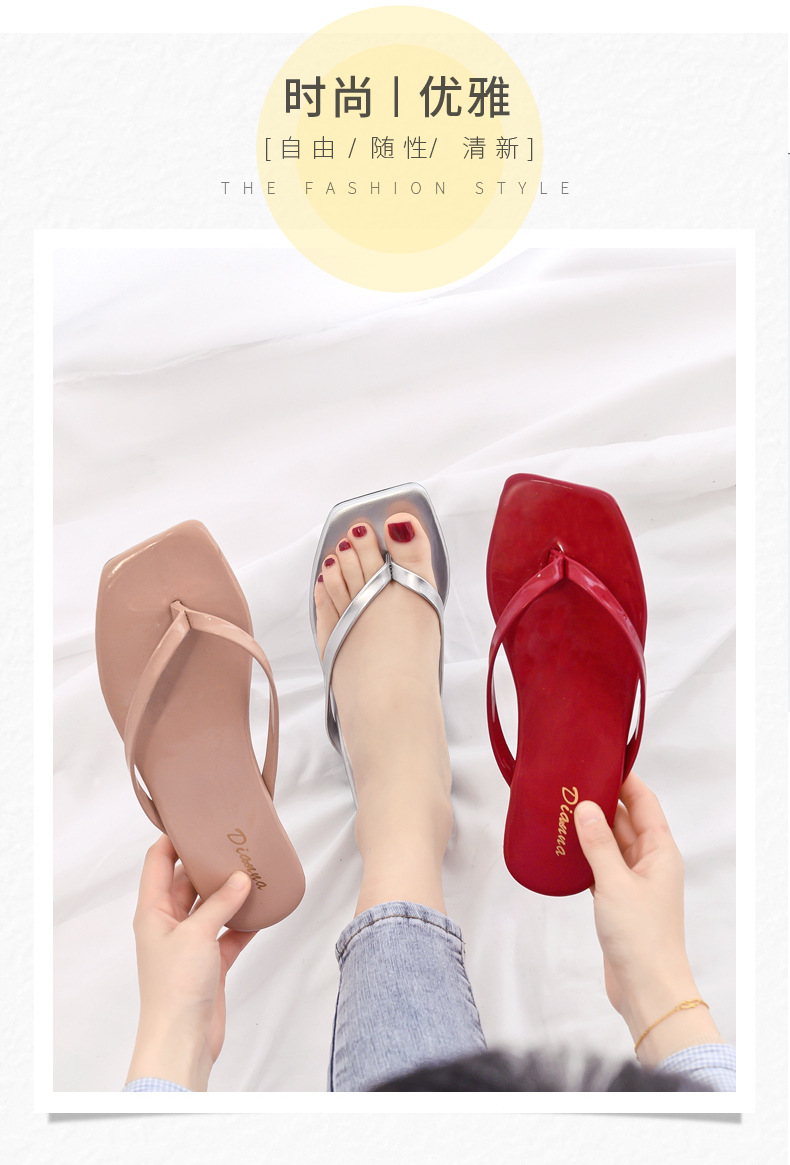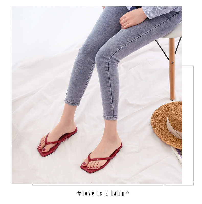 슬리퍼 여성 신발 여름 샌들 유행 아웃웨어 한국식 스퀘어 토 플랫 모든 경기 미끄럼 방지 인터넷 연예인 홈 비치 트렌디스토어 가기