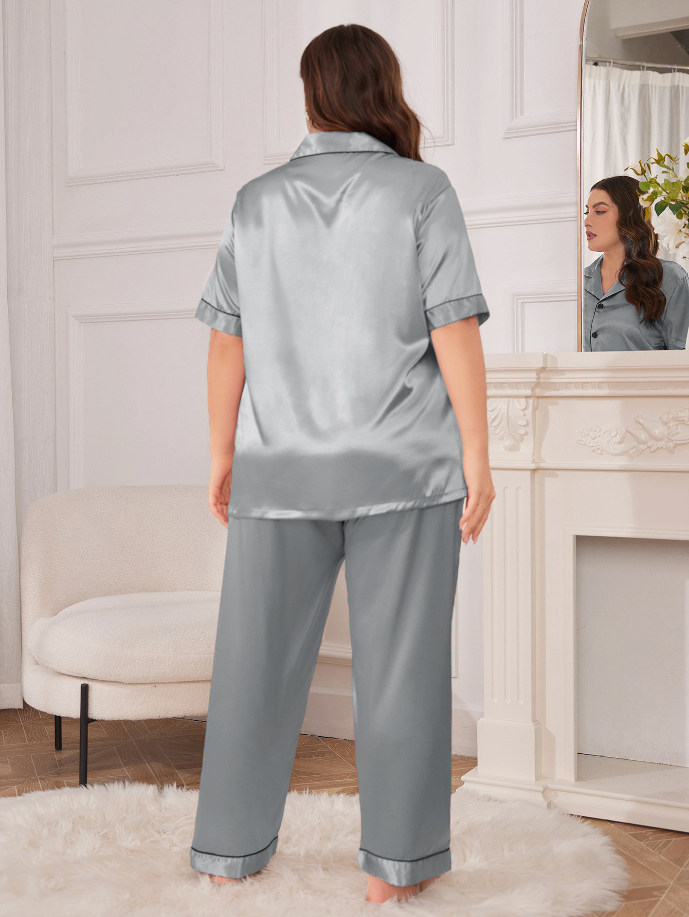 여름 실크 플러스 사이즈 잠옷 패션 캐주얼 셔츠 잠옷 세트 섹시한 편안한 숙녀 가정 옷 도매스토어 가기
