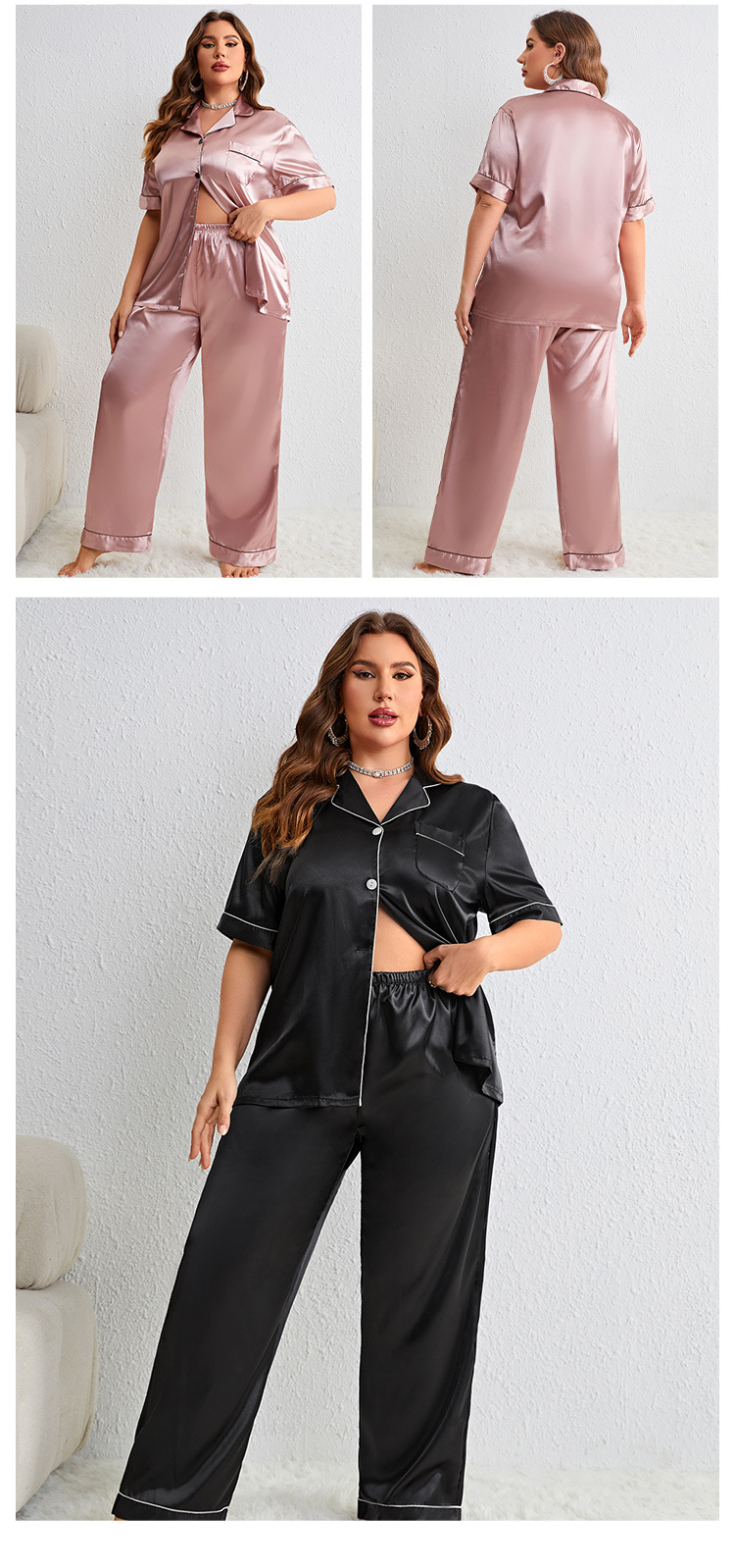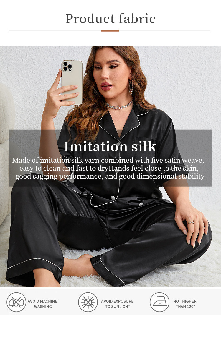 여름 실크 플러스 사이즈 잠옷 패션 캐주얼 셔츠 잠옷 세트 섹시한 편안한 숙녀 가정 옷 도매