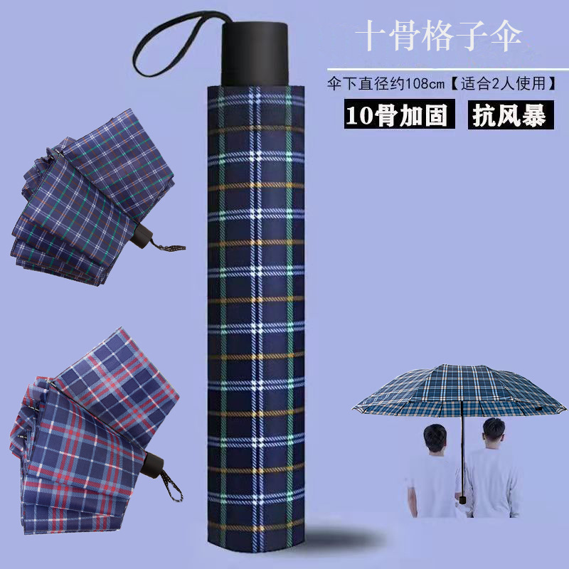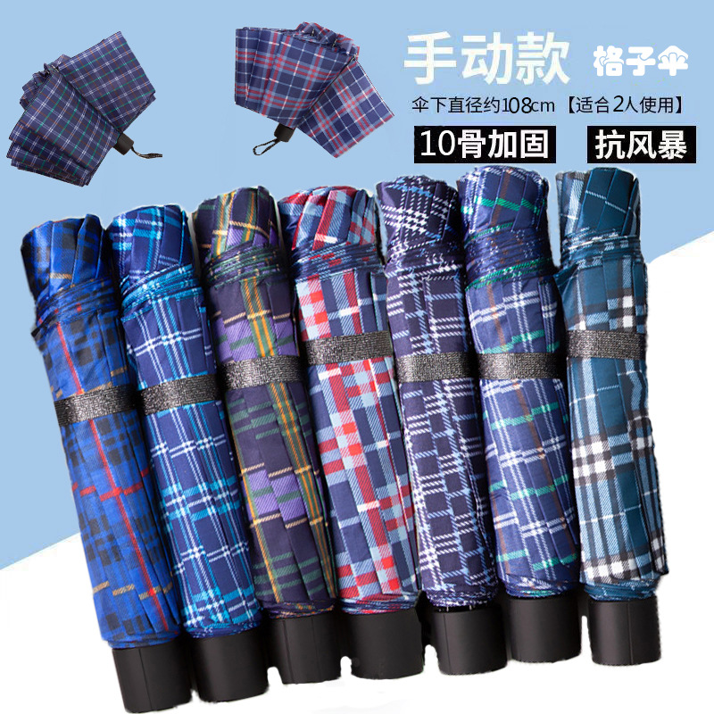 우산 특대 3 인 격자 우산 10 골 3 중 우산 강화 굵은 접이식 사업 우산 도매 광고 우산