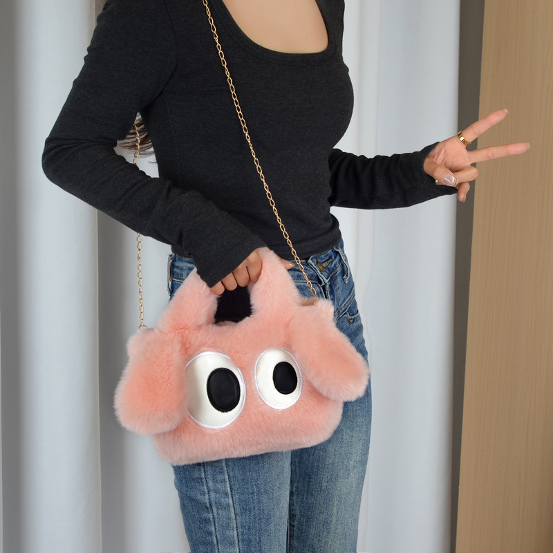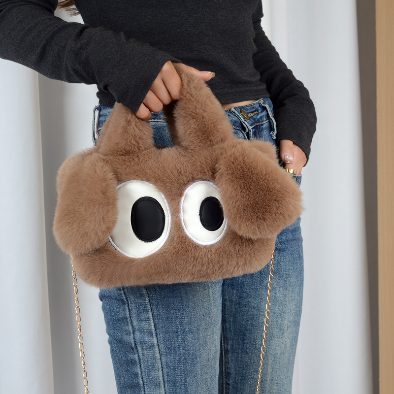 새로운 플러시 귀여운 크로스백 큰 눈 강아지 숄더백 만화 고급스러운 패션 체인백 가을 스타일스토어 가기
