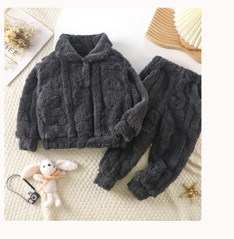 어린이 가정 의류 잠옷 세트 가을과 겨울 두꺼운면 벨벳 중형 및 대형 어린이 따뜻한 옷깃 단색 소년 소녀