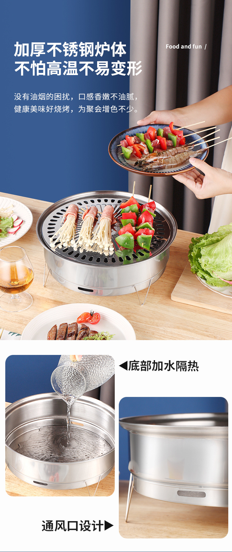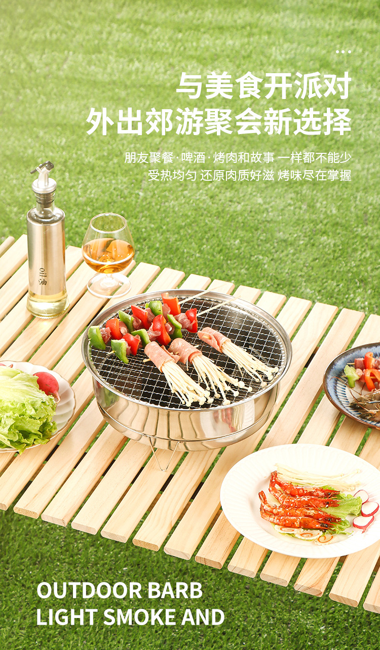 스테인레스 스틸 그릴 트레이 일회용 바베큐 오븐 휴대용 작은 캠핑 가정용 야외 숯 무연 테이크 아웃 바베큐 오븐