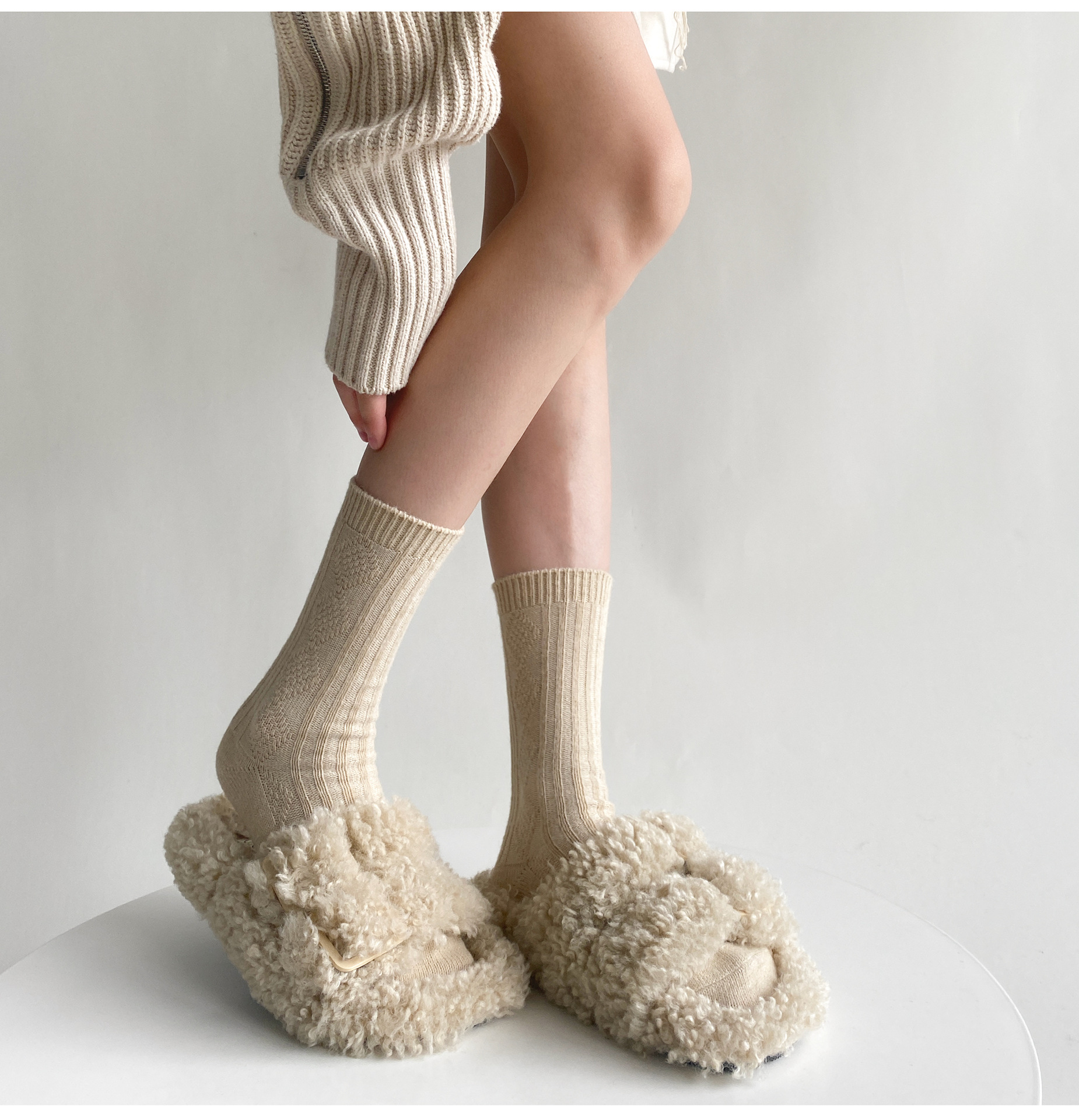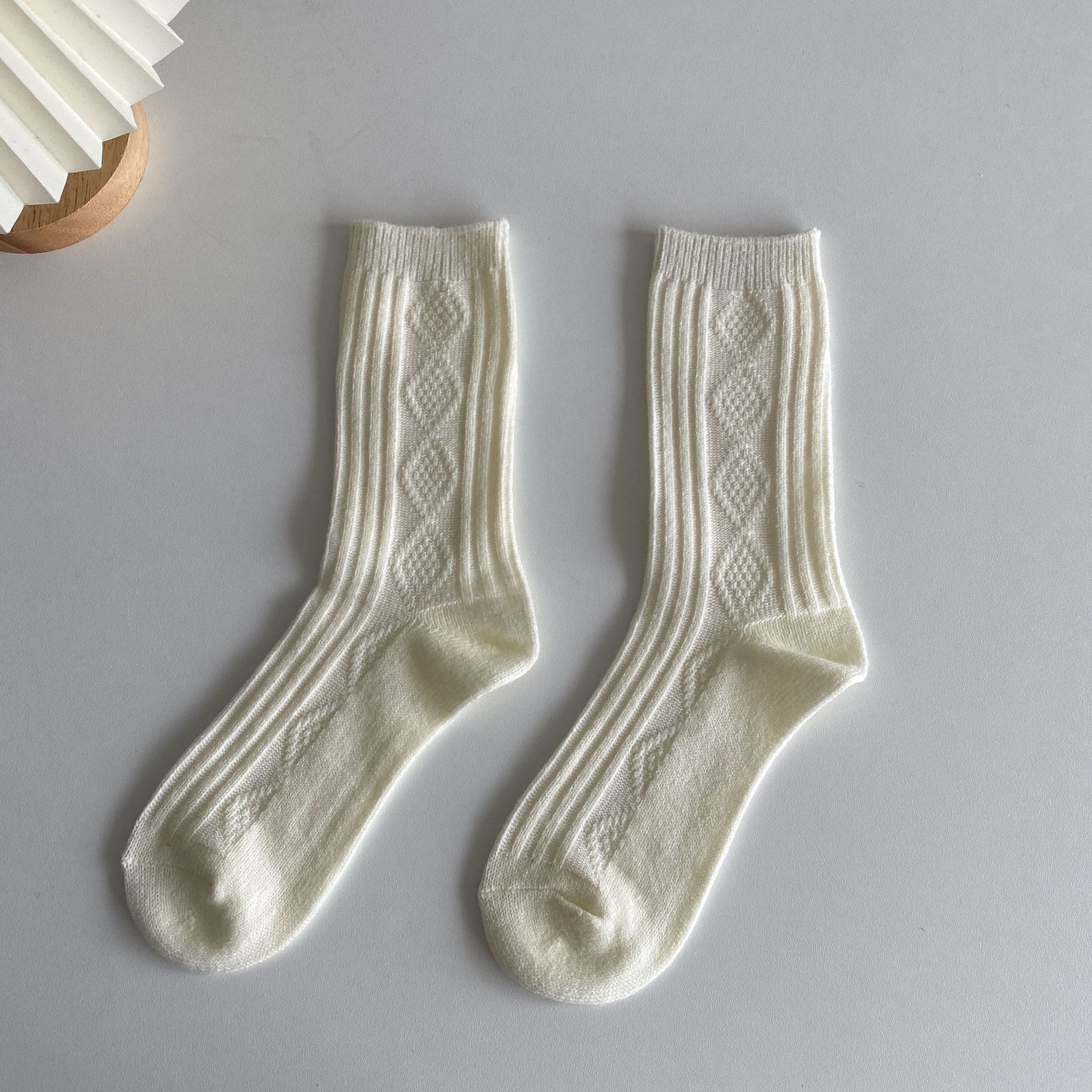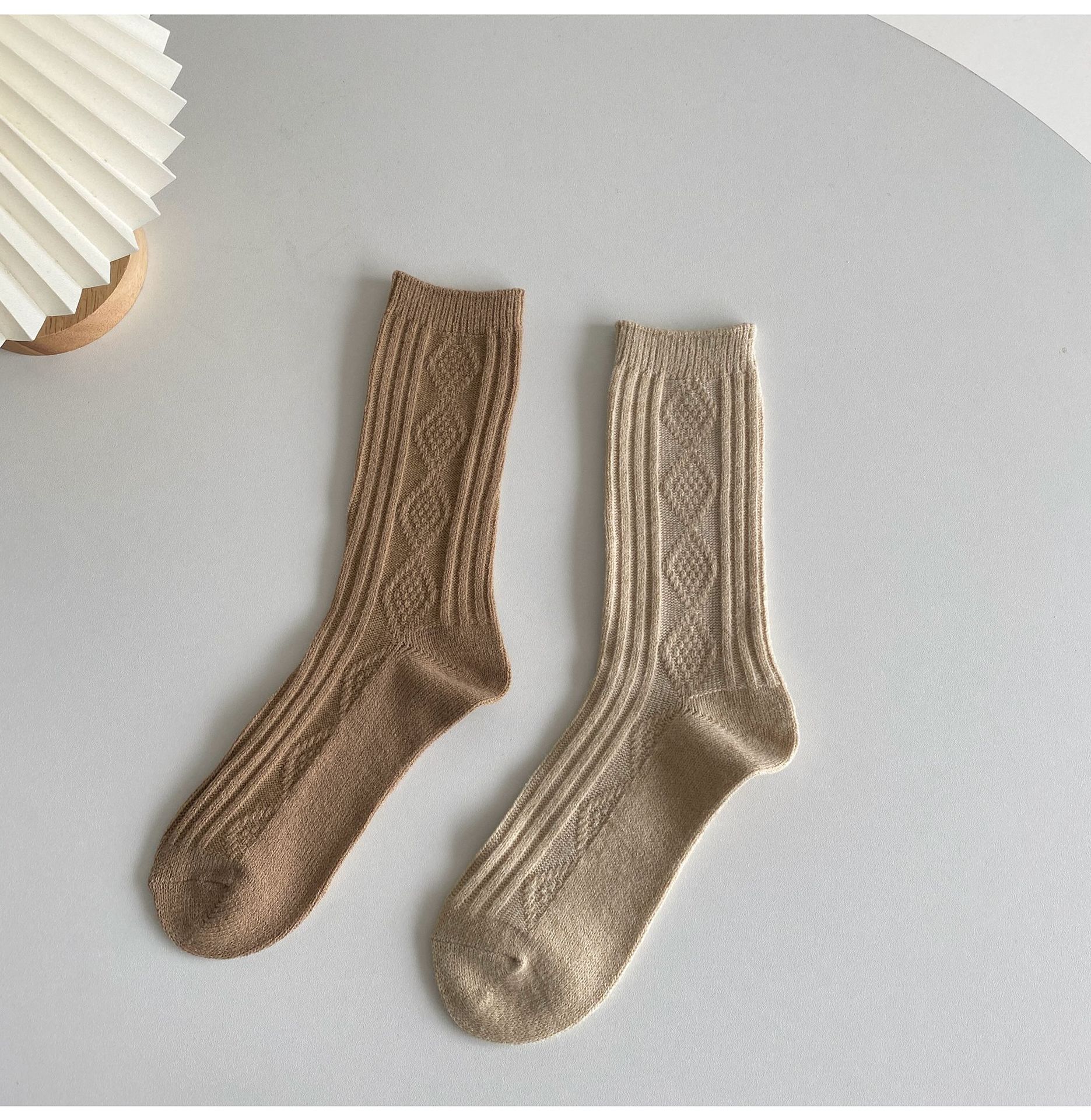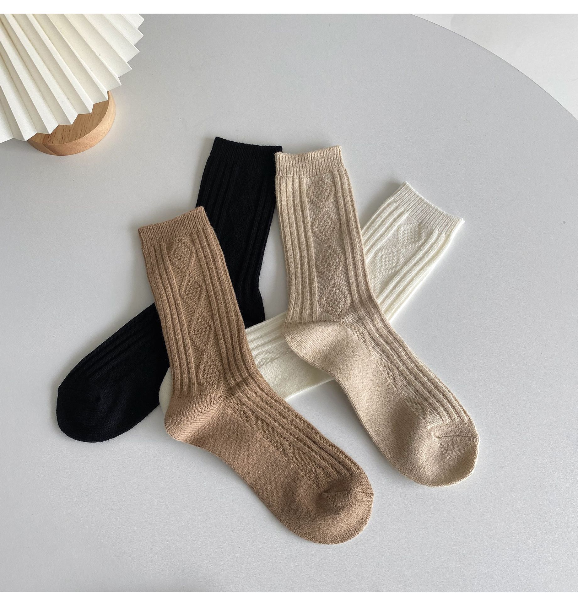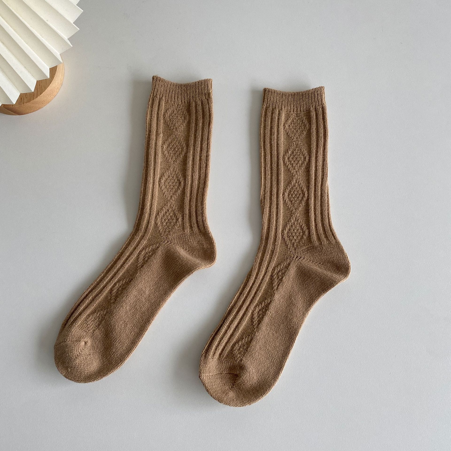 양모 양말 어린이 가을과 겨울 단색 튜브 양말 다이아몬드 트위스트 따뜻한 파일 양말 Maillard 색상 모든 매치 양말스토어 가기