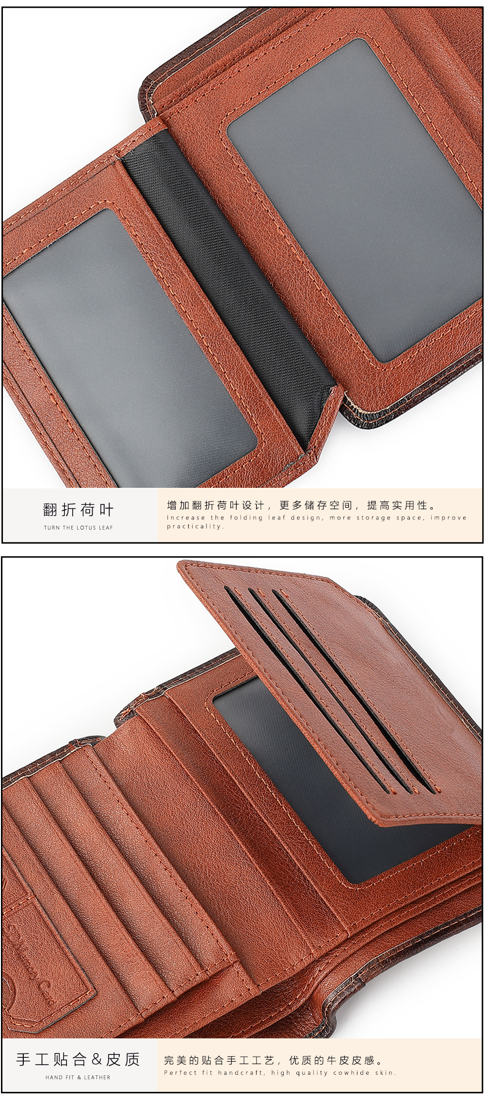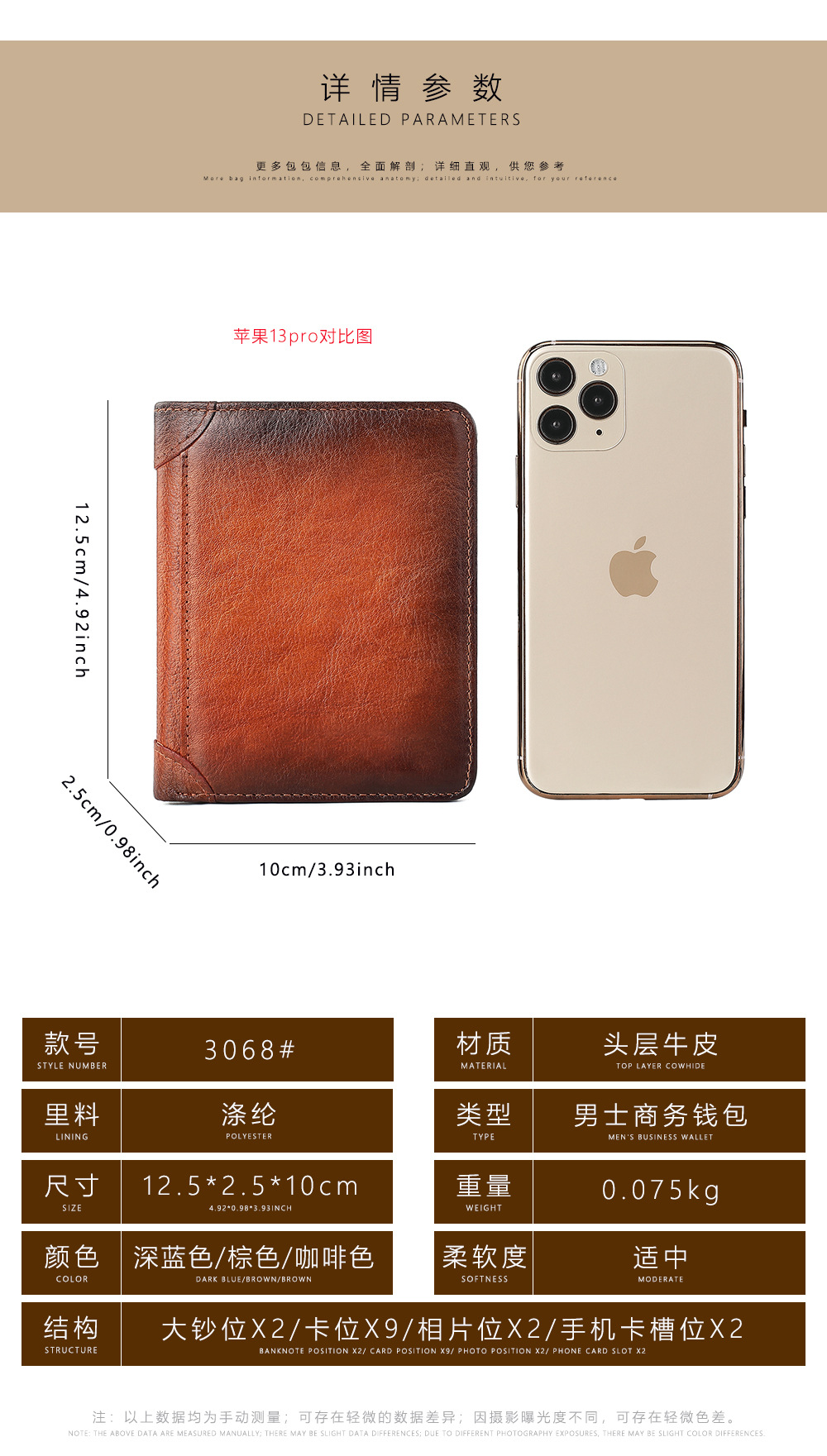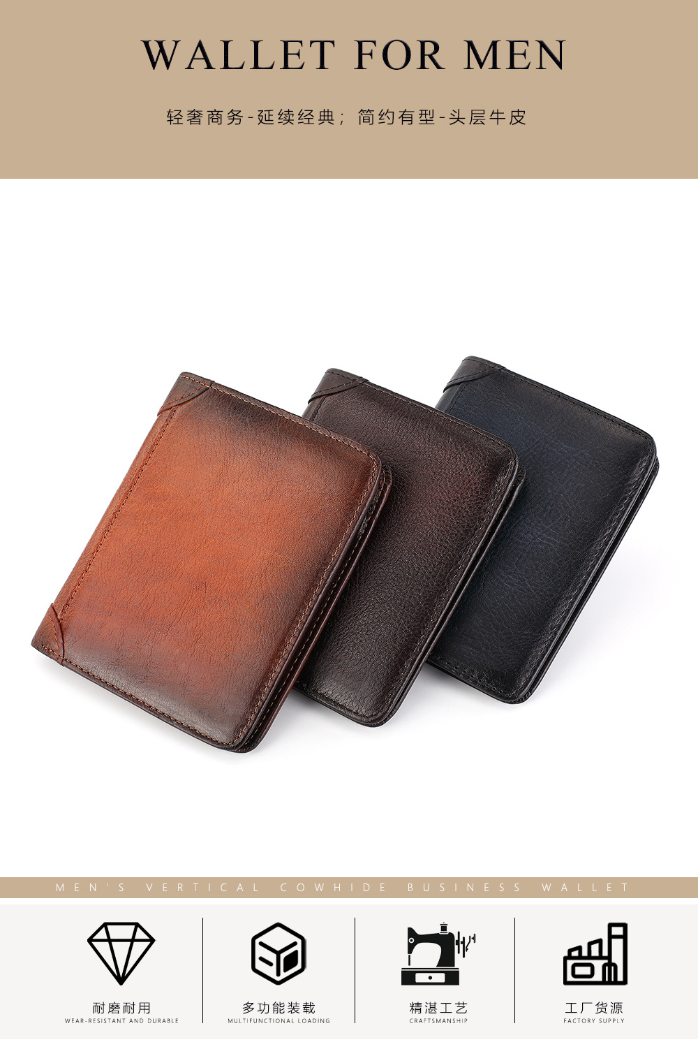 2023 컬러 가죽 초박형 남성 지갑 다기능 운전 면허증 일체형 트리플 쇼트 지갑 클립 헤드 레이어 소가죽스토어 가기