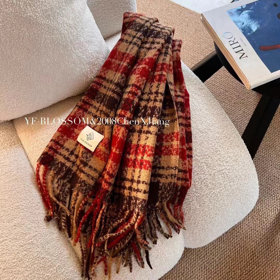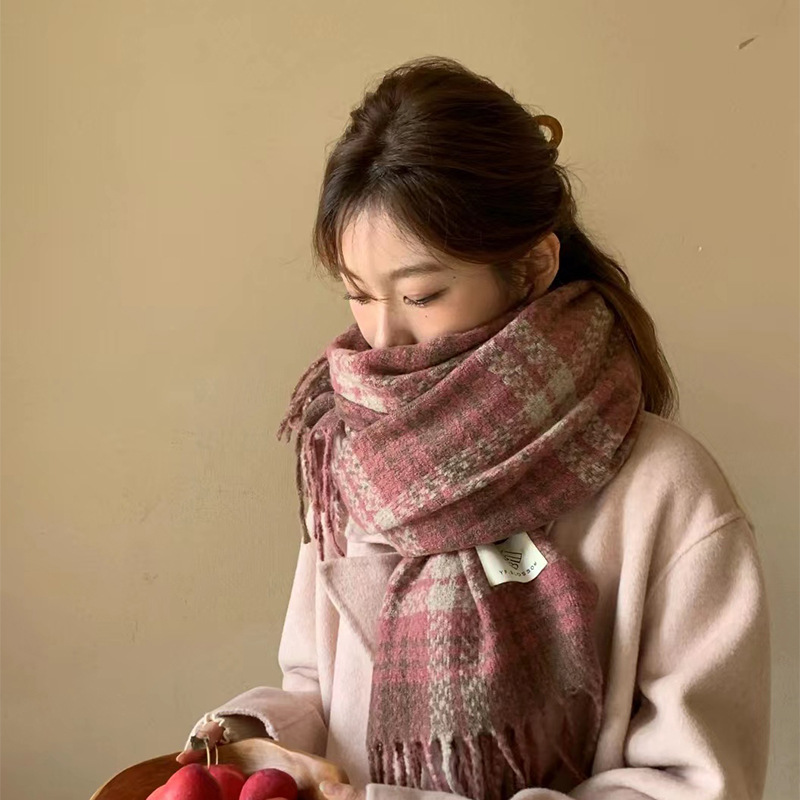 Tonglu 가을과 겨울 따뜻한 라즈베리 파우더 캐시미어 격자 무늬 분위기 고급 모든 매치 술 여성용 스카프스토어 가기