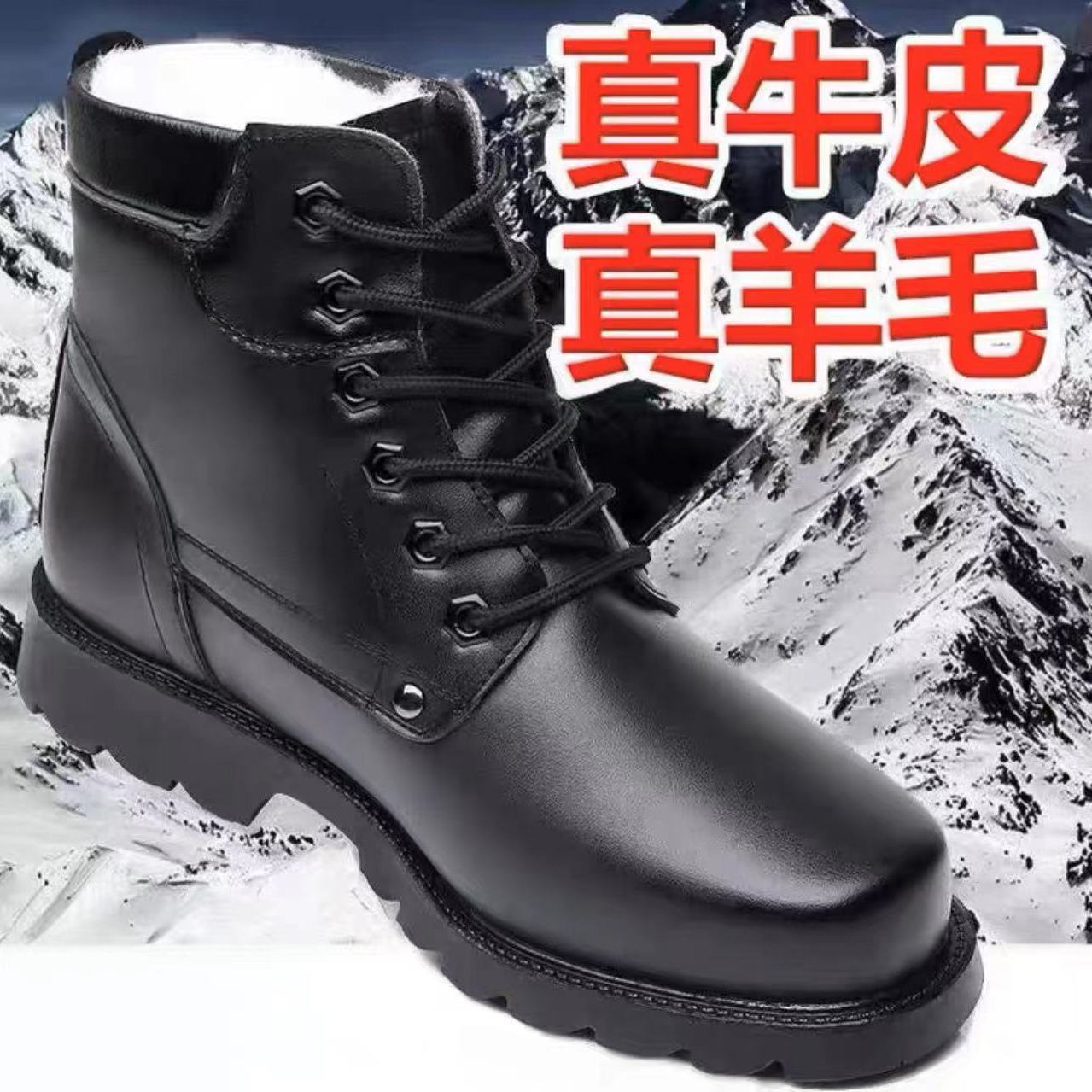겨울 남성용 면화 가죽 부츠 기모 두꺼운 울 스노우 부츠 남성용 가죽 하이 탑 마틴 부츠 야외 아빠 신발