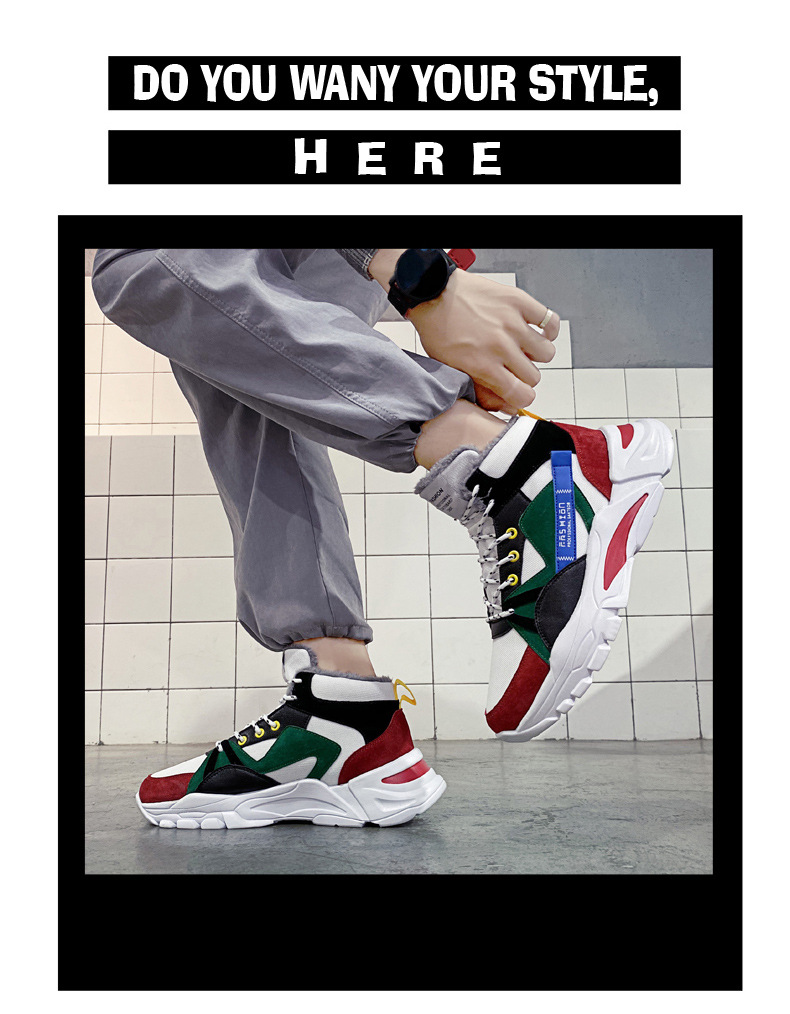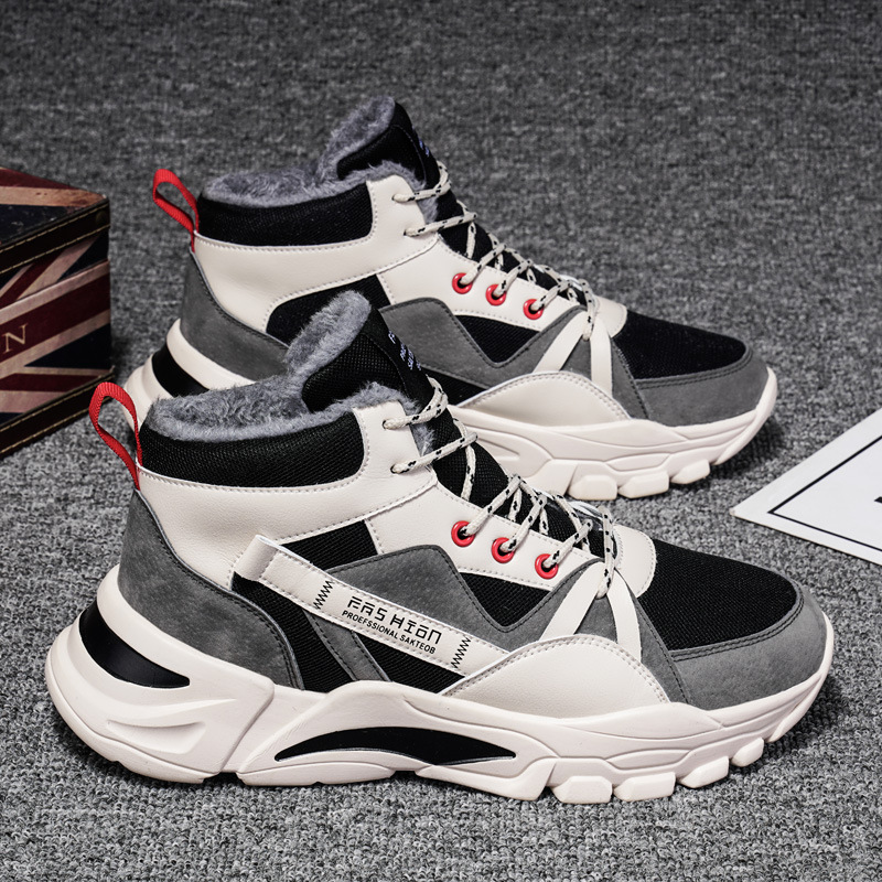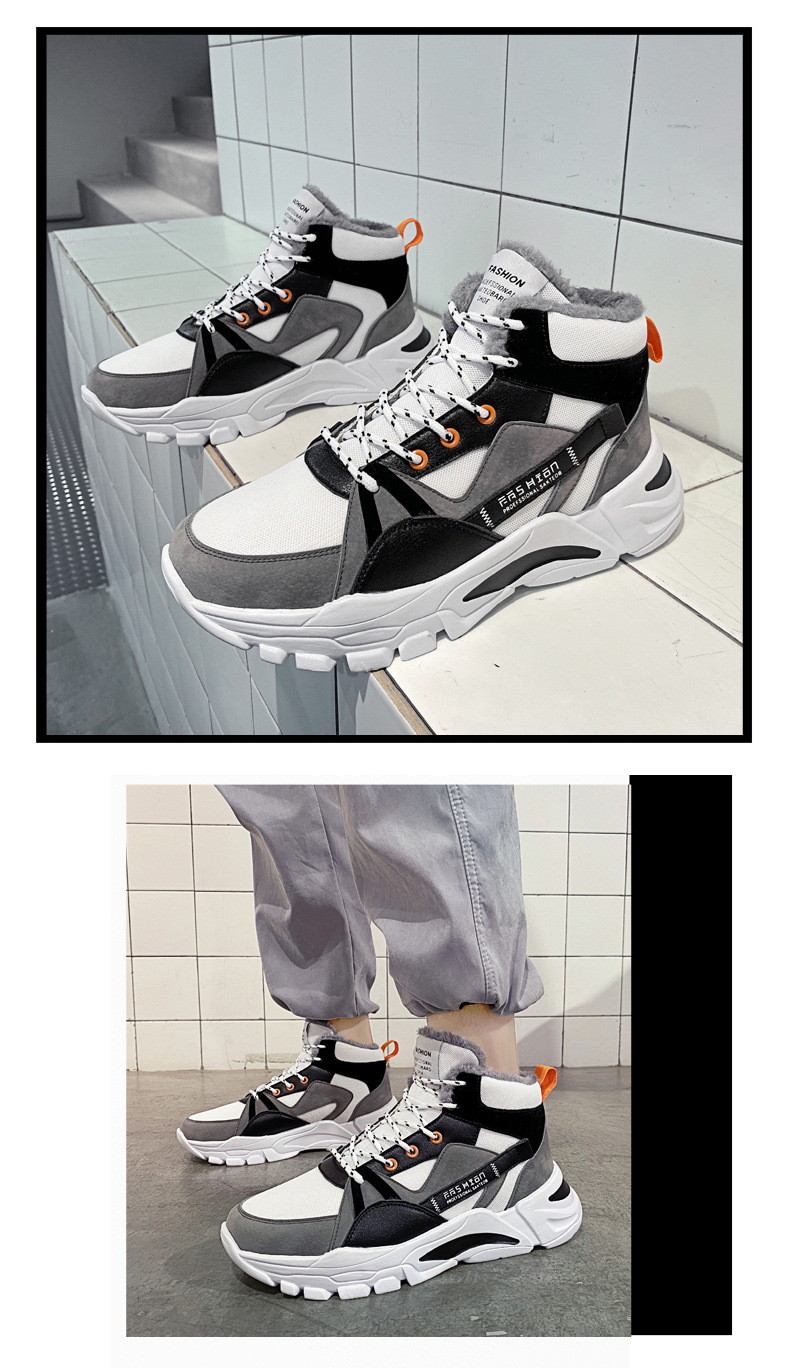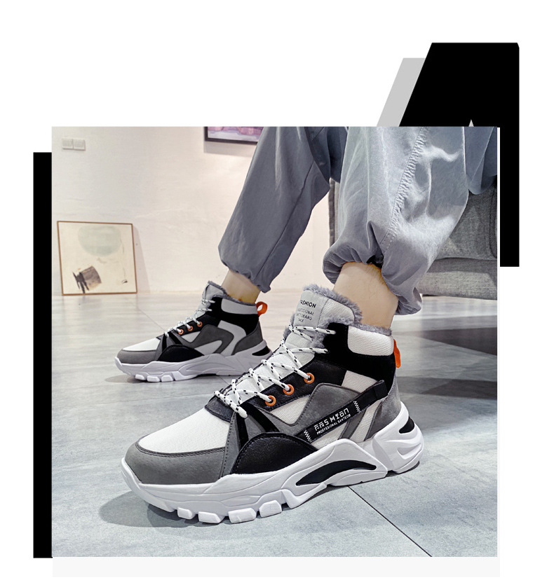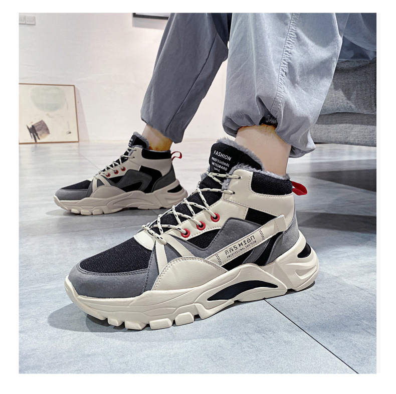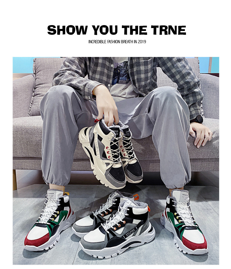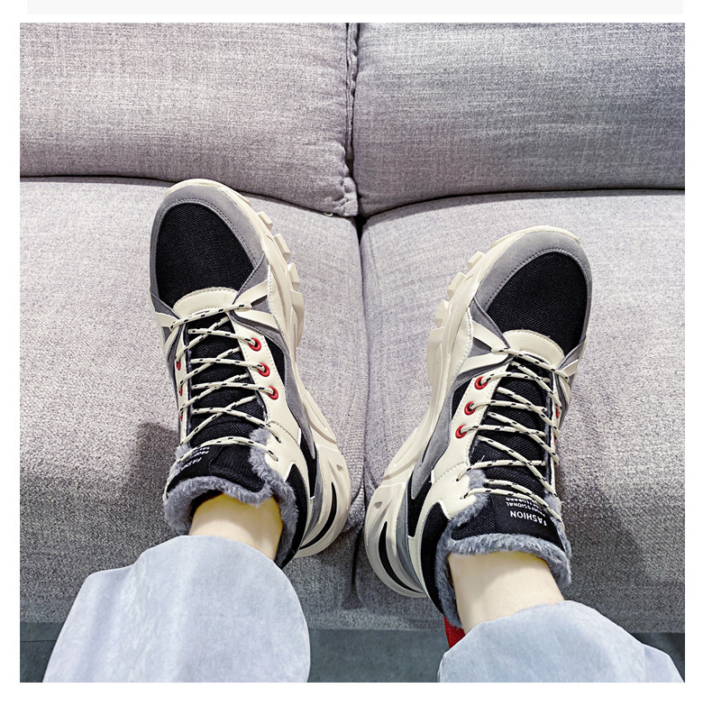 겨울 남성 신발 2024 새로운 아빠 신발 플러스 벨벳 따뜻한 동북 남성 캐주얼 두꺼운 밑창 중간 높이 신발 남성용스토어 가기