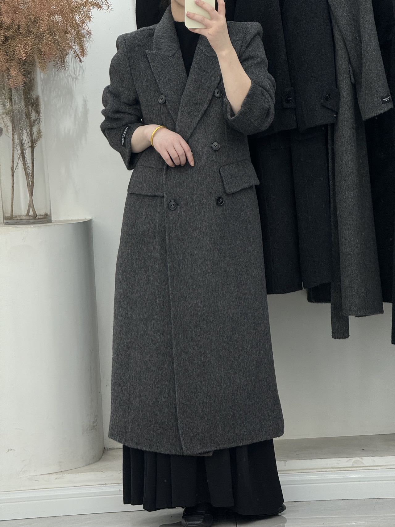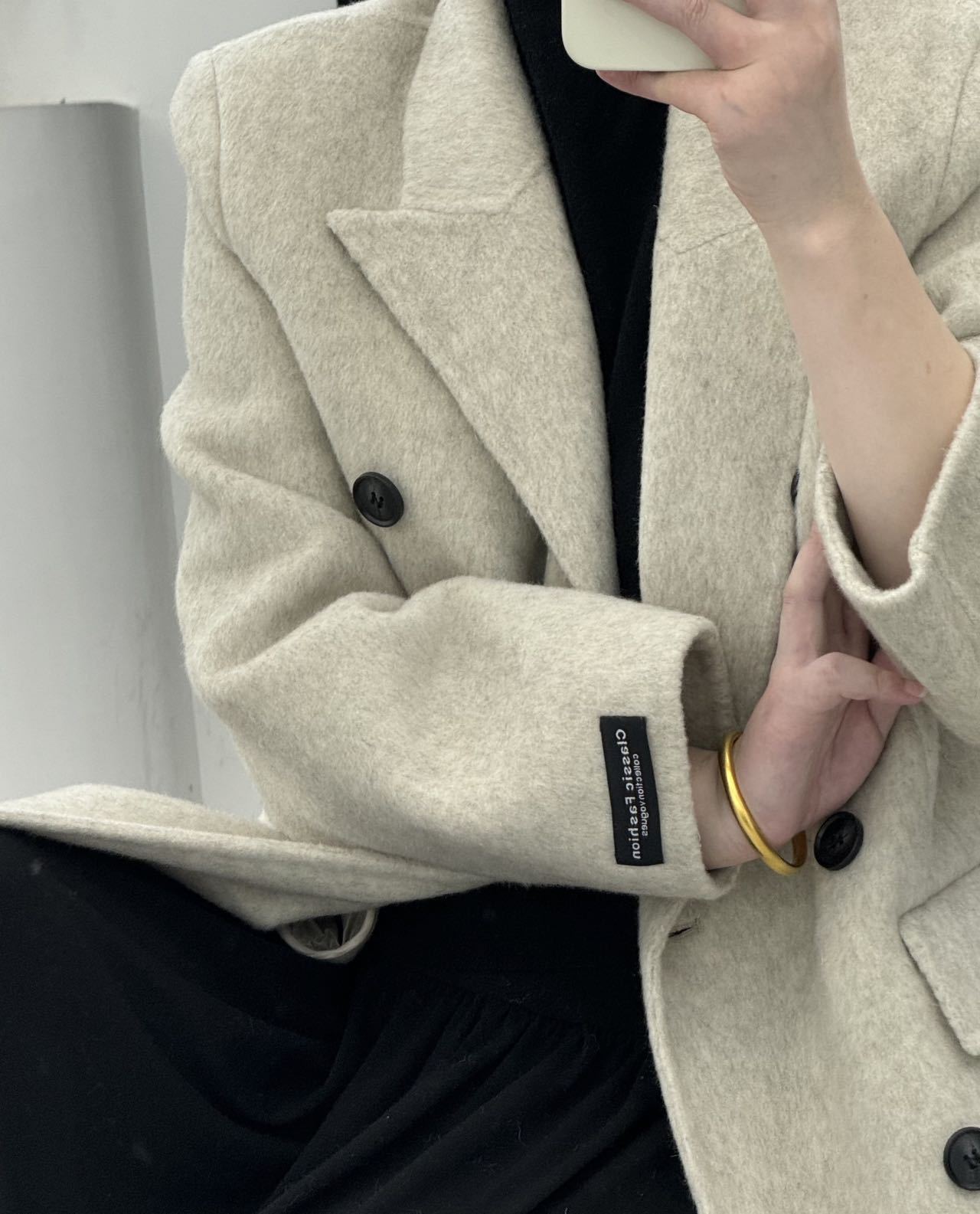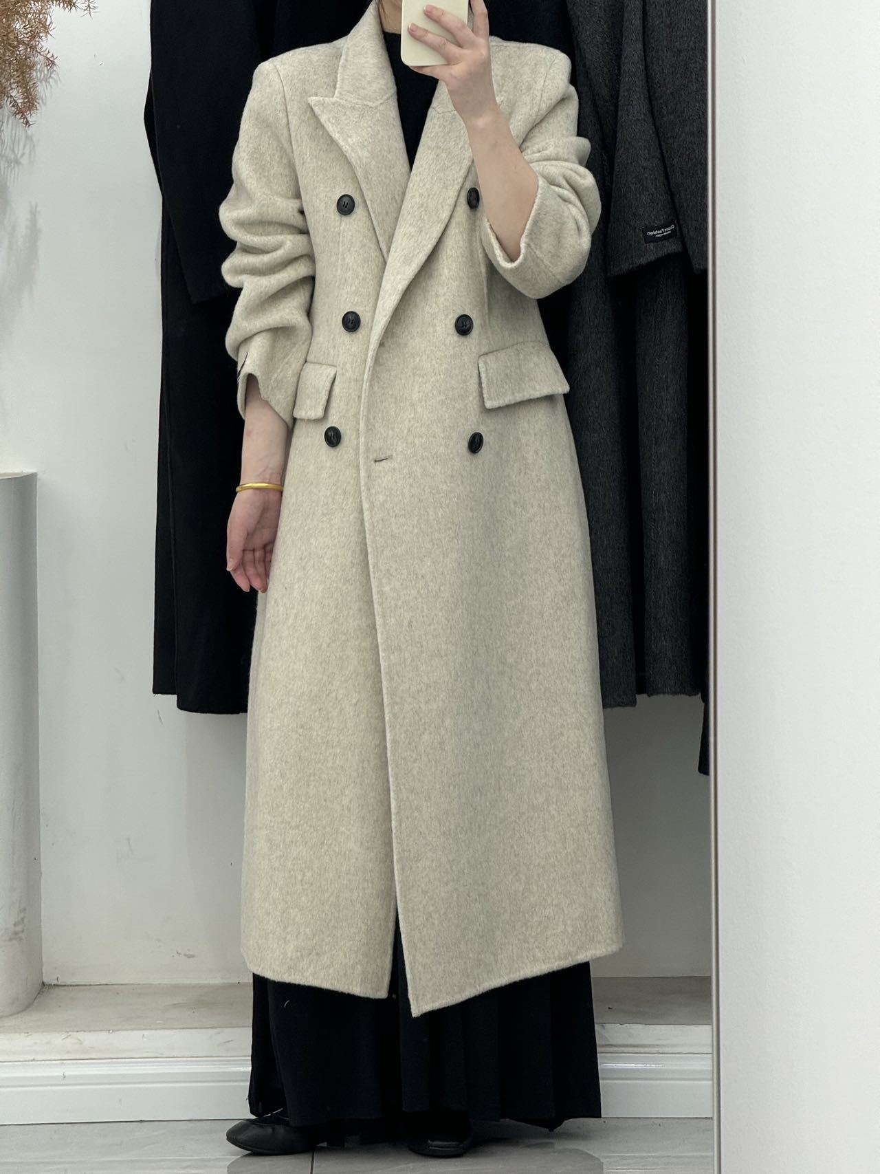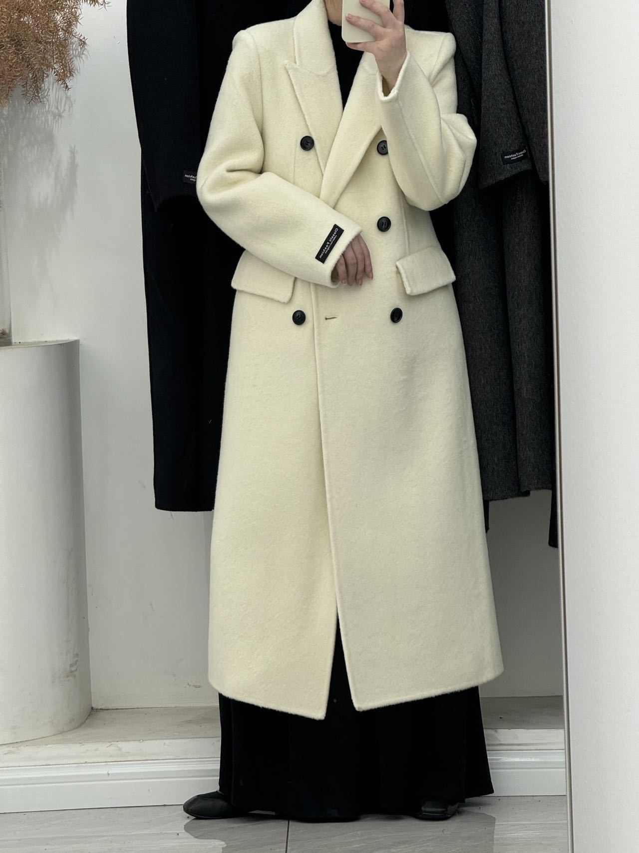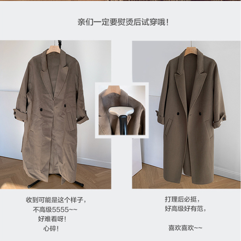 슬림핏 양면 캐시미어 코트 여성용 더블 버튼 슈트 칼라 한국 스타일 슈퍼 슬림핏 울 코트 두꺼운 울 소재스토어 가기
