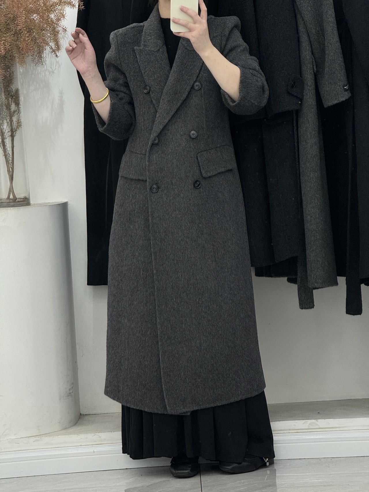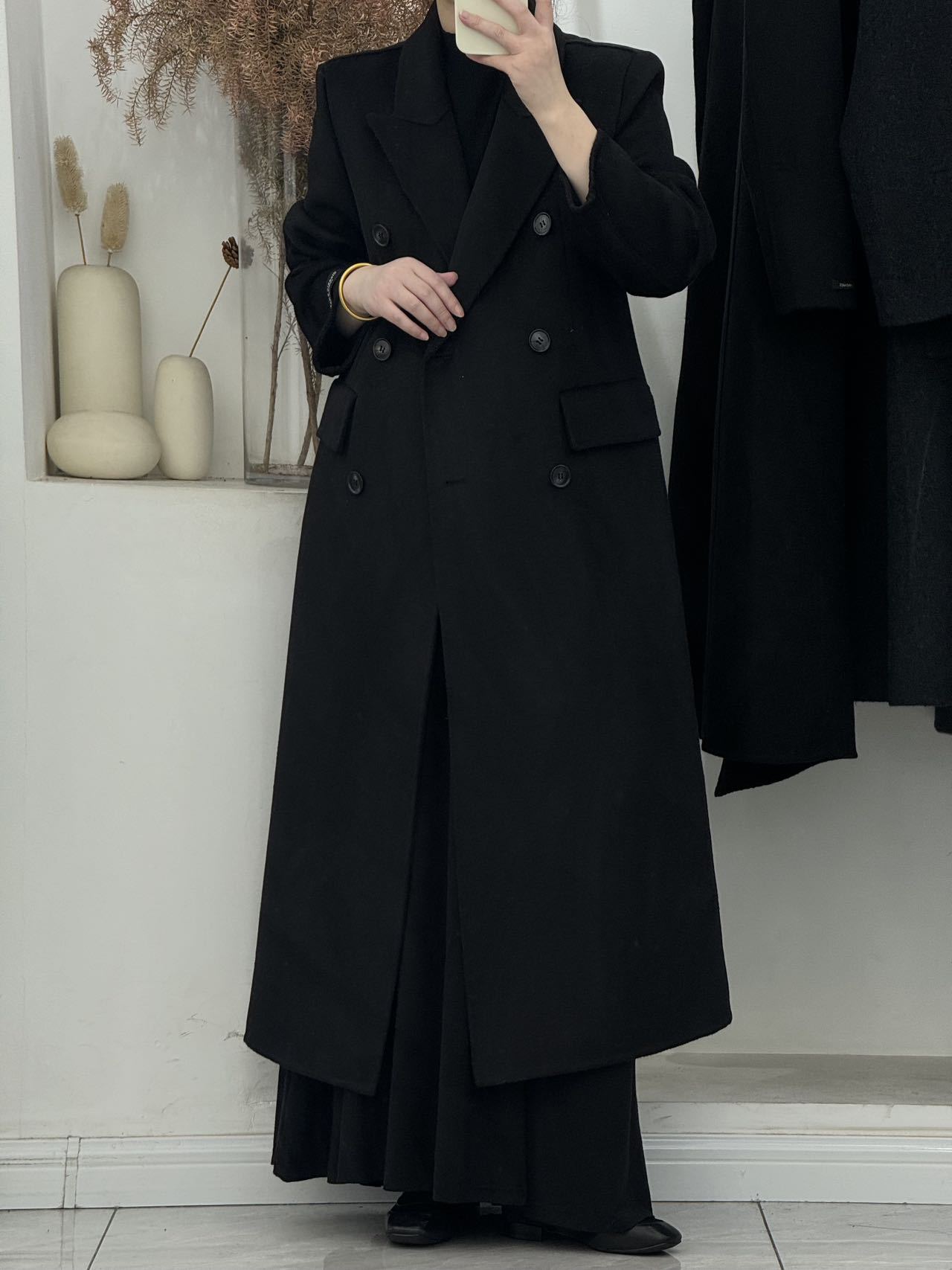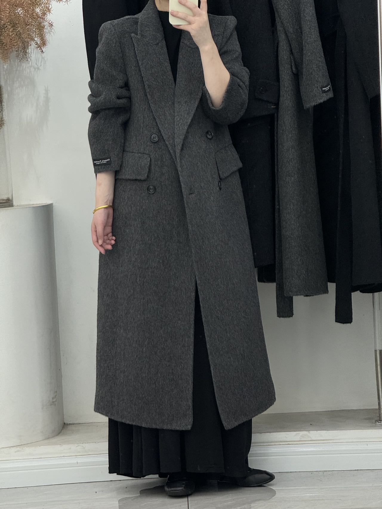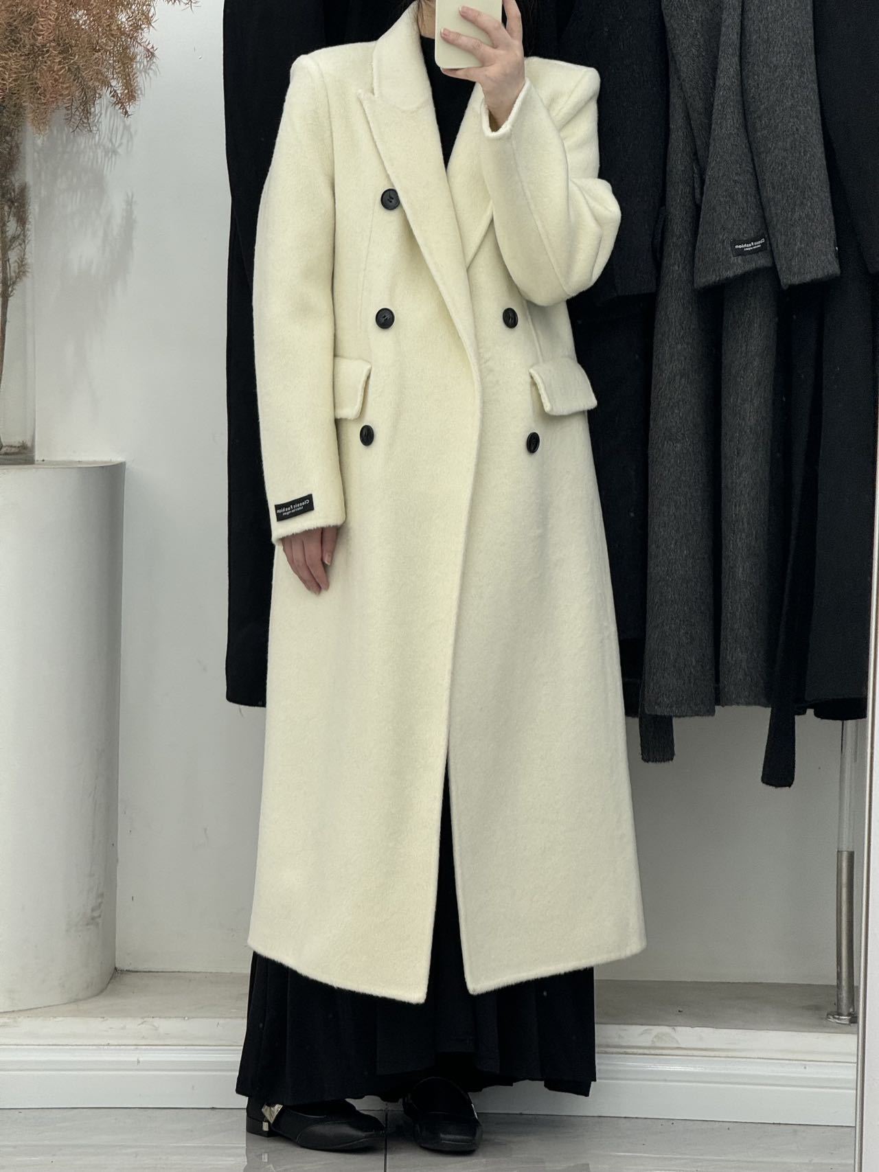 슬림핏 양면 캐시미어 코트 여성용 더블 버튼 슈트 칼라 한국 스타일 슈퍼 슬림핏 울 코트 두꺼운 울 소재스토어 가기