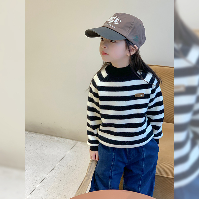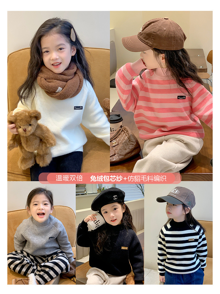 여아용 두꺼운 스웨터 2024 가을 겨울 신상 아동복 다용도 상의 유아용 베이스 셔츠 아동용 플리스 니트웨어스토어 가기