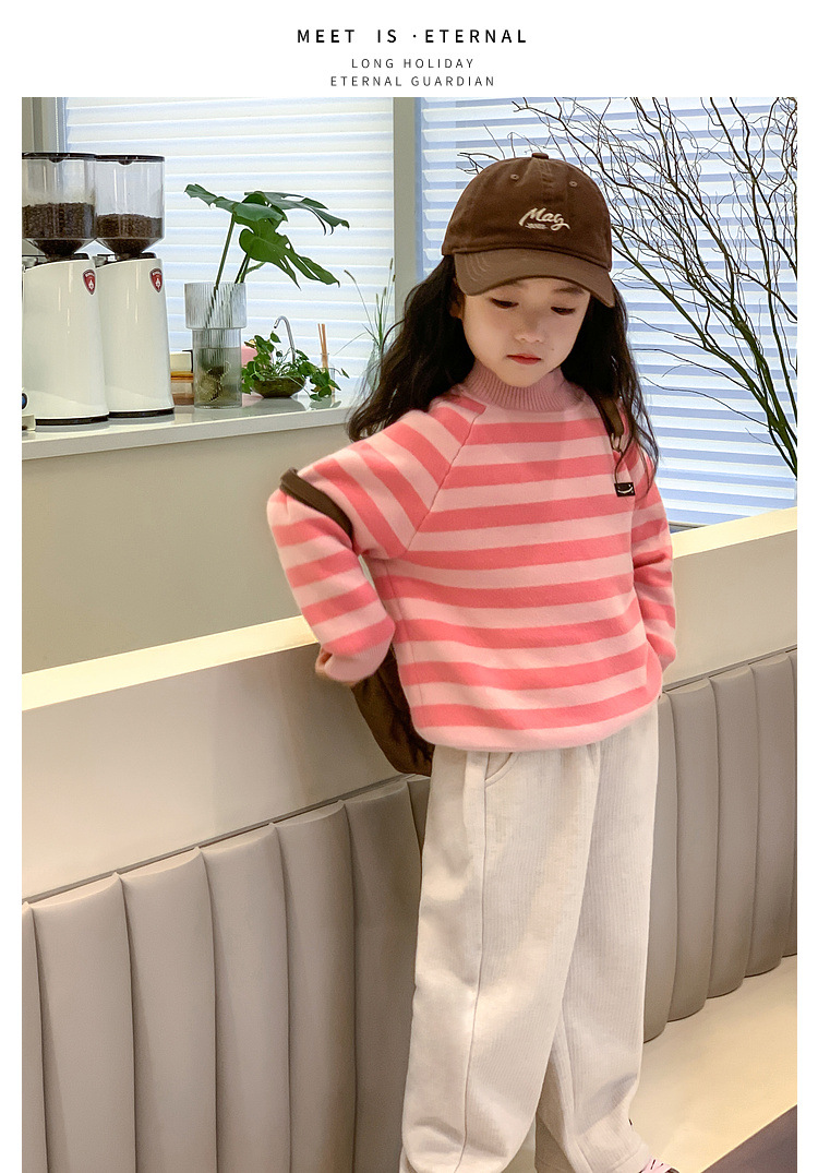 여아용 두꺼운 스웨터 2024 가을 겨울 신상 아동복 다용도 상의 유아용 베이스 셔츠 아동용 플리스 니트웨어