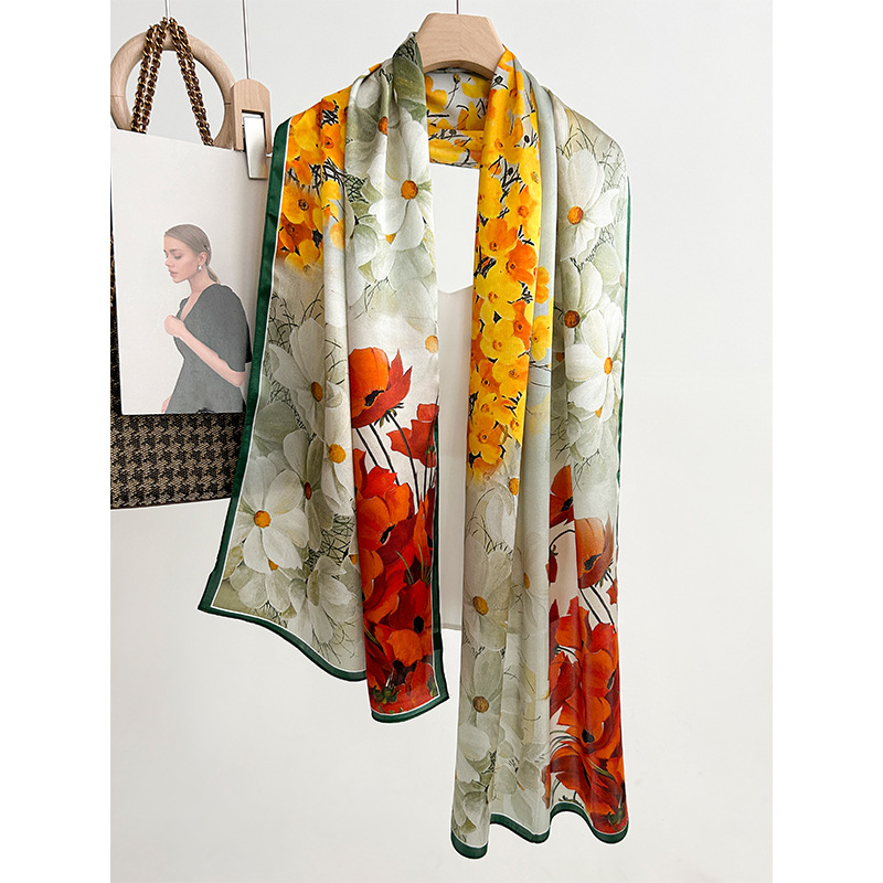 실크 스카프 새로운 모든 매치 꽃 일반 크레이프 새틴 스카프 선물 고급 뽕나무 실크 롱 스카프 고급 패션 스카프