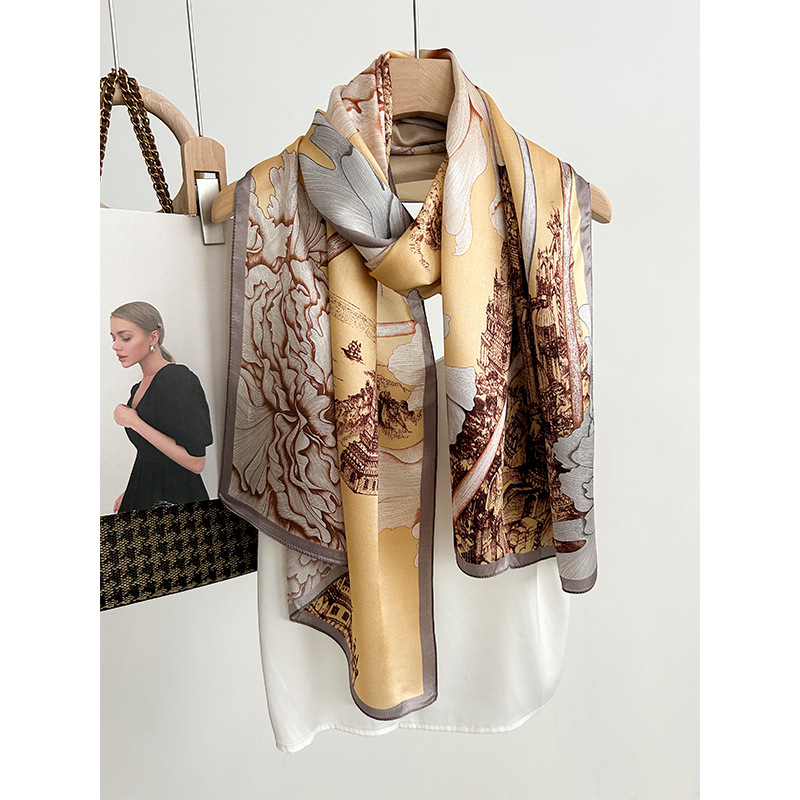 실크 스카프 새로운 모든 매치 꽃 일반 크레이프 새틴 스카프 선물 고급 뽕나무 실크 롱 스카프 고급 패션 스카프스토어 가기