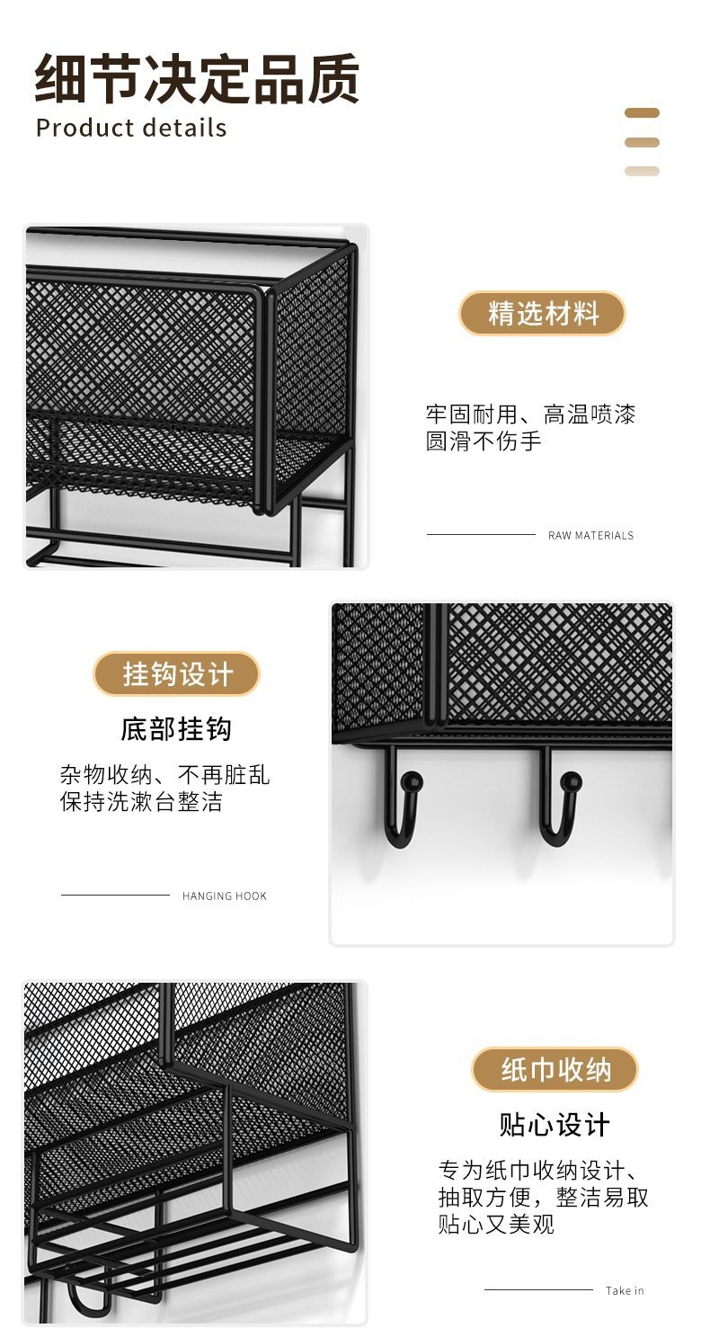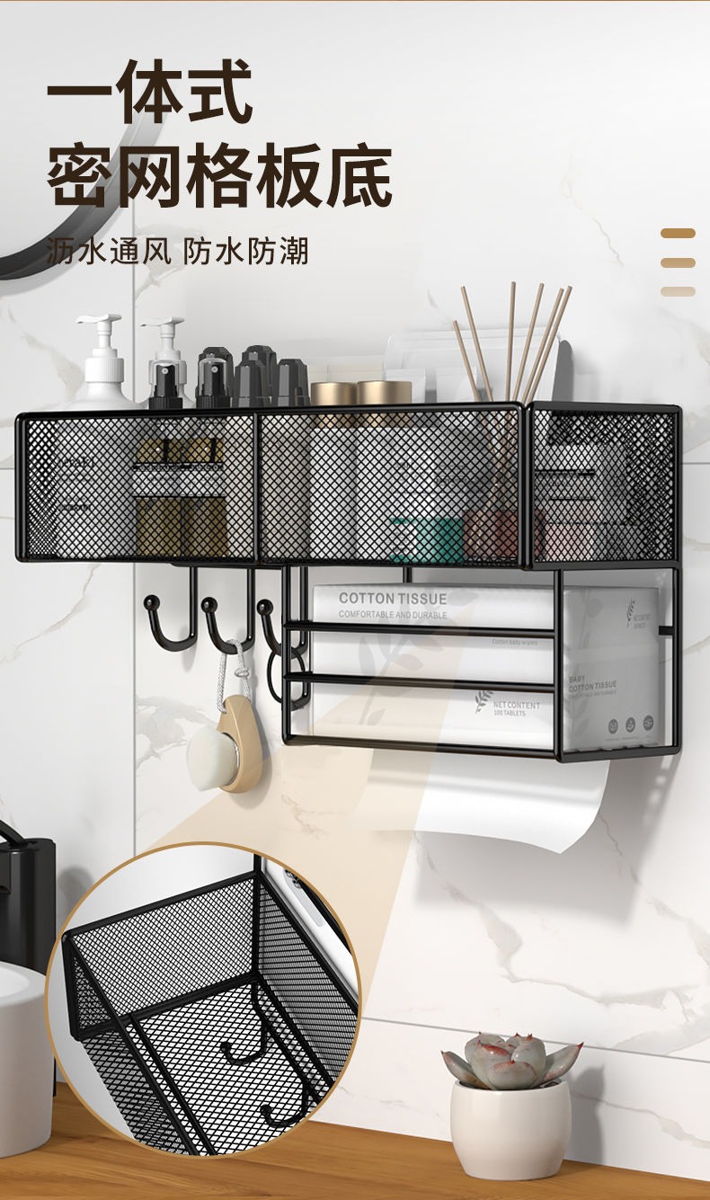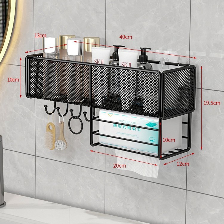 욕실 수납 선반 무타공 세면대 화장품 욕실 걸이형 바구니 수납 티슈 홀더