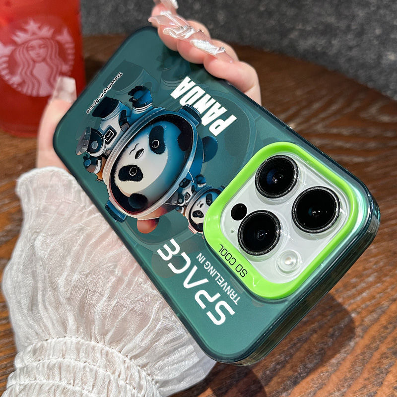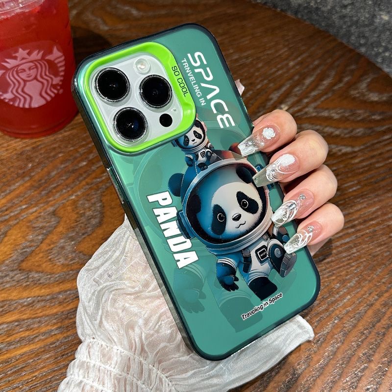 • [팬더 우주 비행사-녹색] 컬러 실버 젖빛 쉘