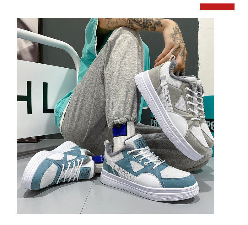 겨울 남성 신발 2023 유행 모든 경기 기모 십대 남성 캐주얼 스포츠 하이탑 면 신발