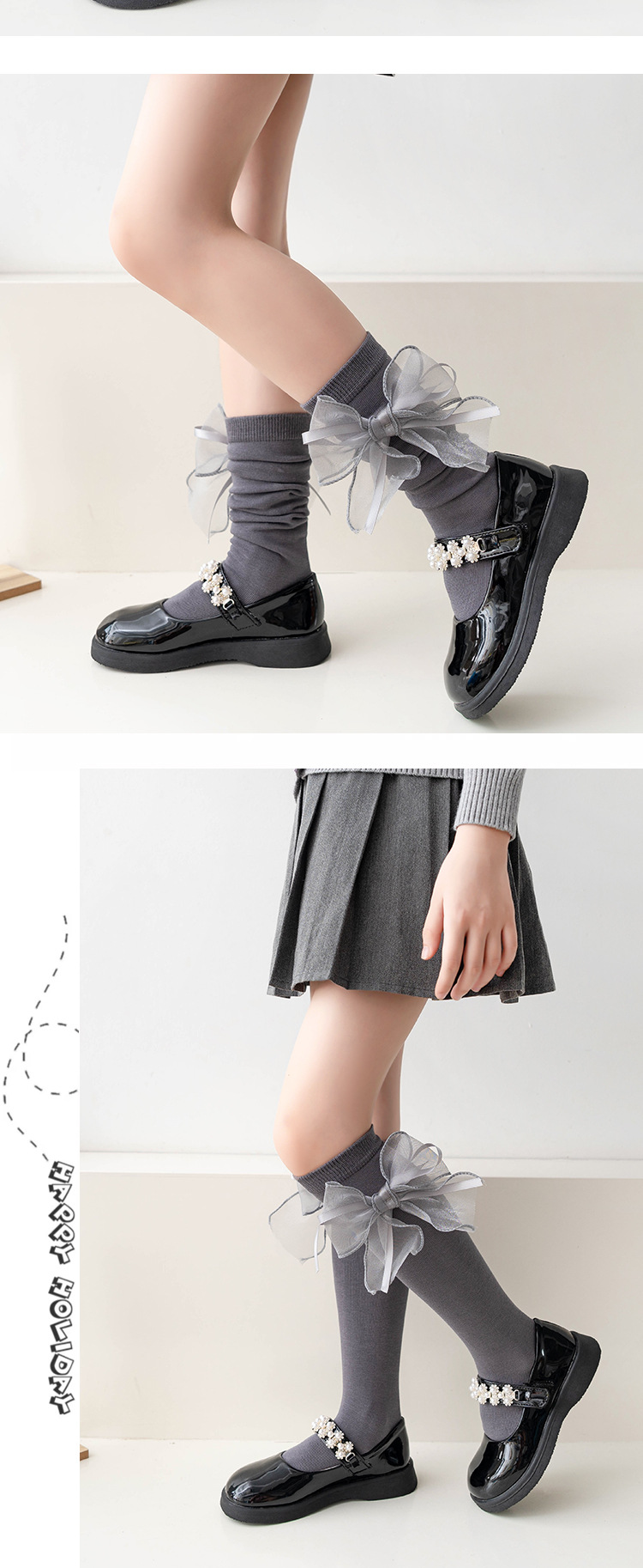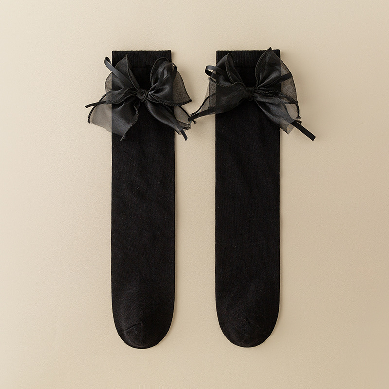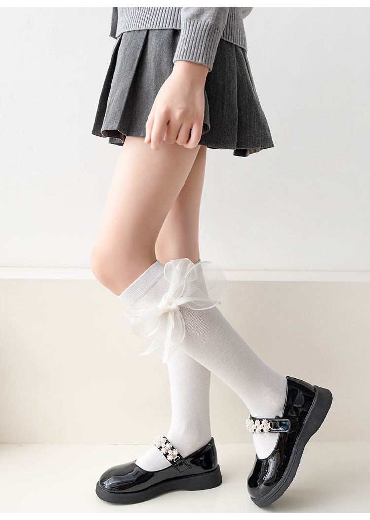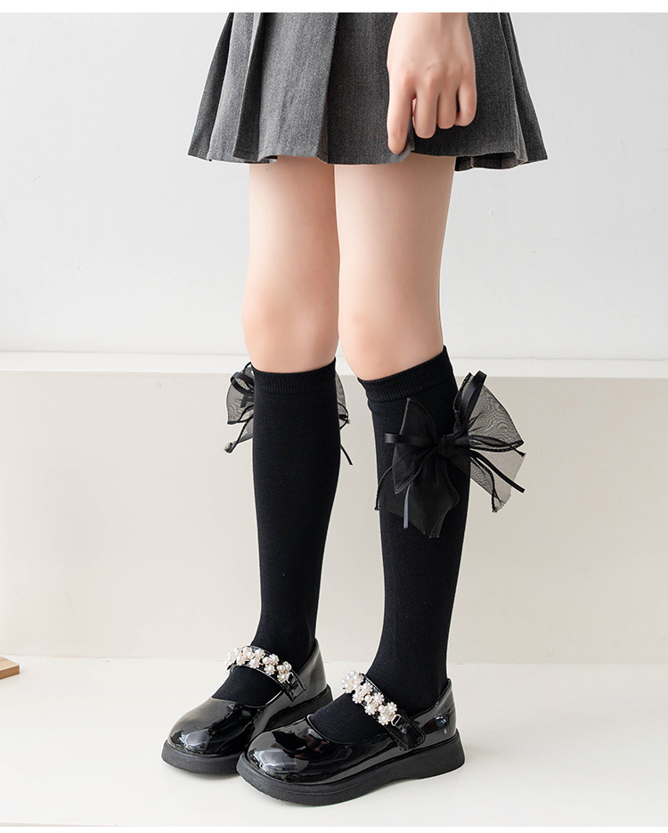 여아 중간 길이 스타킹 봄과 가을 얇은 어린이 무릎 위 활 스타킹 어린 소녀의 반 다리 스택 스타킹스토어 가기