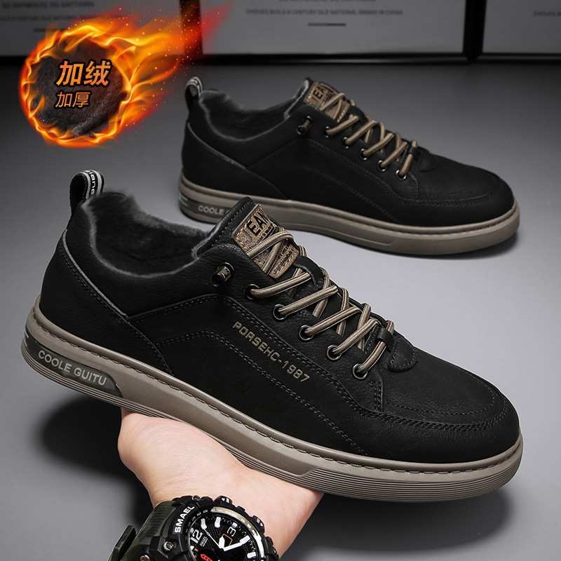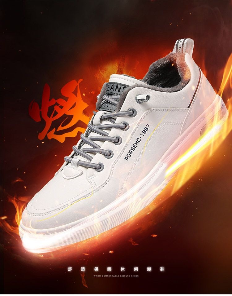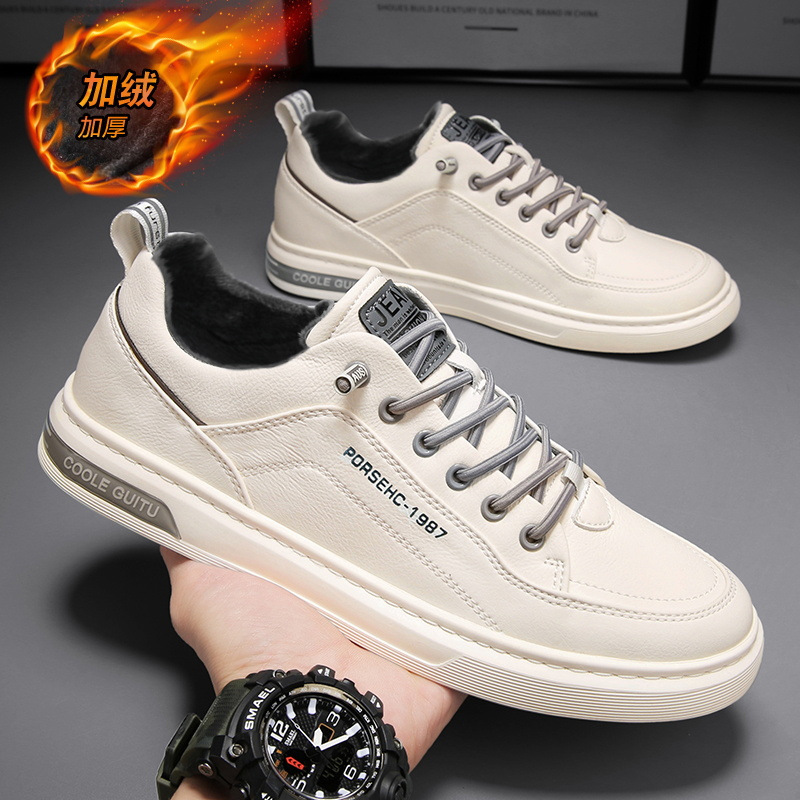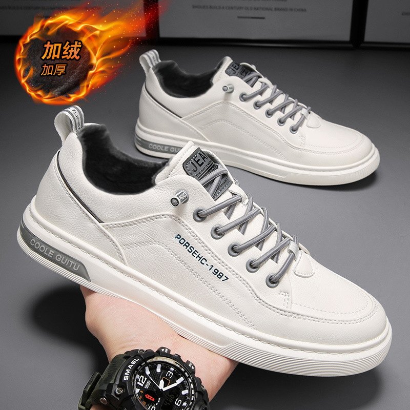 남자 신발 가을과 겨울 흰색 스니커즈 남자의 트렌디 한 모든 경기 스포츠 플랫 가죽 신발 심플 기모 두꺼운 캐주얼 신발