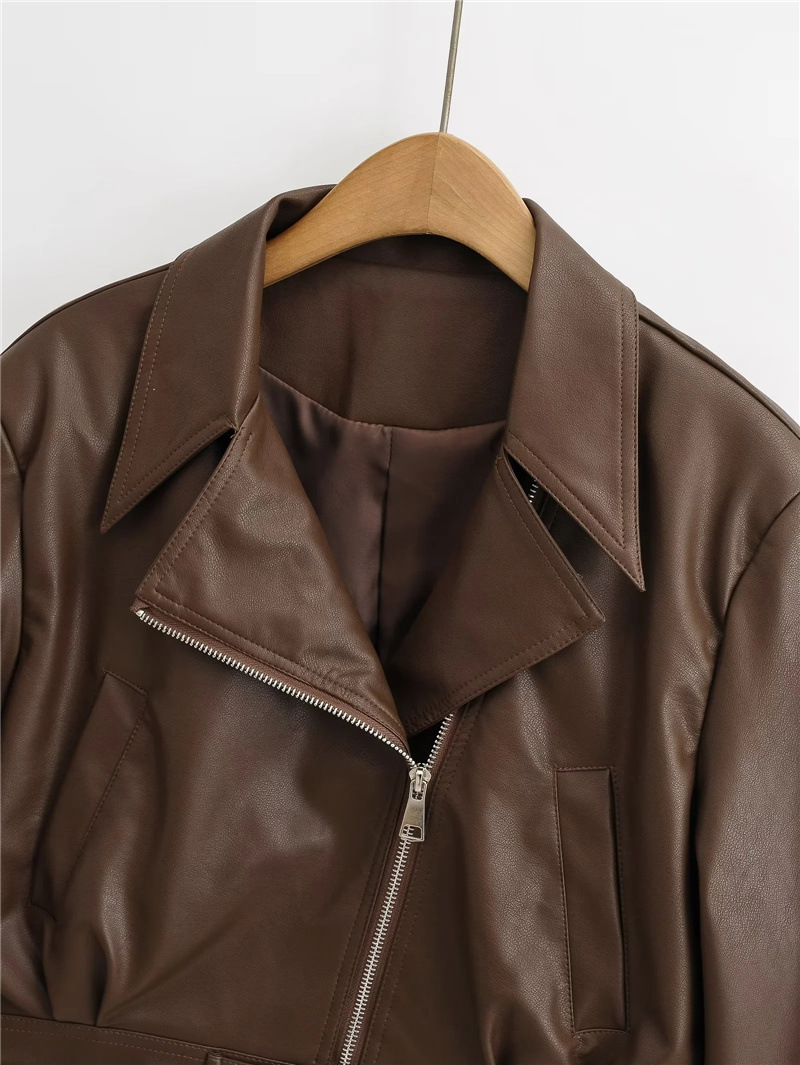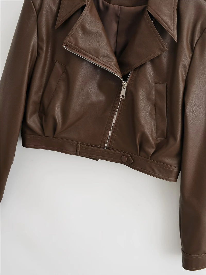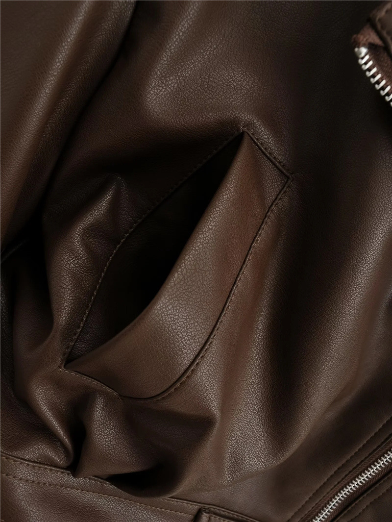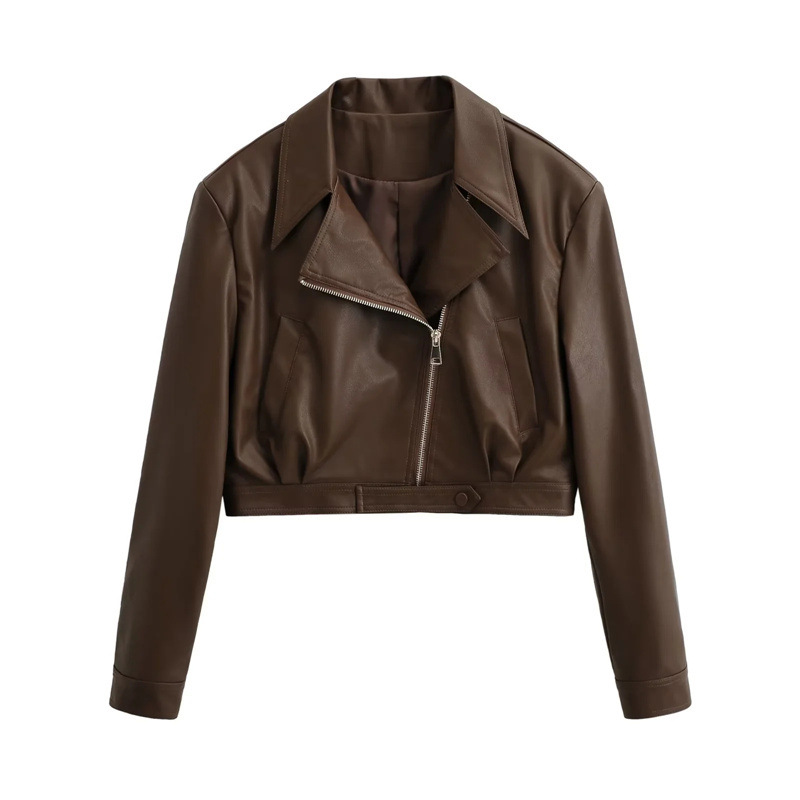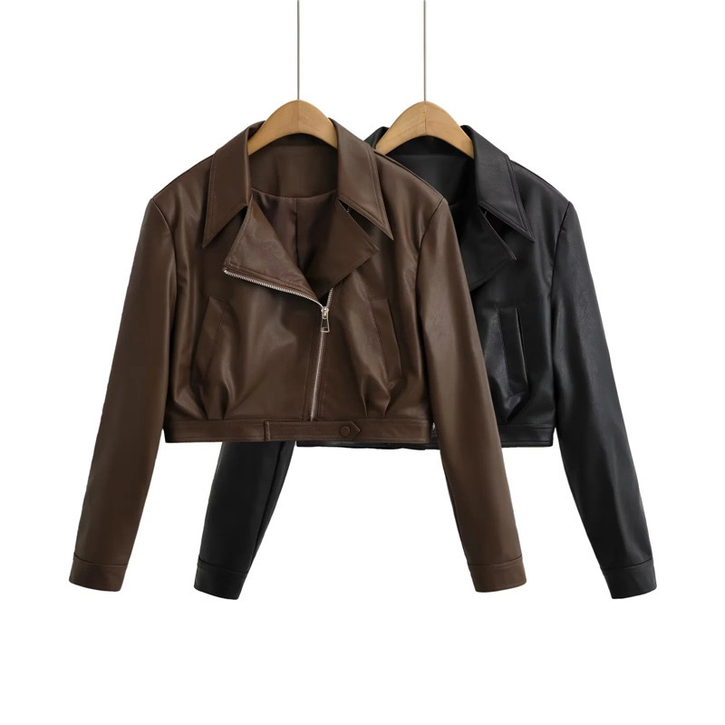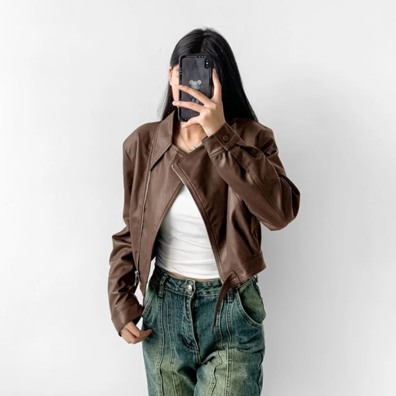 아메리칸 스타일 레트로 바이커 핫 짧은 가죽 자켓 가을 새로운 경사 도어 지퍼 슬림핏 개성 재킷 탑 코트