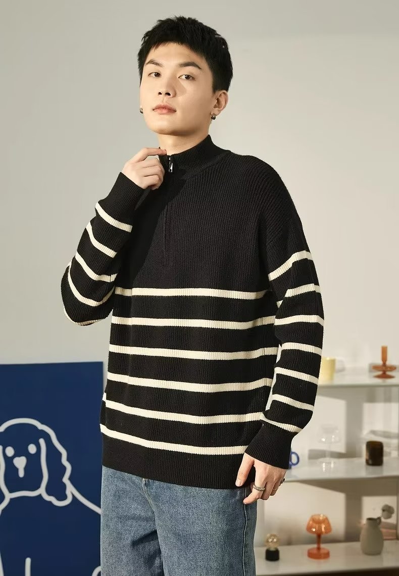 2023 하프 지퍼 스트라이프 스웨터 남성용 스탠드 칼라 가을 신상 루즈핏 풀오버 니트 재킷