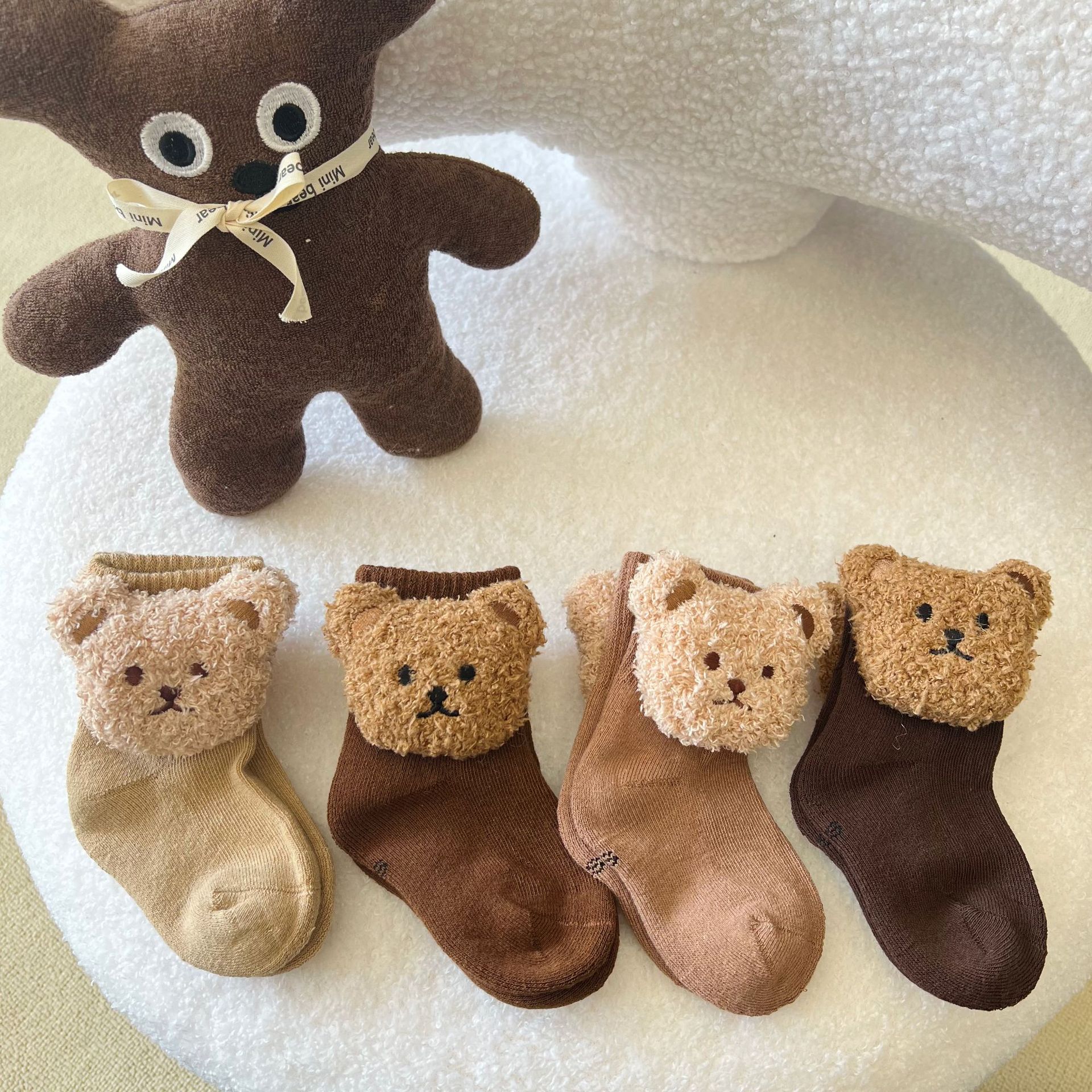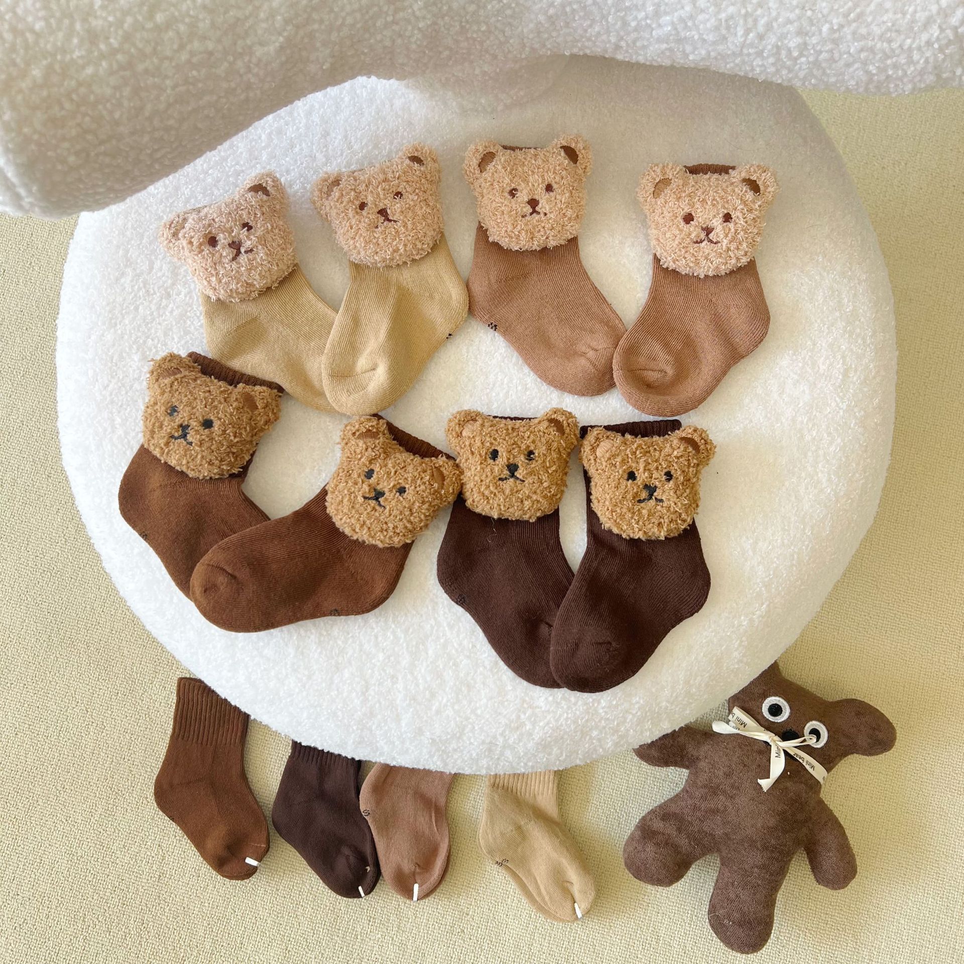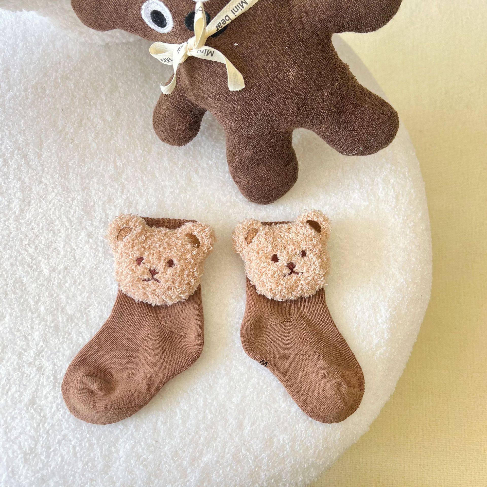 가을과 겨울 신생아 양말 테리 기모 두꺼운 튜브 따뜻한 아기 양말 귀여운 곰 어린이 양말 도매