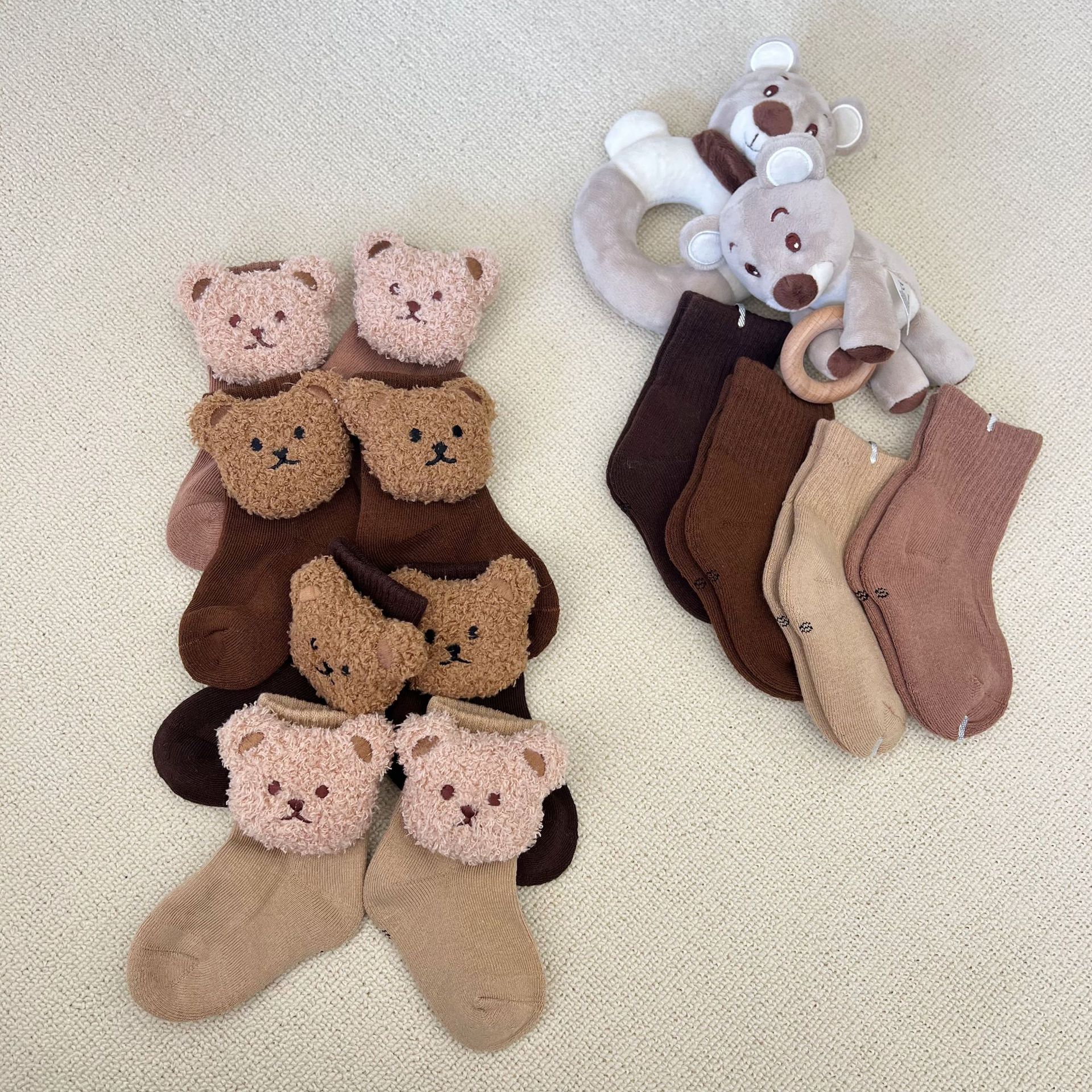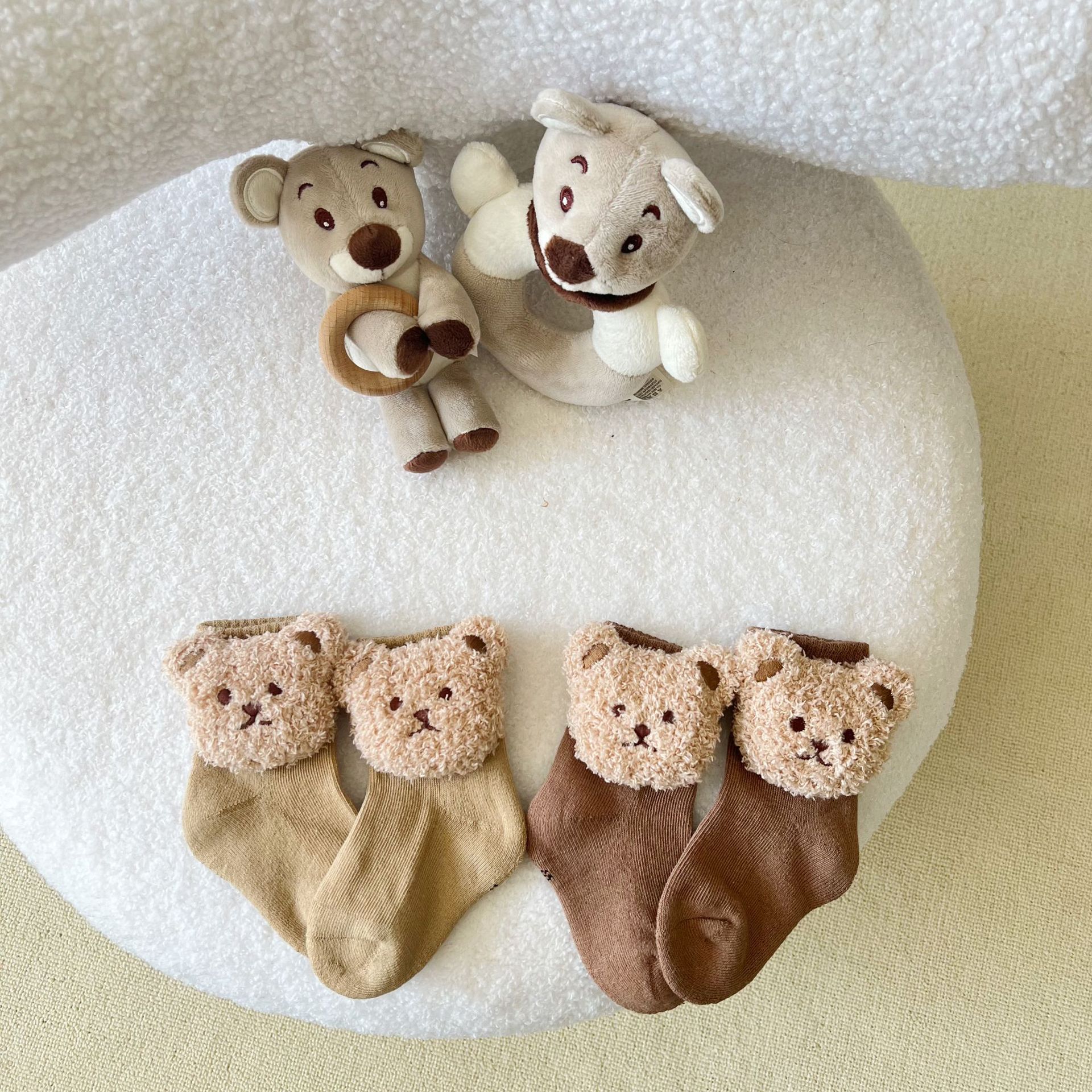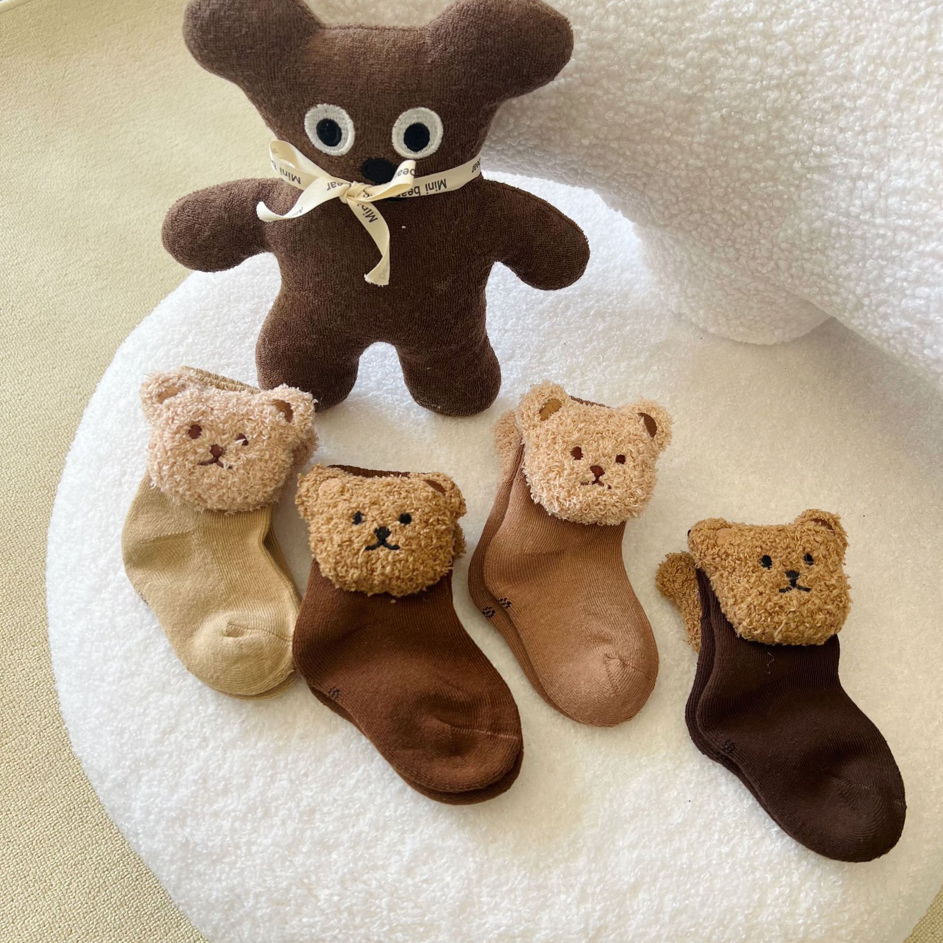 가을과 겨울 신생아 양말 테리 기모 두꺼운 튜브 따뜻한 아기 양말 귀여운 곰 어린이 양말 도매