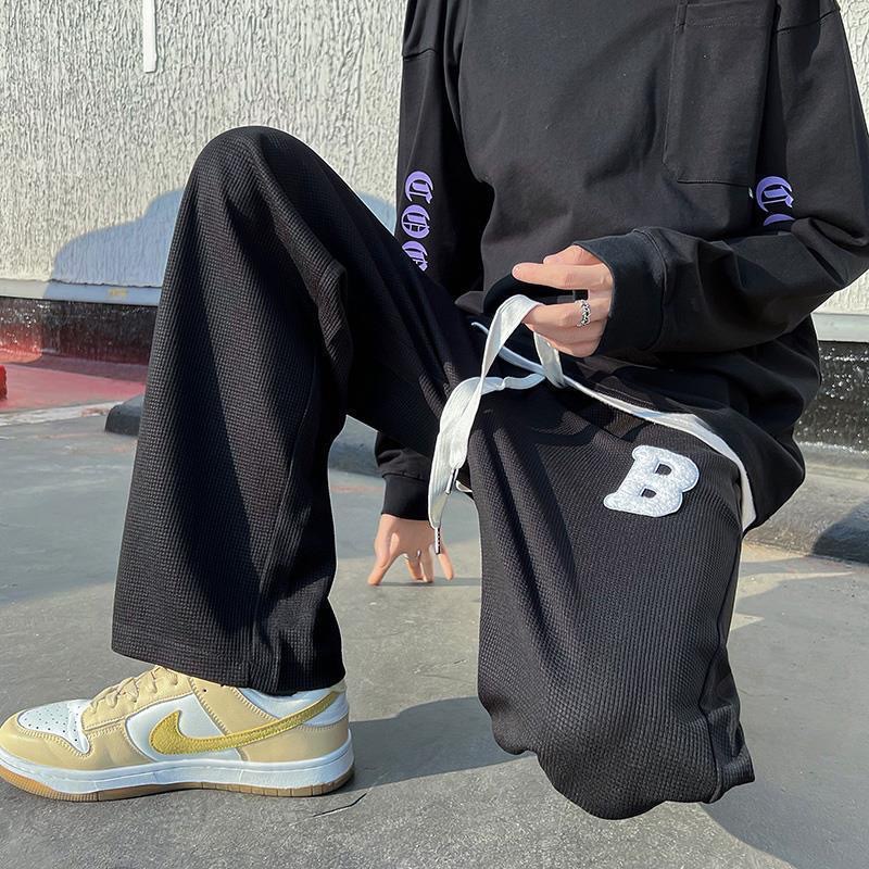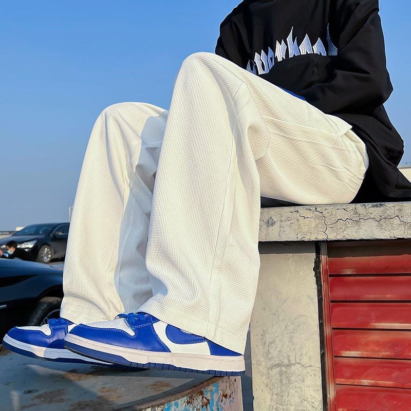 크로스보더 팬츠 남성용 여름 새 패션 브랜드 올매치 루즈한 스트레이트 레그 스포츠 팬츠 화이트 와이드 레그 마이크로 풀 캐주얼 팬츠스토어 가기