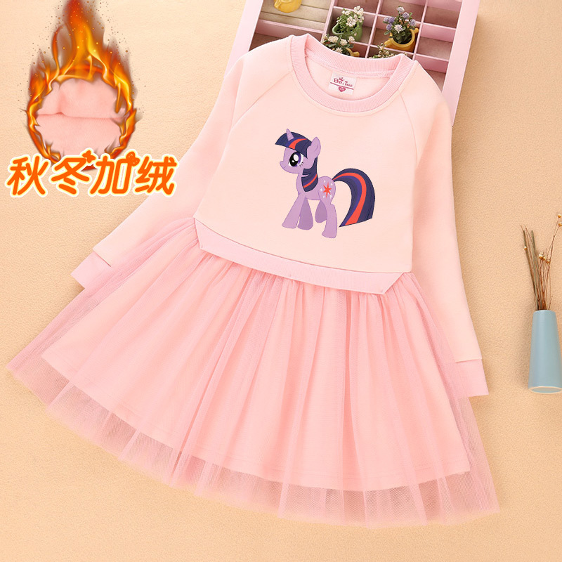 2023 새로운 겨울 소녀의 기모 원피스 어린이 공주 원피스 가짜 투피스 두꺼운 스웨트 셔츠 원피스 소녀의 베일 원피스스토어 가기