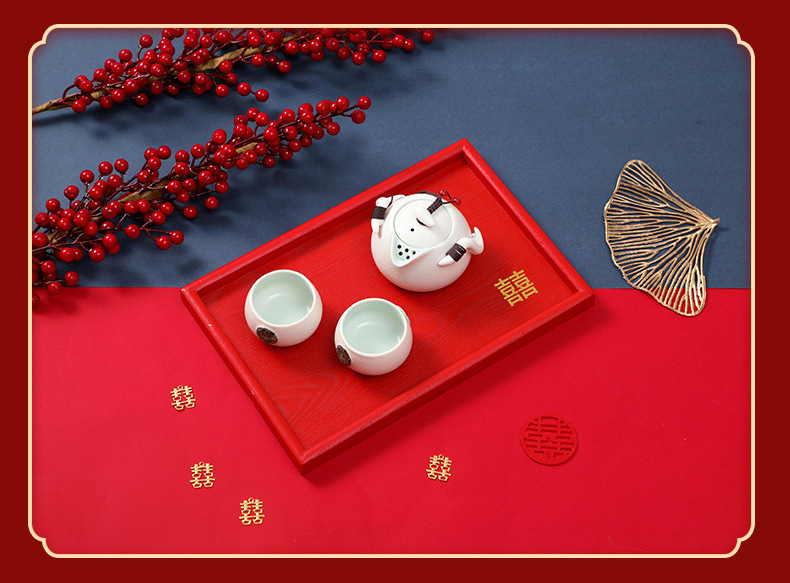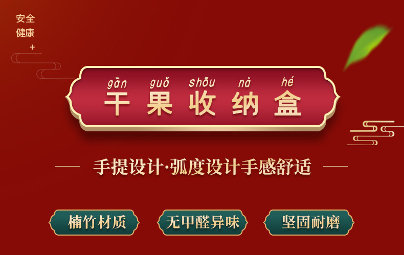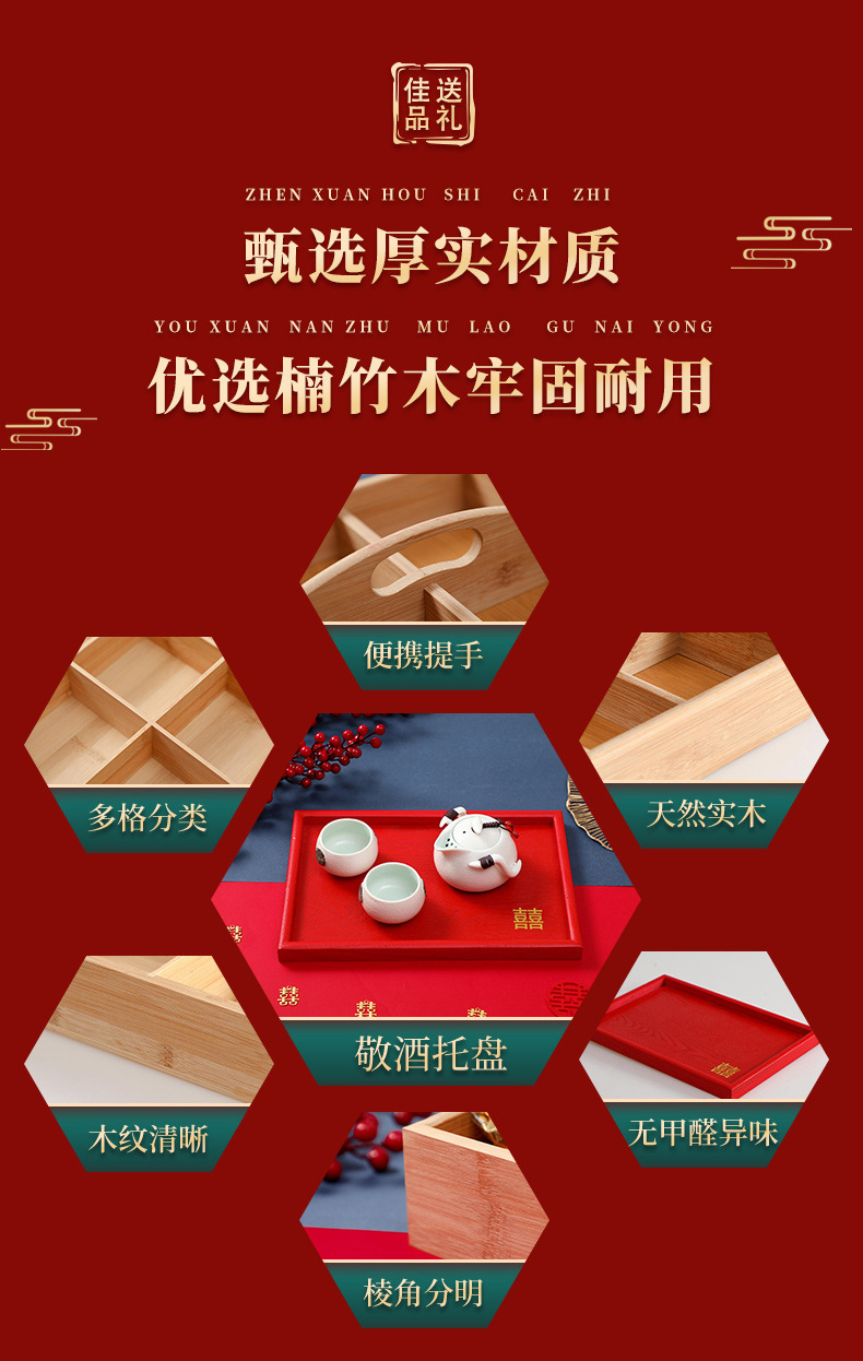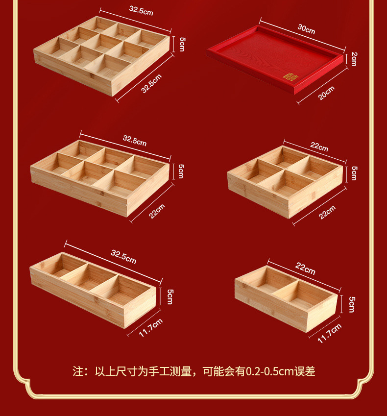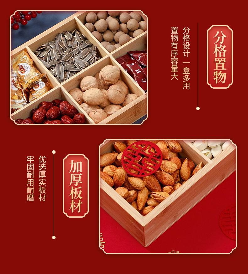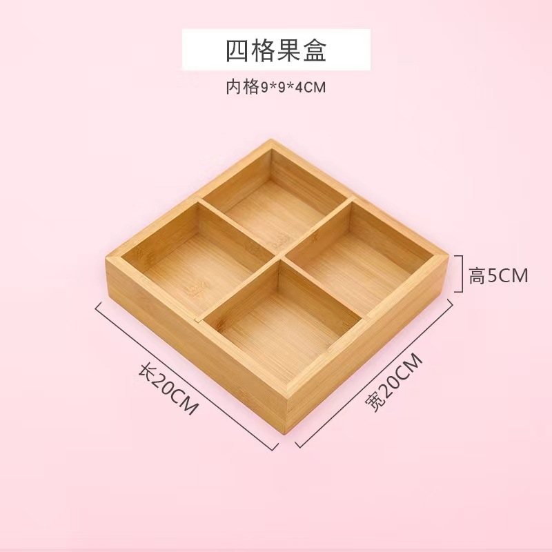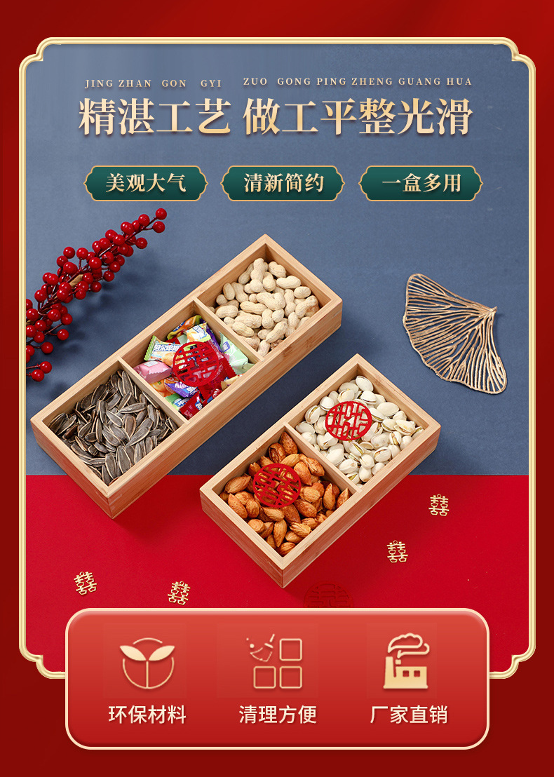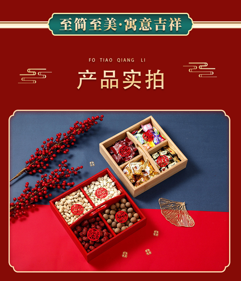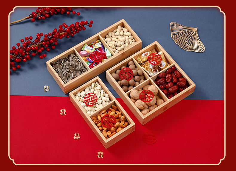 4 구획 건조 과일 상자 약혼 장식 손잡이 건조 과일 상자 거실 데스크탑 간단한 다중 구획 보관 빨간 쟁반 나무스토어 가기