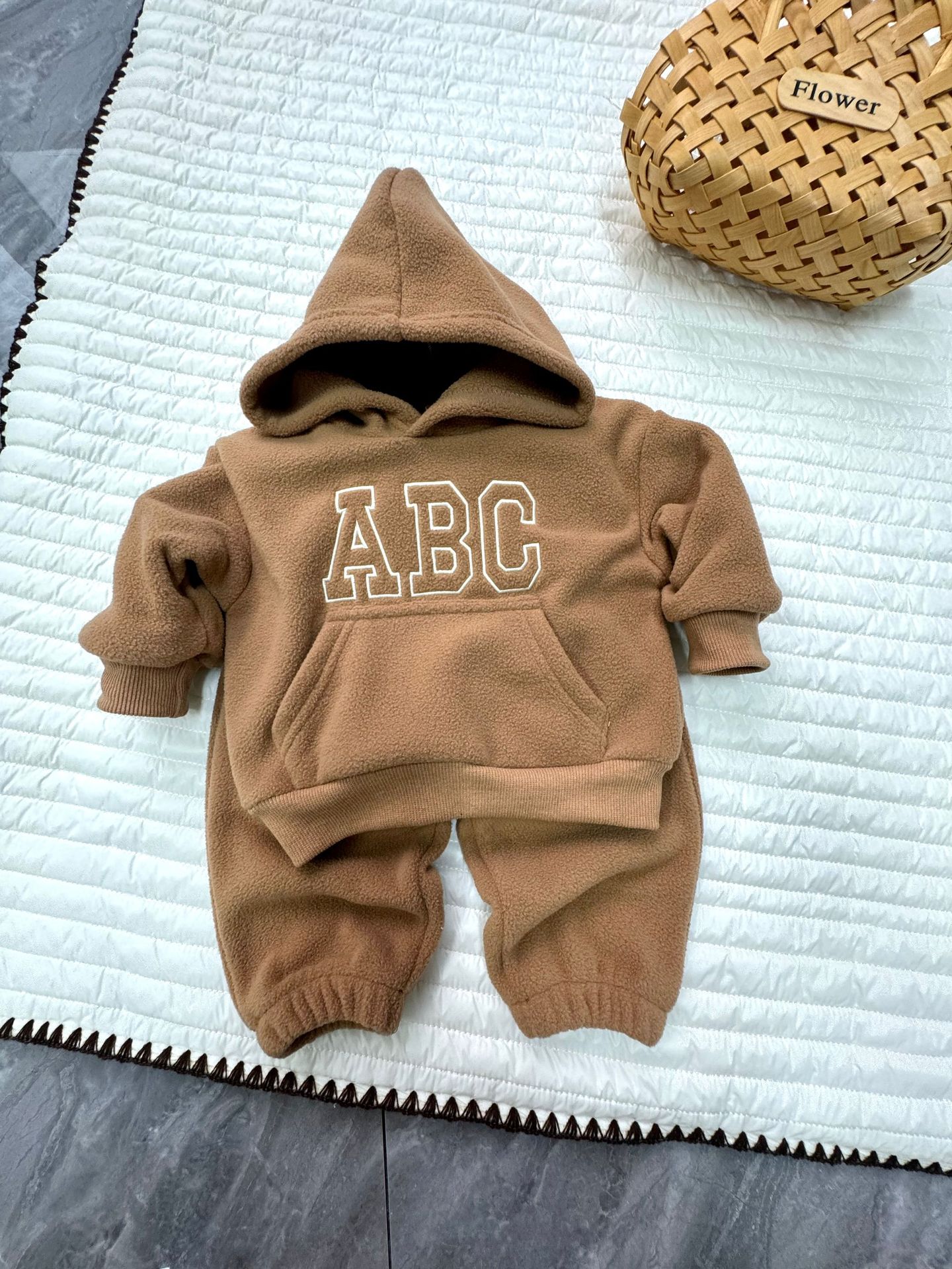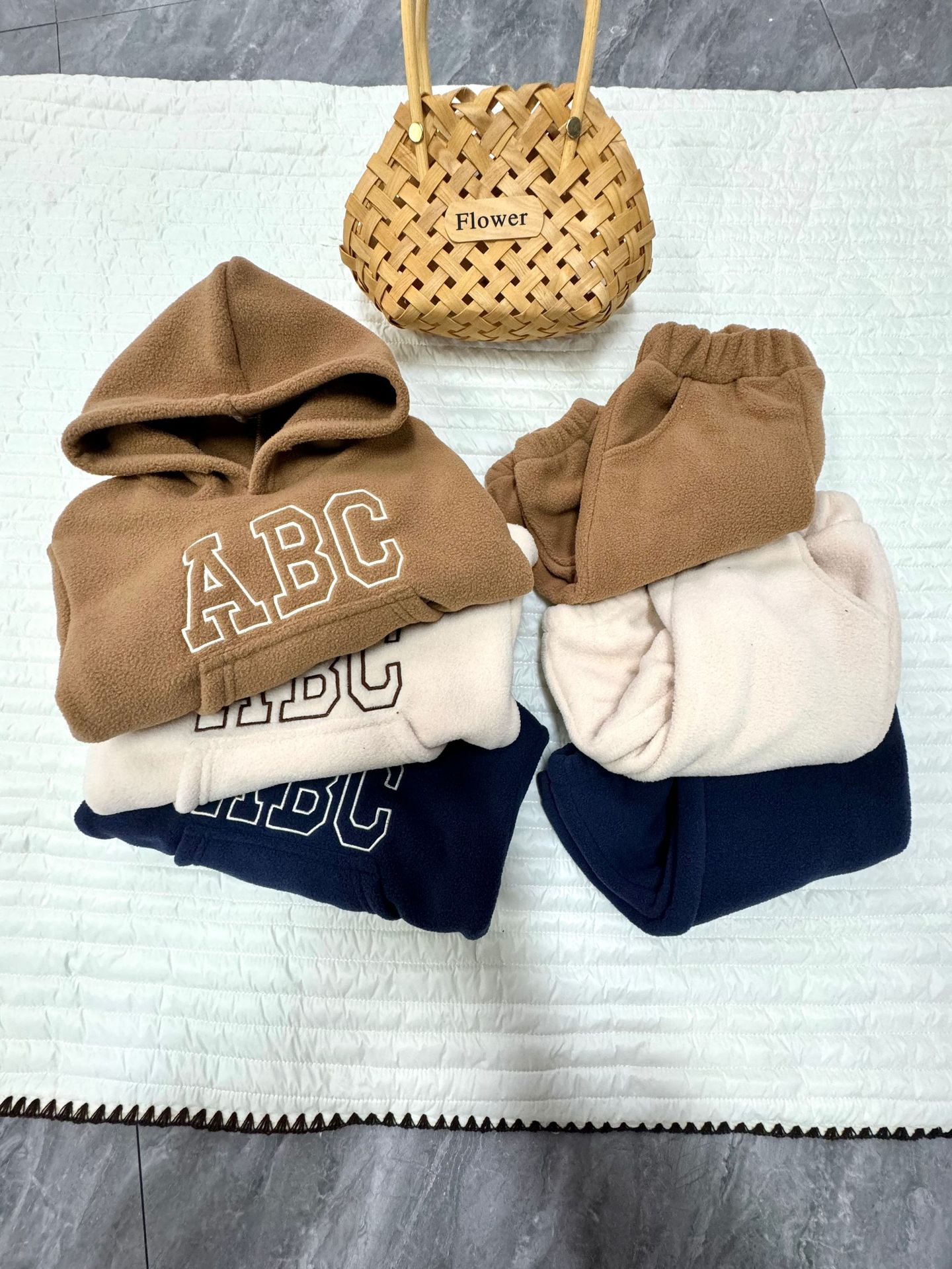 한국 스타일의 기모 두꺼운 후드 스웨터 바지 세트 어린이 소년 소녀 가을과 겨울 새로운 양고기 양털스토어 가기