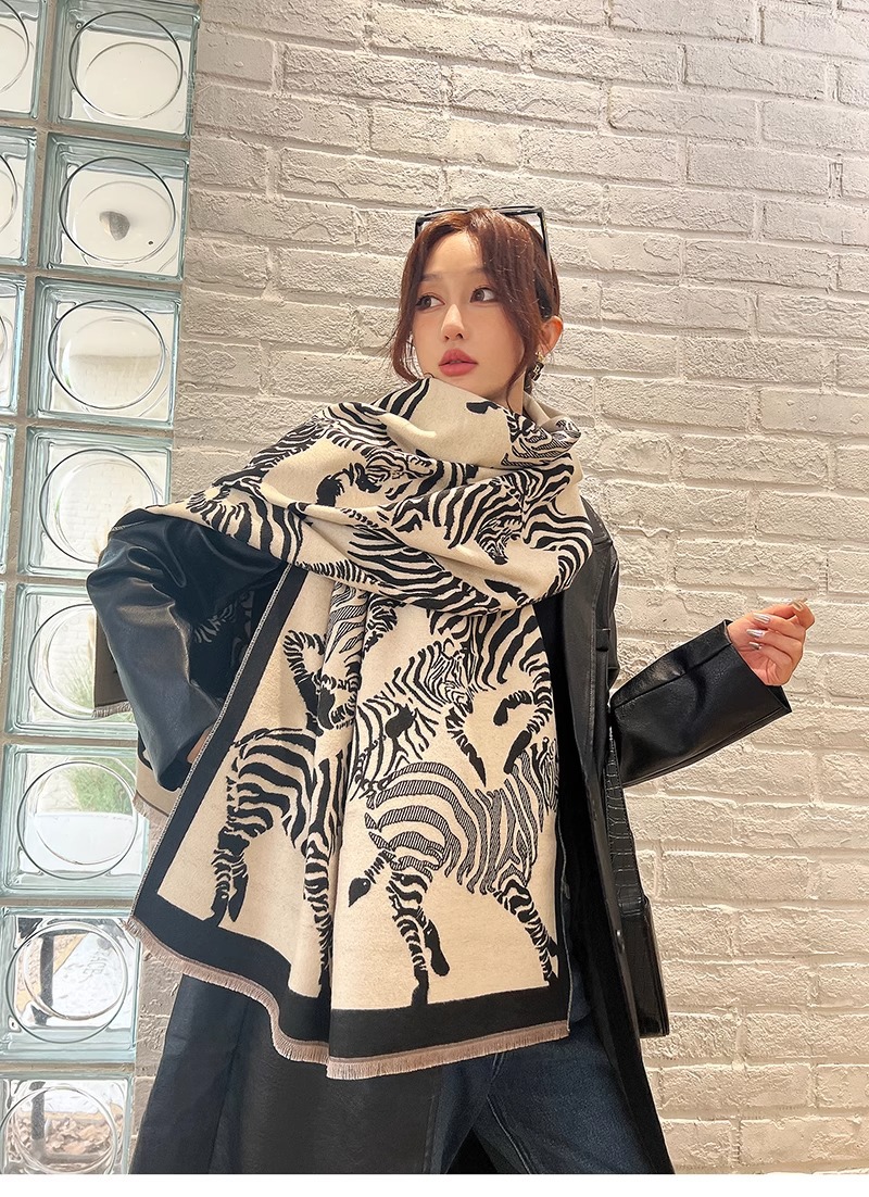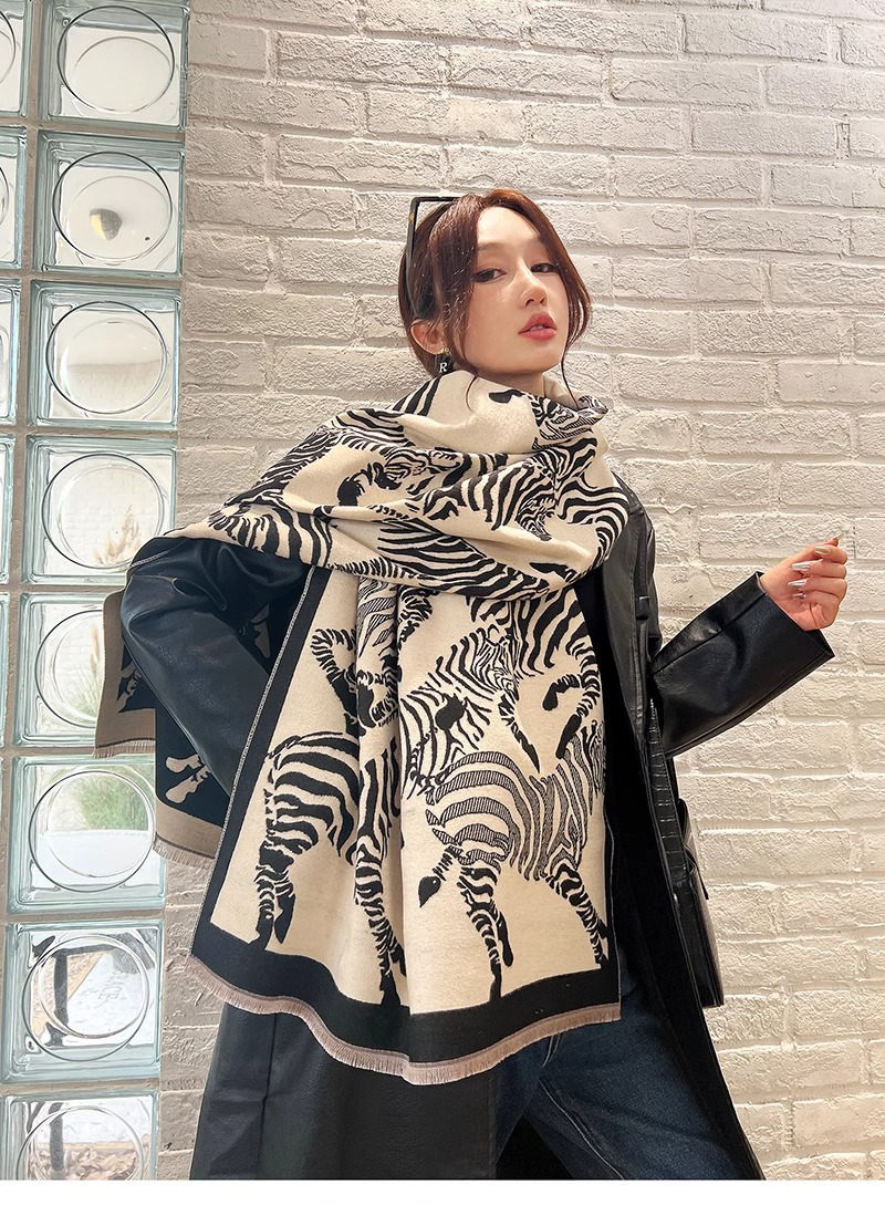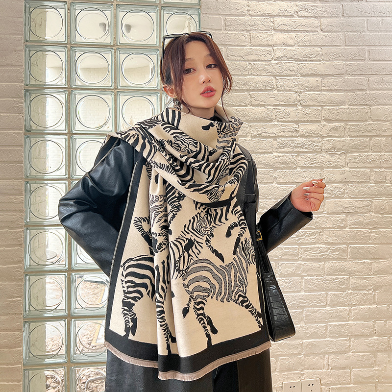 스카프 여성 가을과 겨울 한국식 올 매치 캐시미어 양면 숄 두꺼운 따뜻한 특대형 스카프 트렌디스토어 가기
