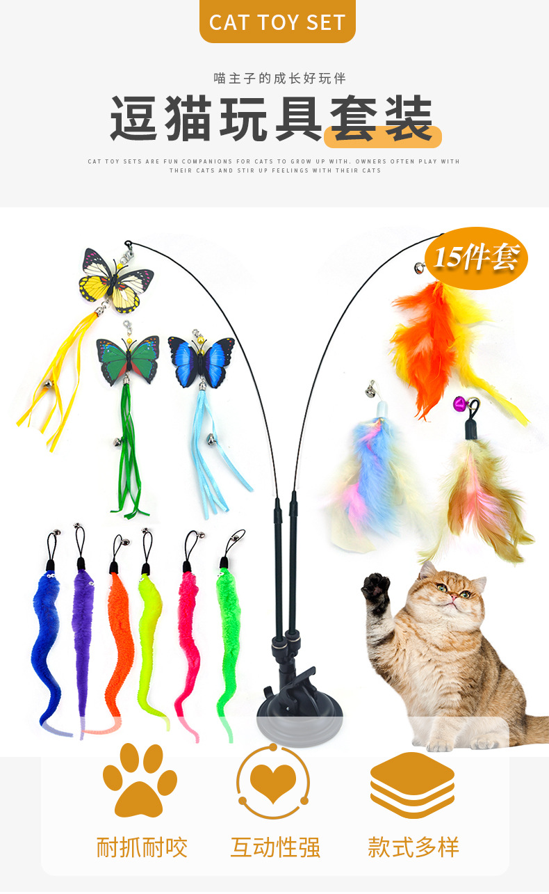 새로운 애완 동물 고양이 장난감 빨판 고양이 애타게 스틱 세트 나비 고양이 교체 헤드 더블 헤드 강한 빨판 장난감