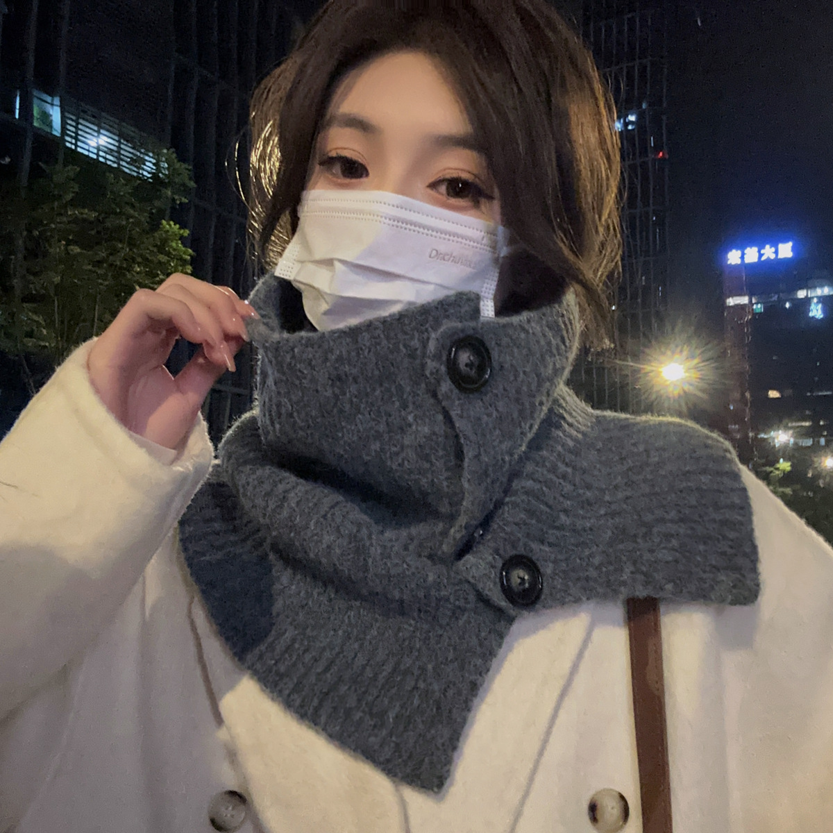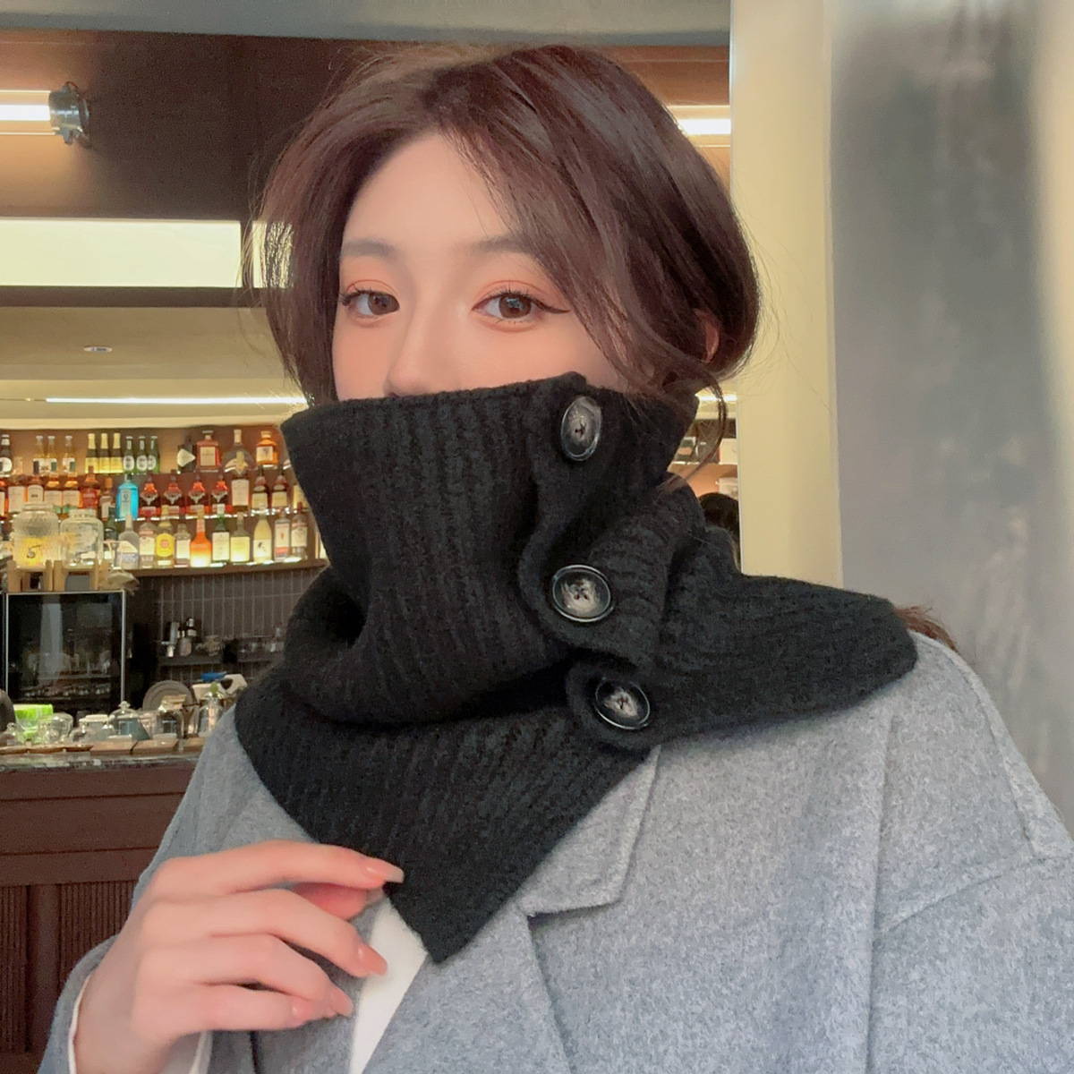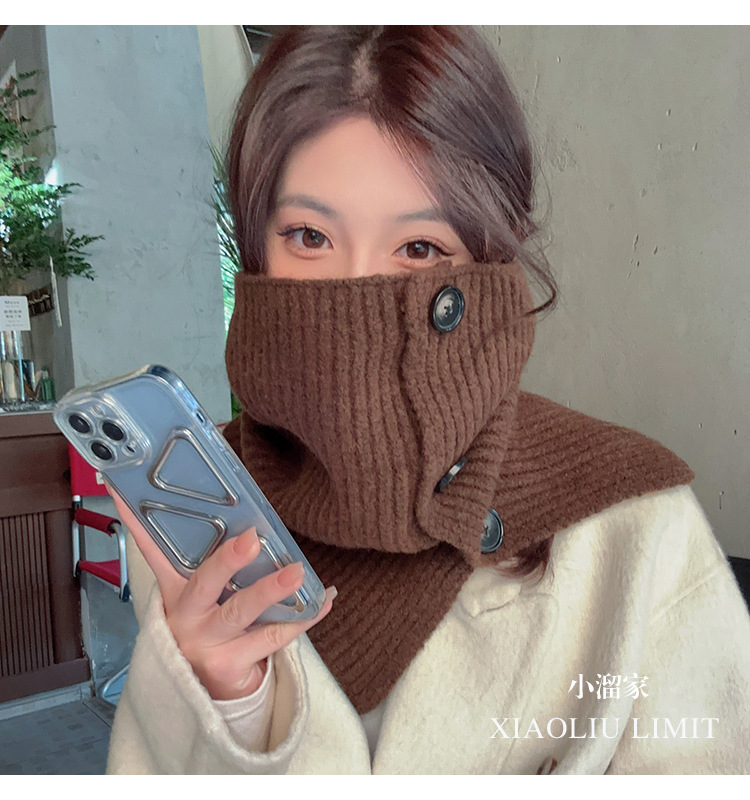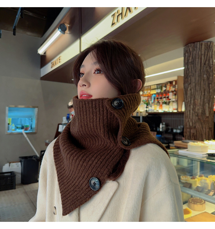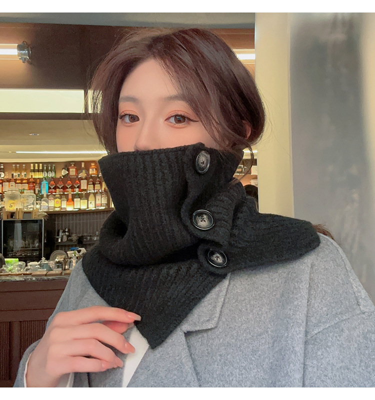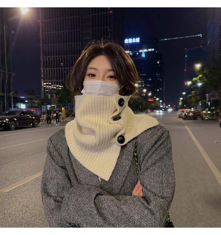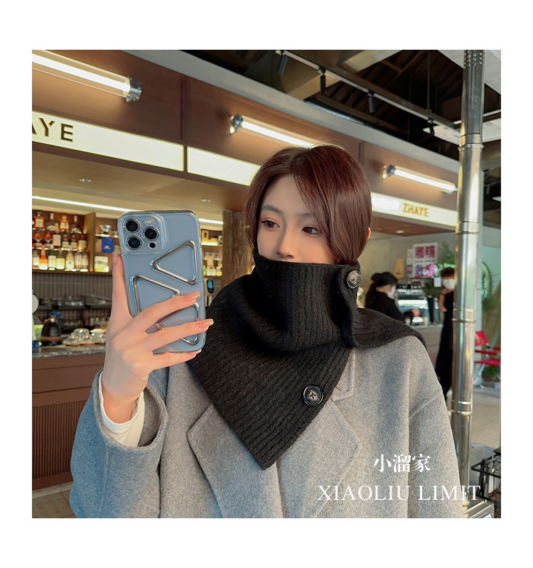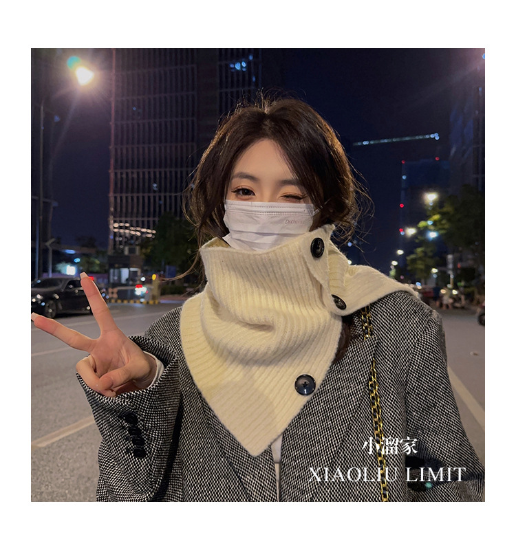 2023 새로운 스타일 스카프 캡 넥 세트 여성의 가을과 겨울 스카프 한국 단색 방한 따뜻한 목 보호 니트 숄 트렌디스토어 가기
