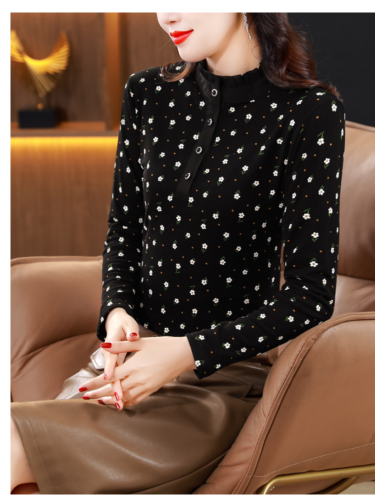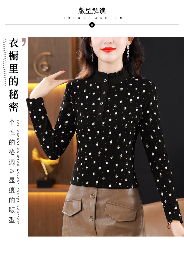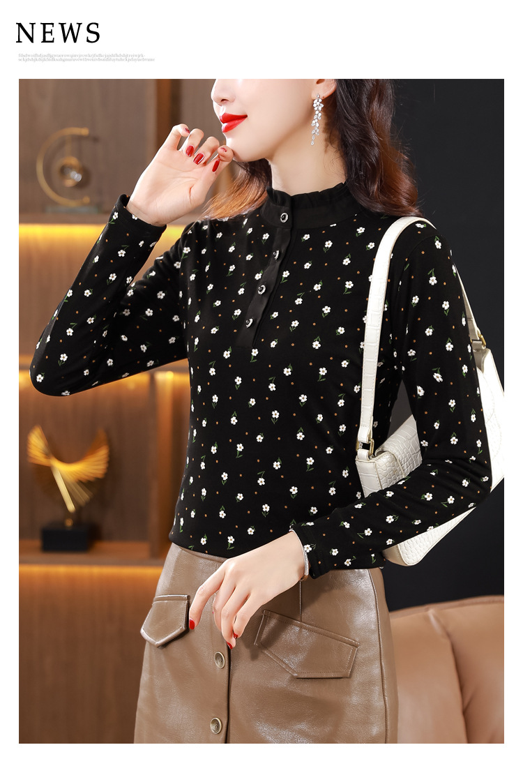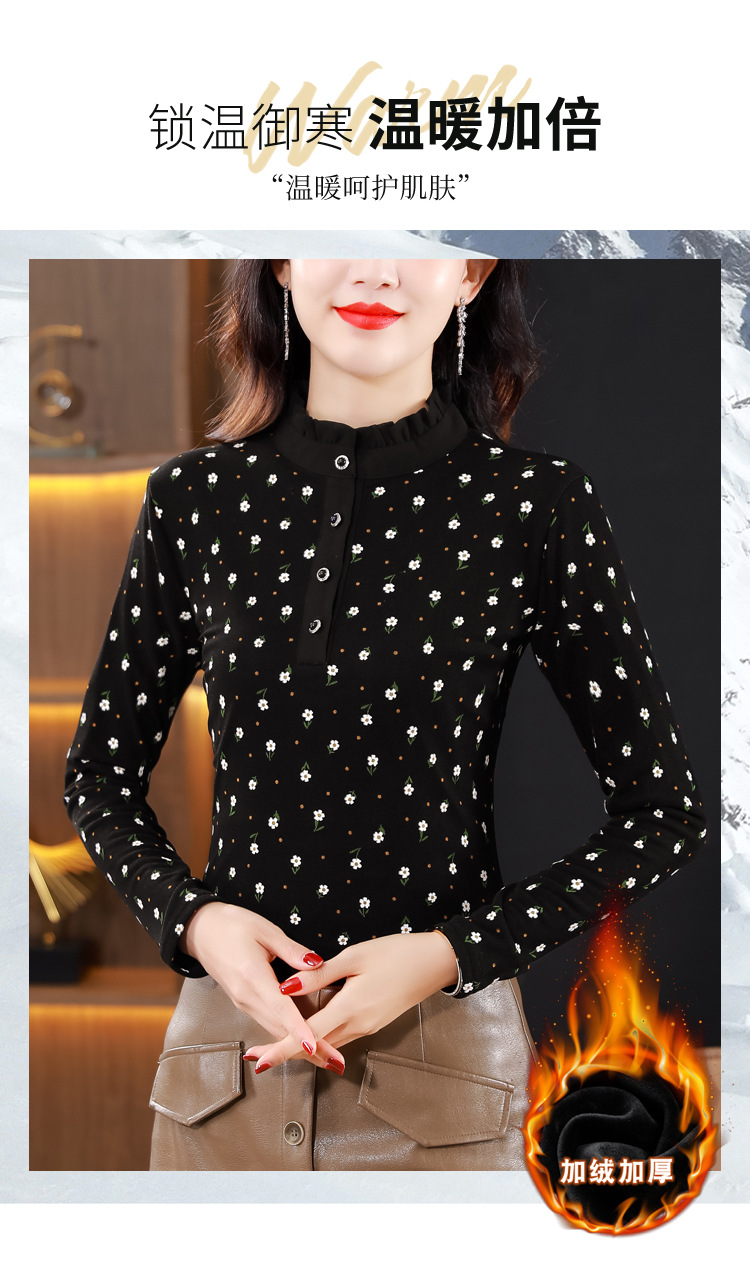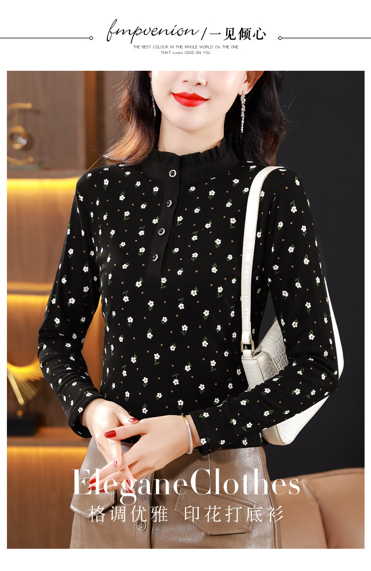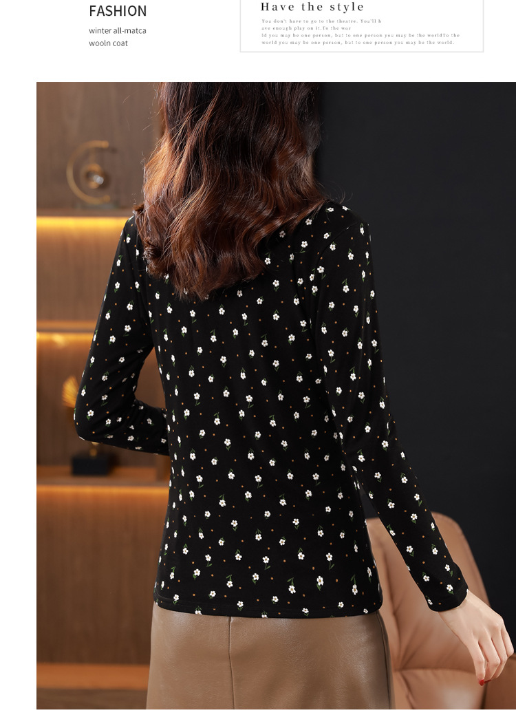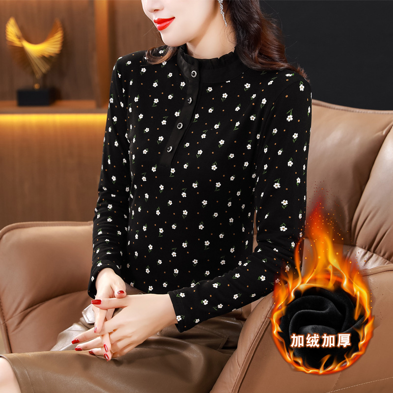 메쉬 인쇄 긴 소매 바닥 셔츠 여자의 2023 가을과 겨울 새로운 기모 두꺼운 외국 스타일 티셔츠 슬림 핏 탑스토어 가기