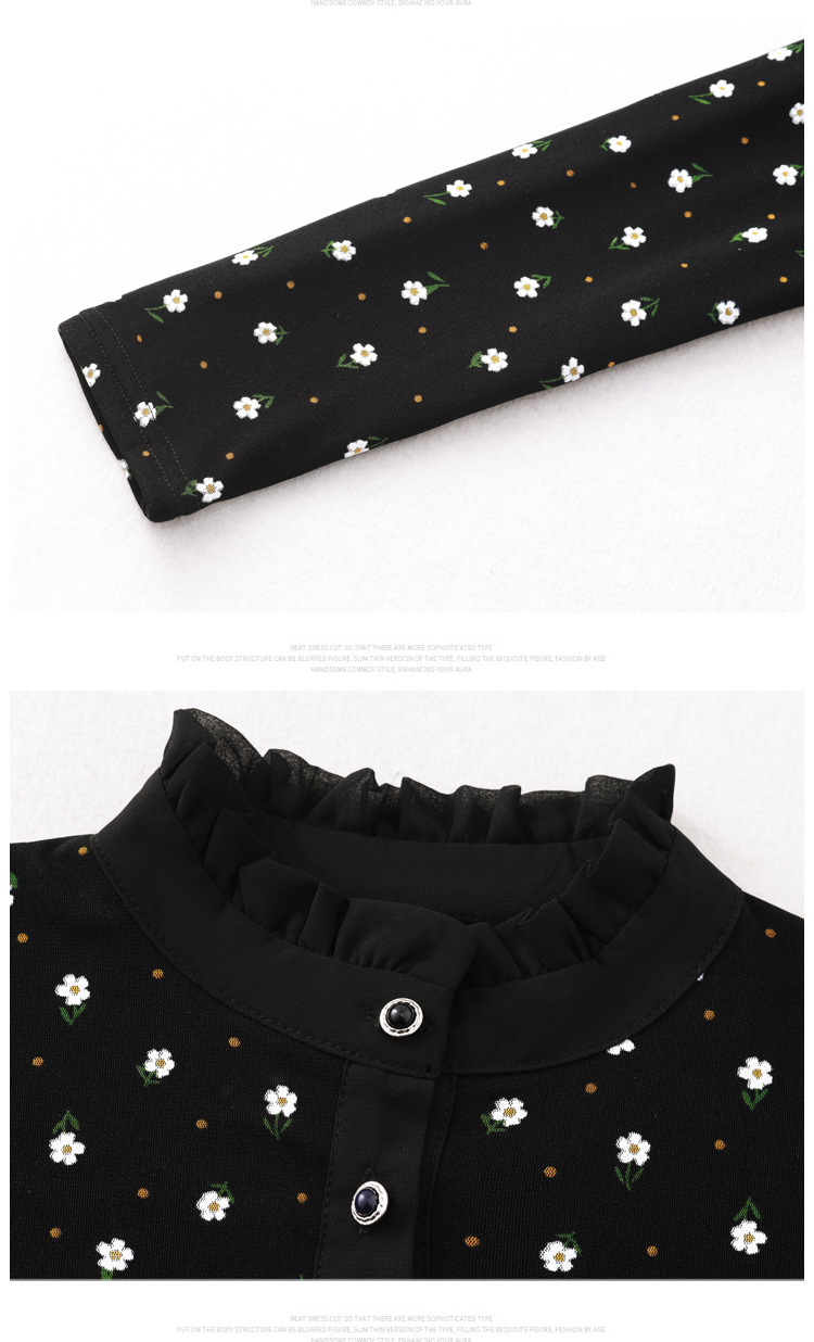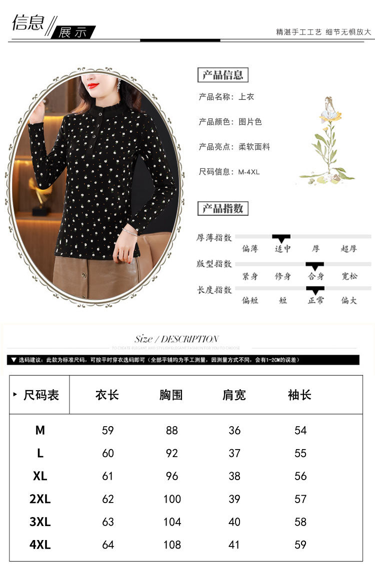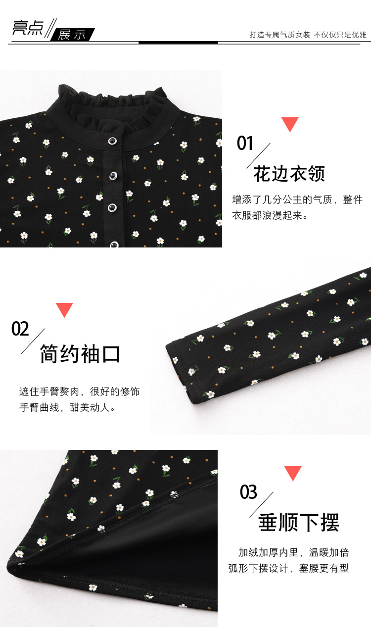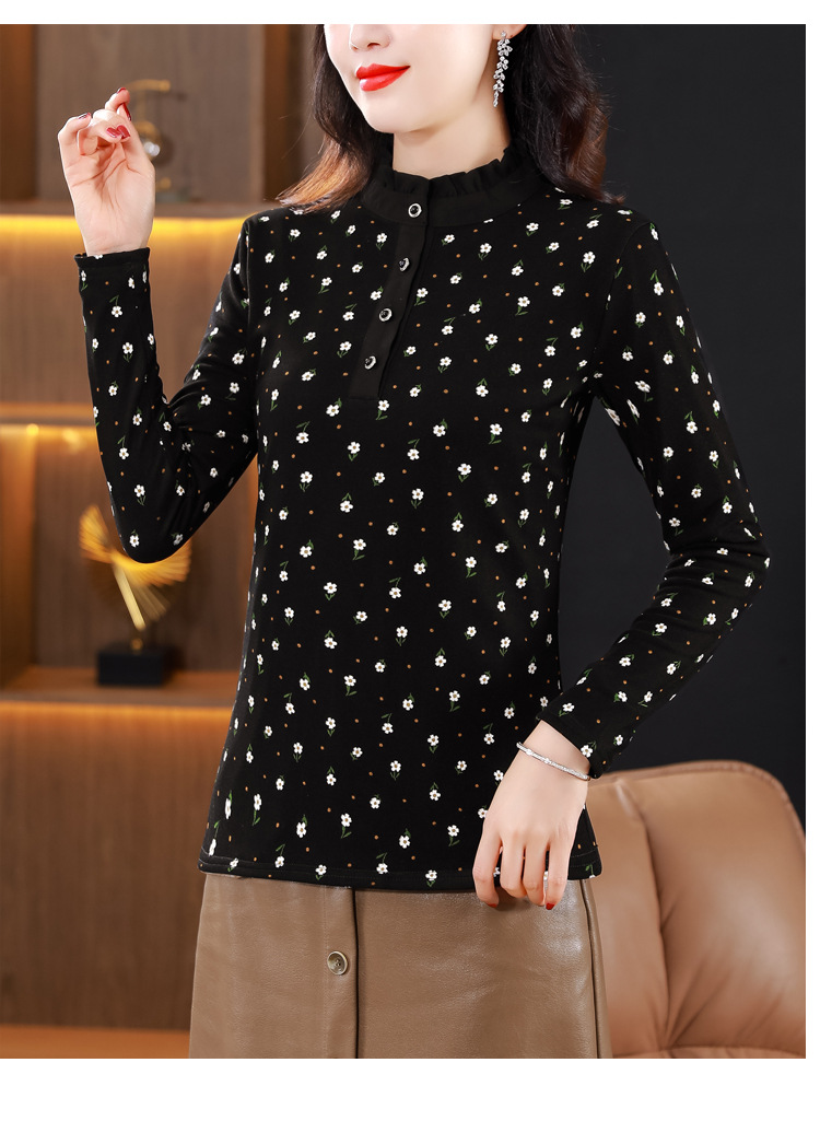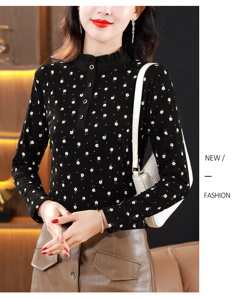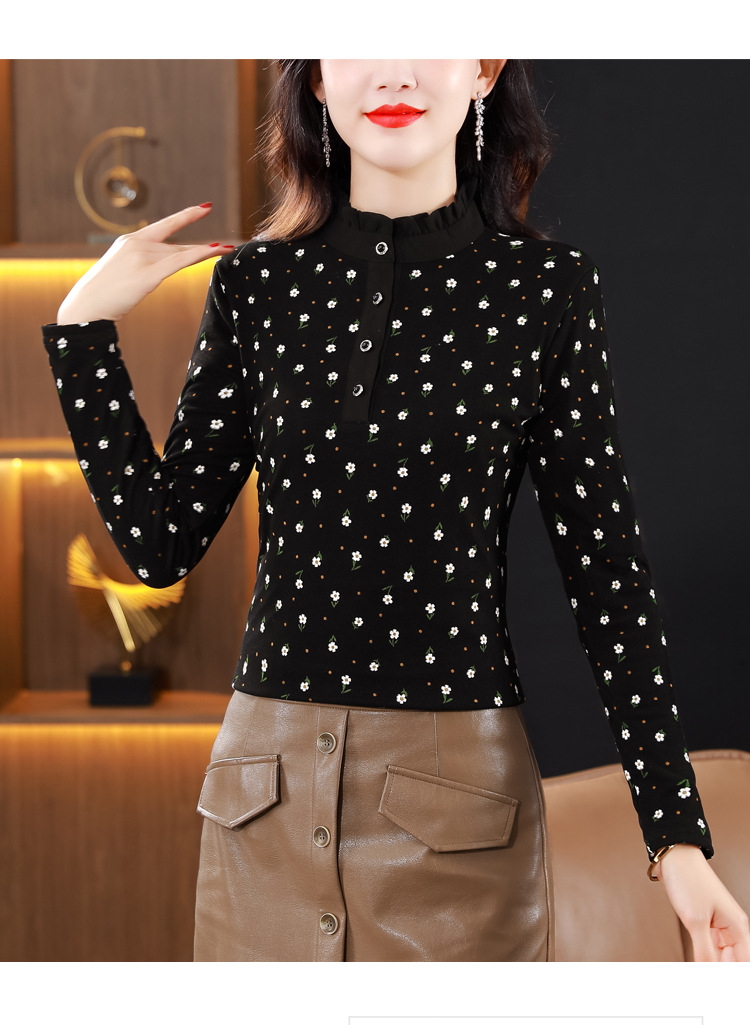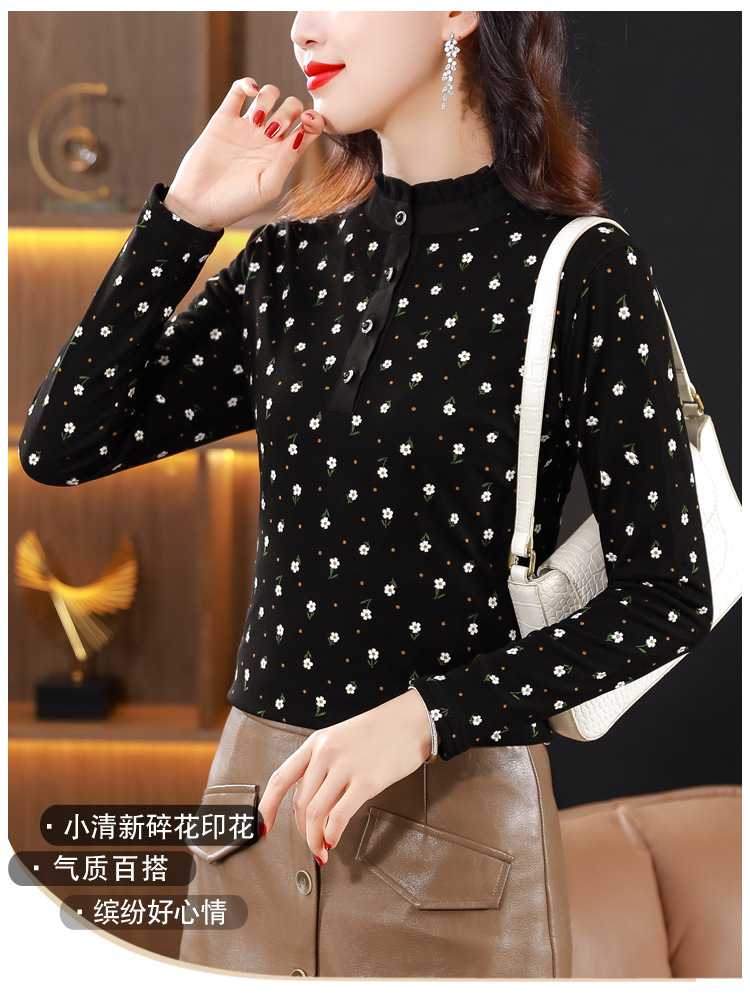 메쉬 인쇄 긴 소매 바닥 셔츠 여자의 2023 가을과 겨울 새로운 기모 두꺼운 외국 스타일 티셔츠 슬림 핏 탑스토어 가기