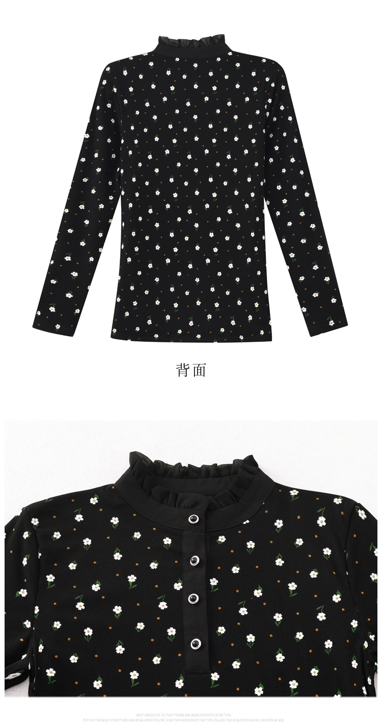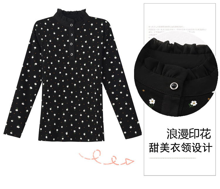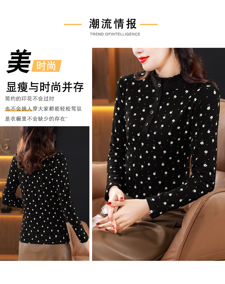 메쉬 인쇄 긴 소매 바닥 셔츠 여자의 2023 가을과 겨울 새로운 기모 두꺼운 외국 스타일 티셔츠 슬림 핏 탑