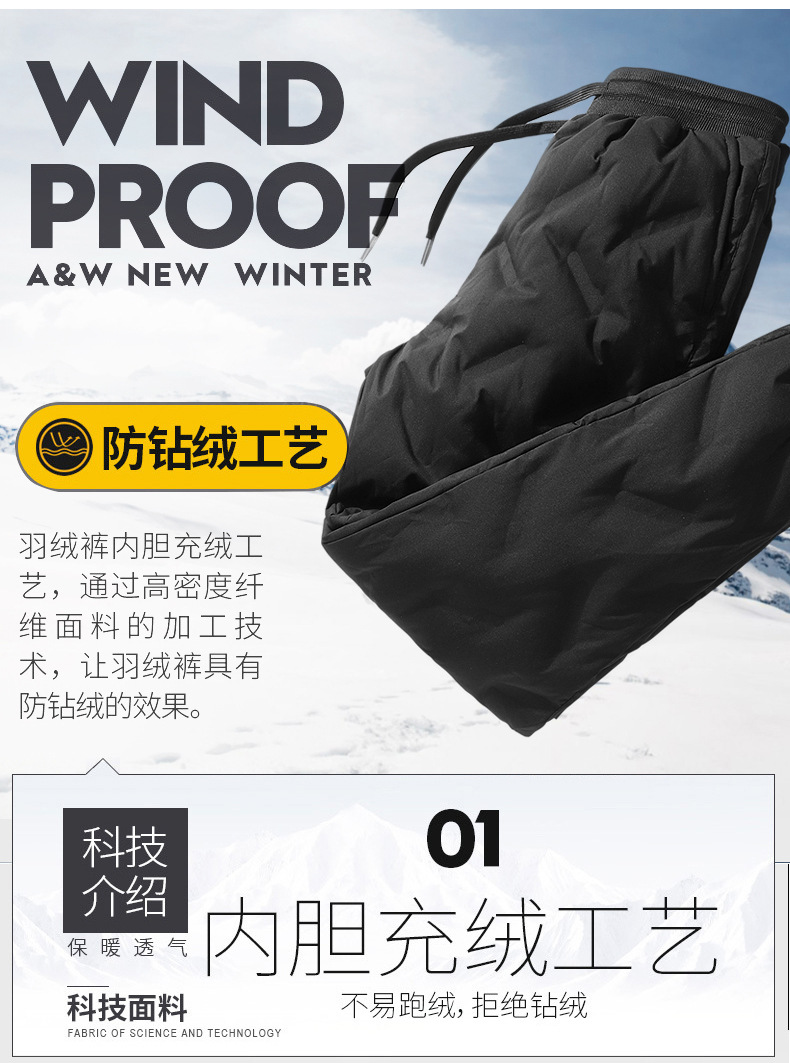다운 팬츠 남성용 겉옷 스포츠면 바지 가을과 겨울 2023 새로운 90 화이트 오리 다운 야외 따뜻한 바지 남성