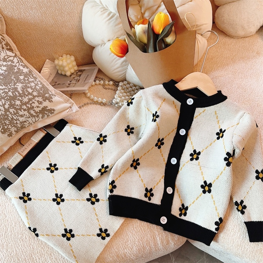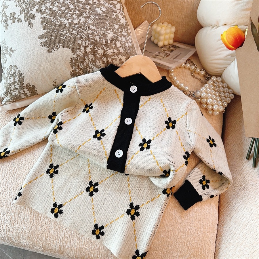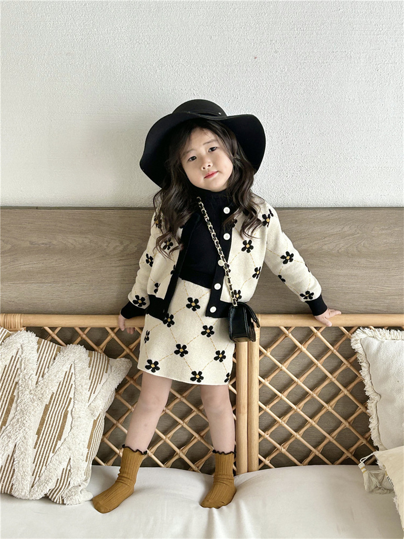 여자 유행 작은 향기 니트 양복 202 봄, 가을 새로운 한국 스타일 어린이 스웨터 재킷 스커트스토어 가기