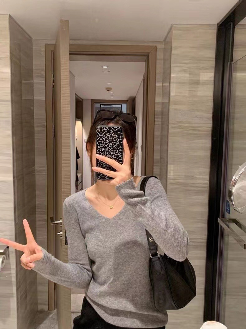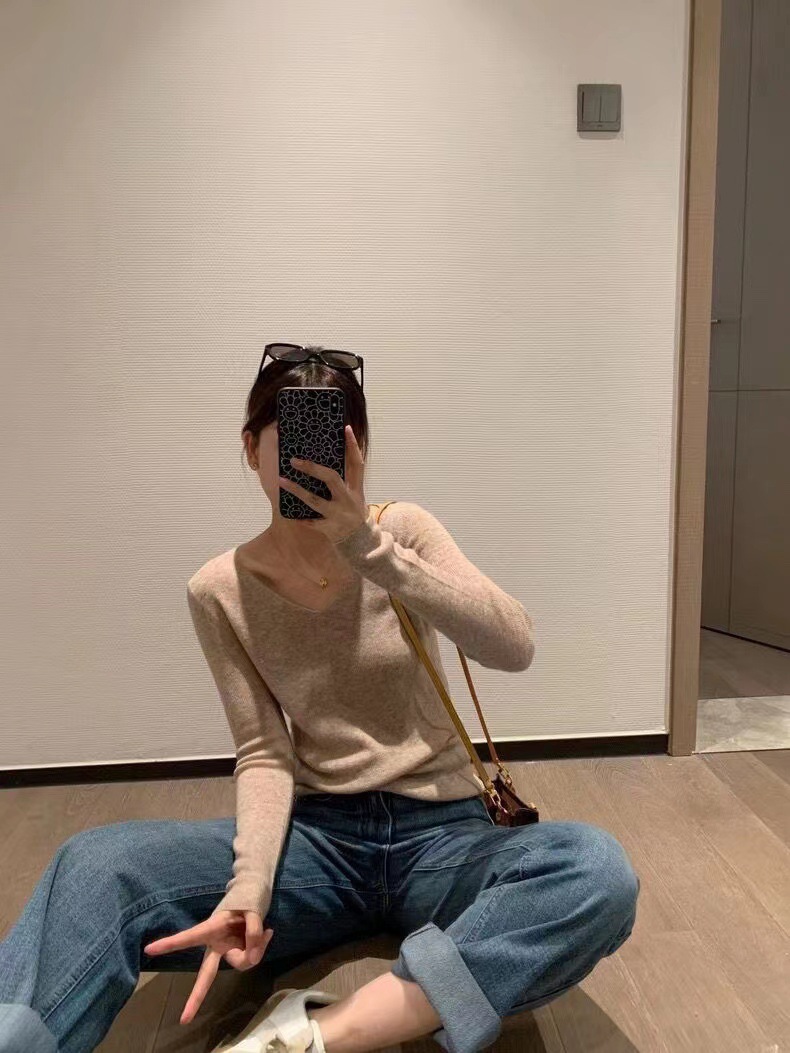 CHAO Pro-skin ~ 독일 양쯔 원사 최악의 극세 울 니트 스웨터 여성용 V-넥 긴 소매 캐주얼 모든 매치 울 스웨터스토어 가기