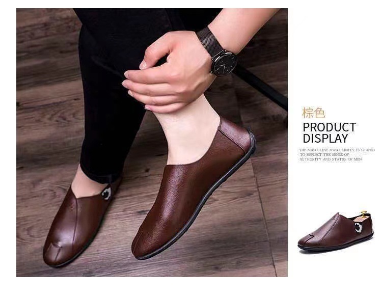 새로운 패션 영국 완두콩 신발 남성용 가죽 신발 한국 스타일 캐주얼 캔버스 남성 신발스토어 가기
