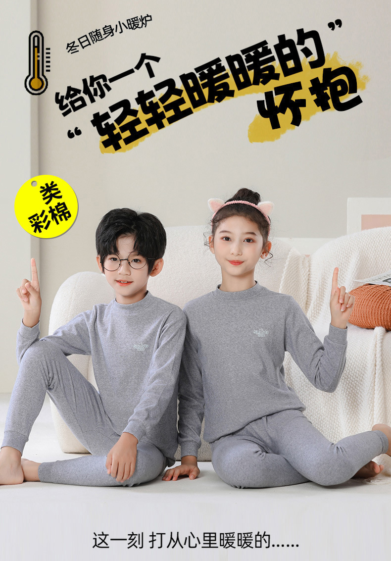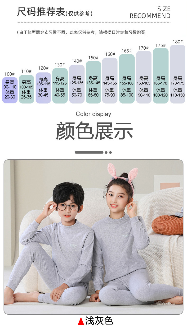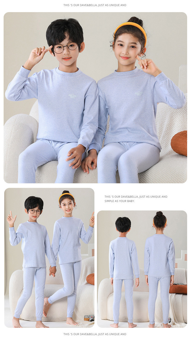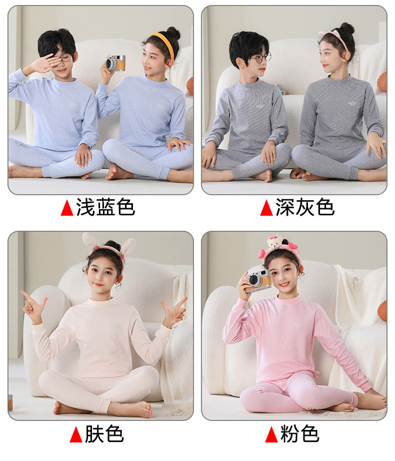 어린이 컬러 면 가을 옷과 바지 세트 순면 중대형 어린이 온화한 여성과 남성의 가을과 겨울 중간 칼라 속옷 잠옷 가정 옷스토어 가기