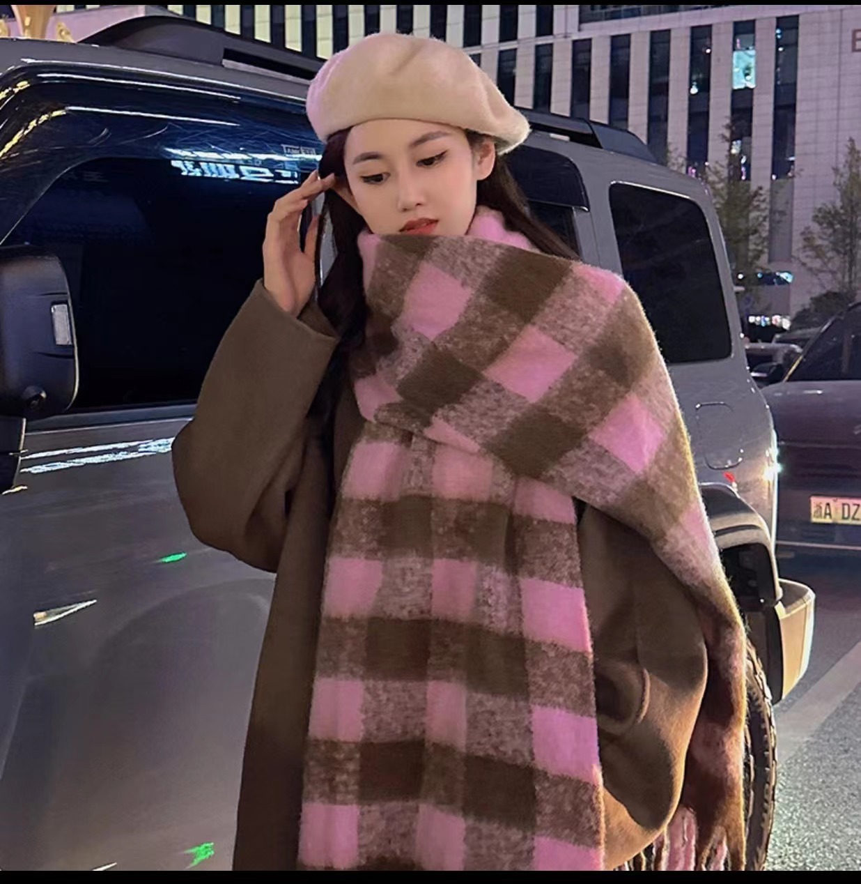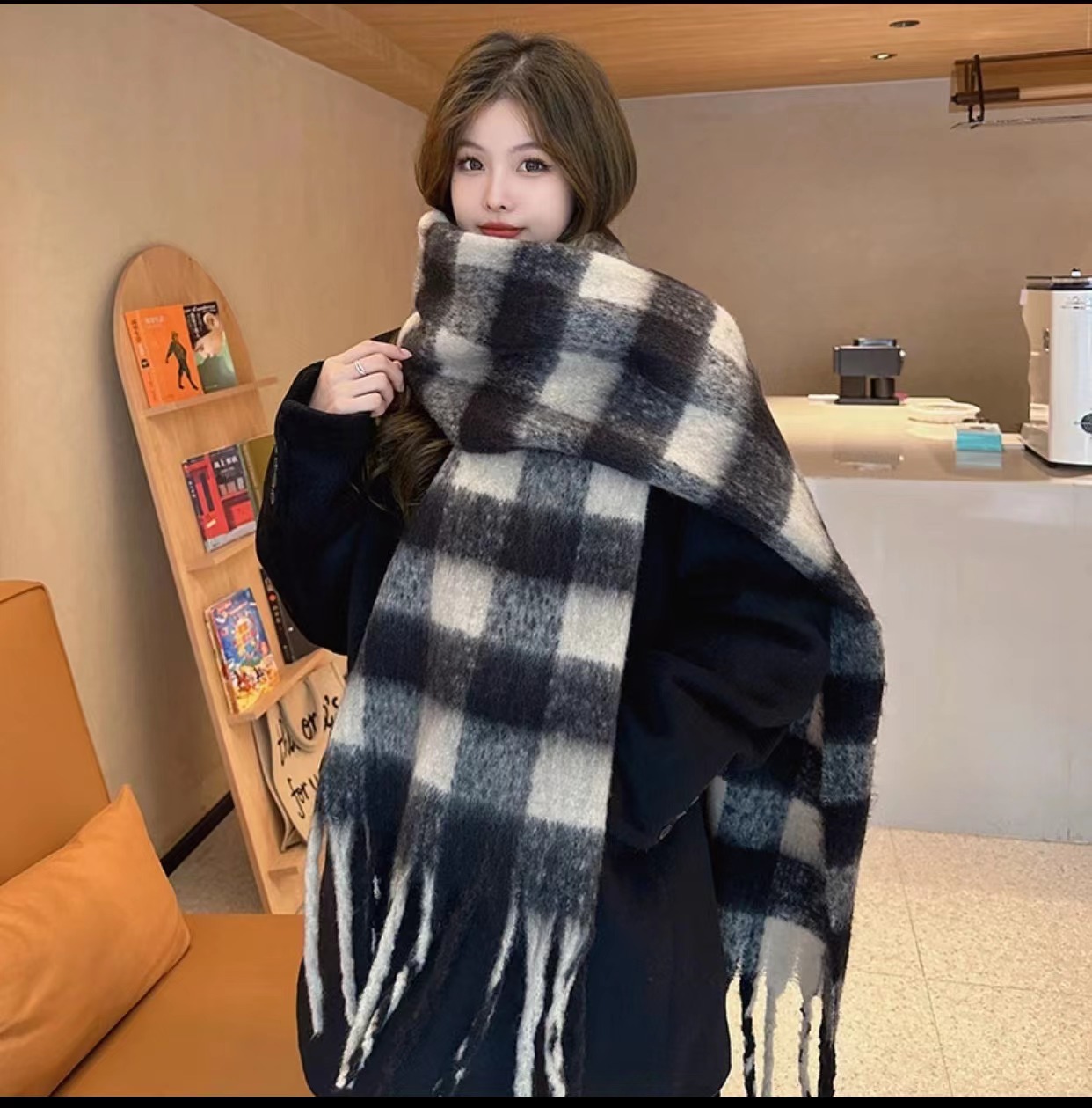 격자 무늬 스카프 여성의 가을과 겨울 하이 엔드 센스 그라디언트 모헤어 따뜻한 한국 새로운 패션 캐시미어 목도리스토어 가기