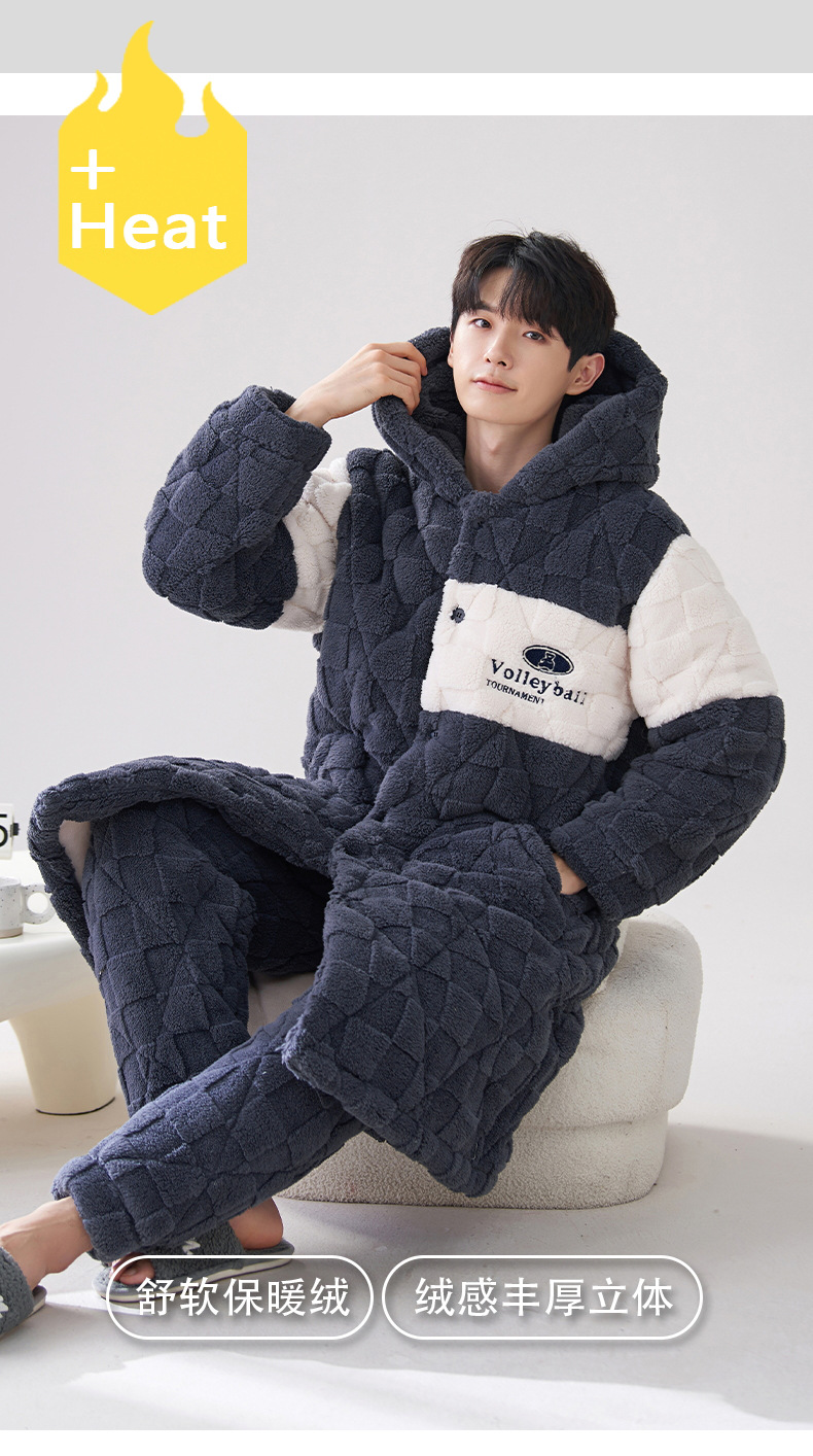 3 층 퀼트 산호 양털 커플 잠옷 여성용 겨울 중간 길이 가정복 잠옷 남성용 두꺼운 따뜻한 면 패딩 재킷스토어 가기