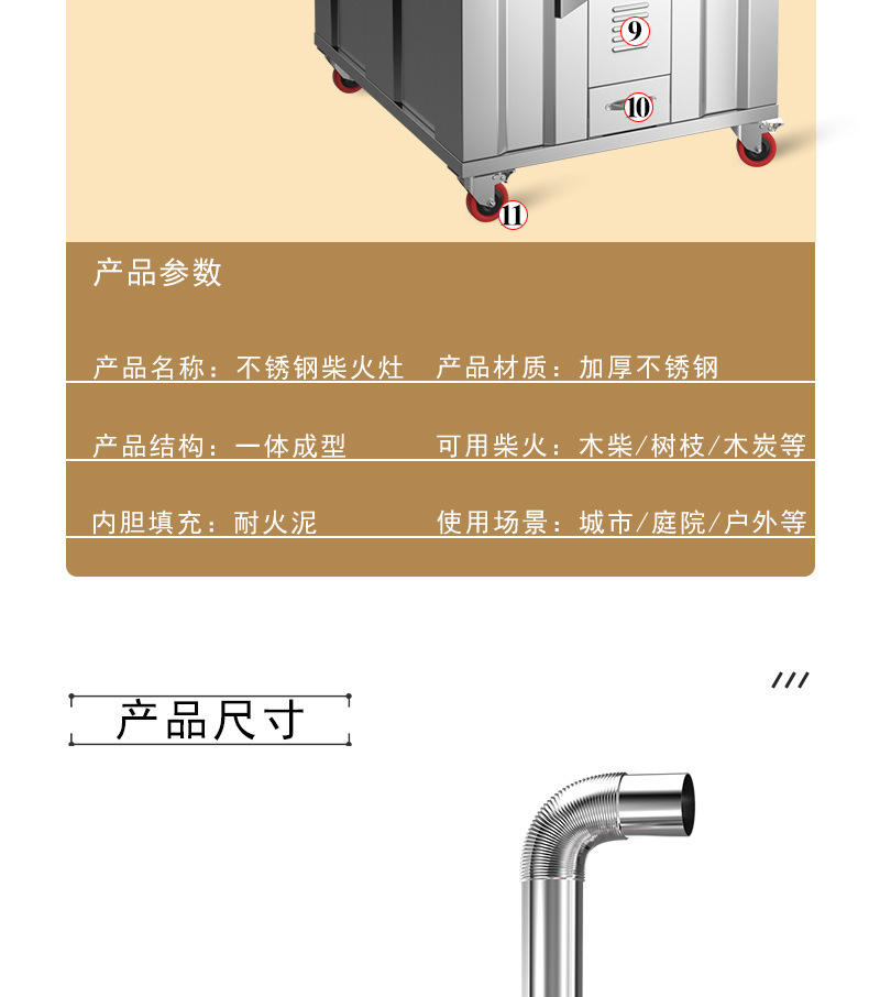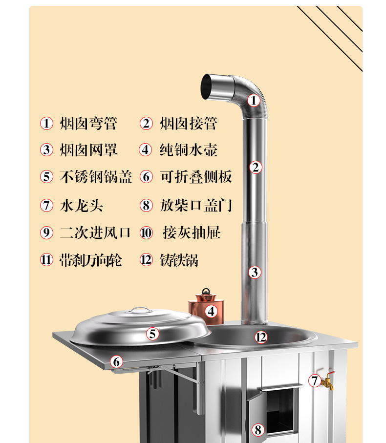 나무 난로 농촌 나무 난로 가정용 나무 굽기 난로 대형 냄비 테이블 야외 휴대용 모바일 스토브 테이블 피크닉